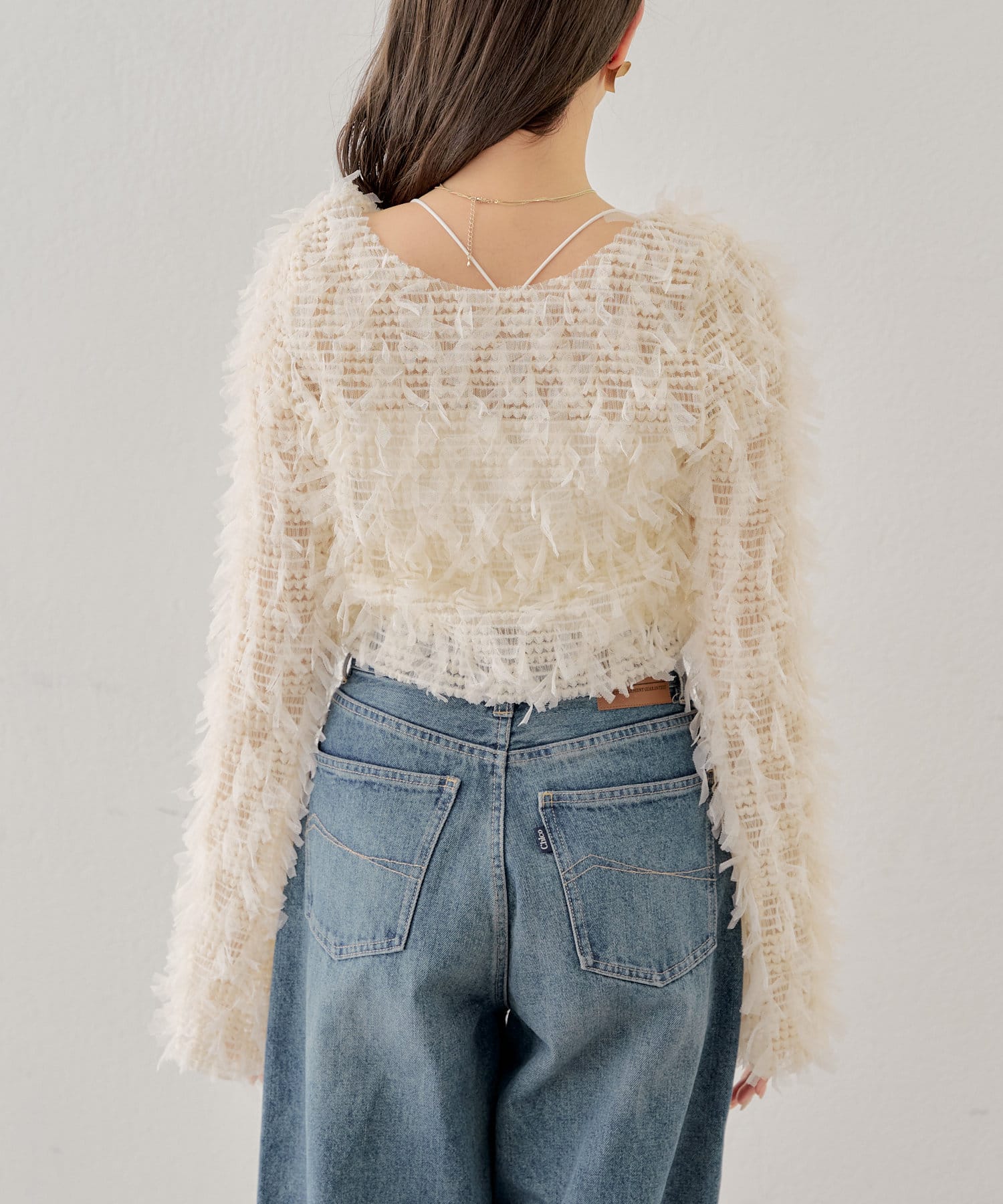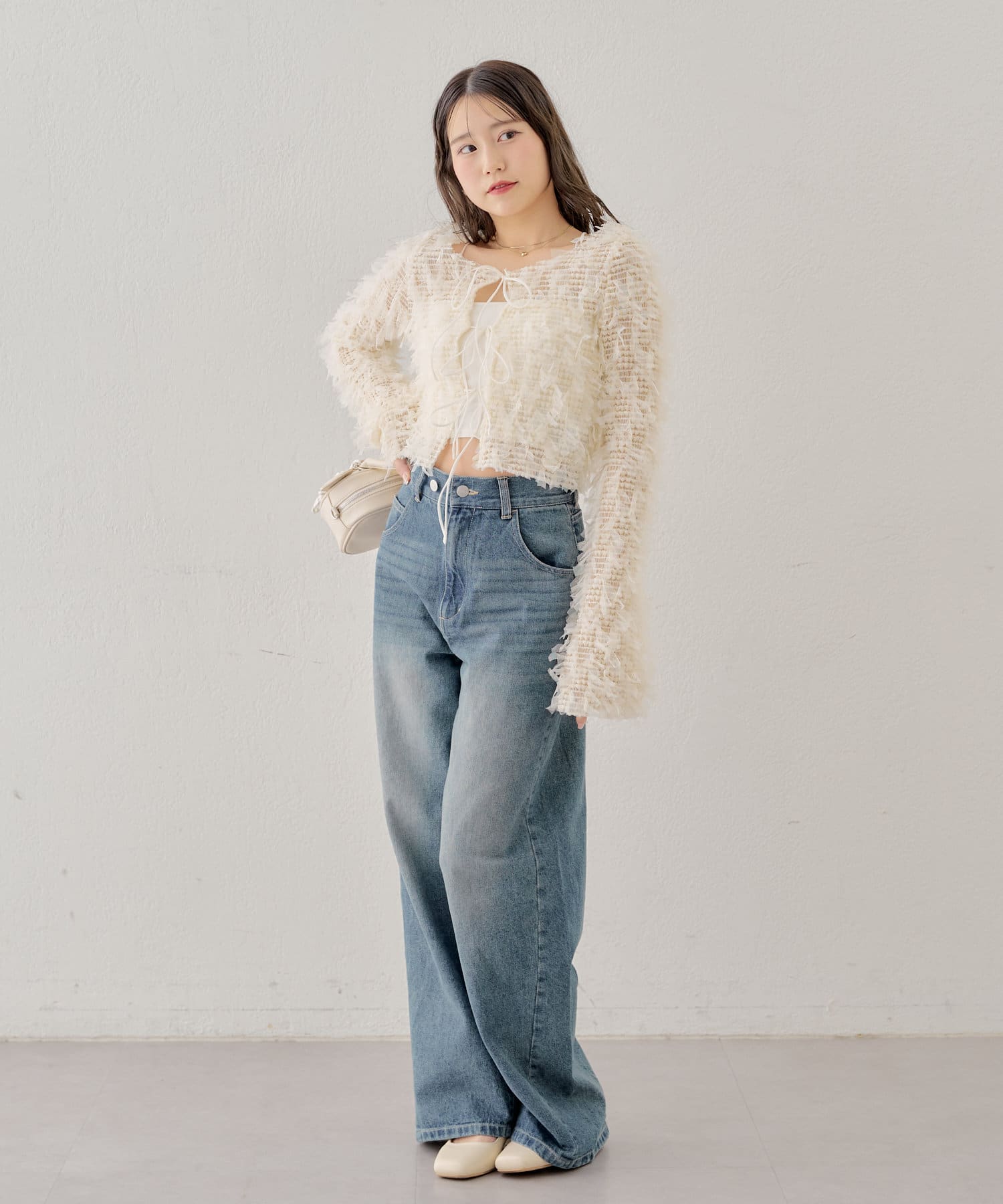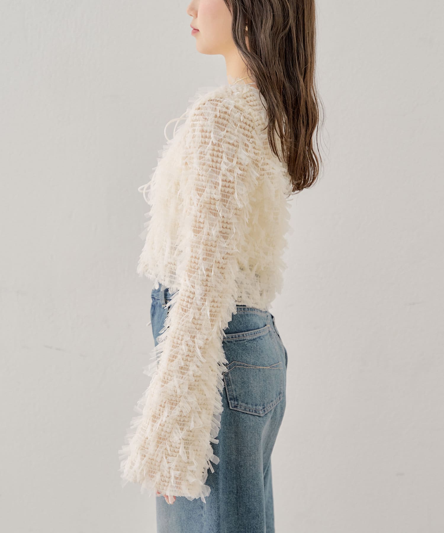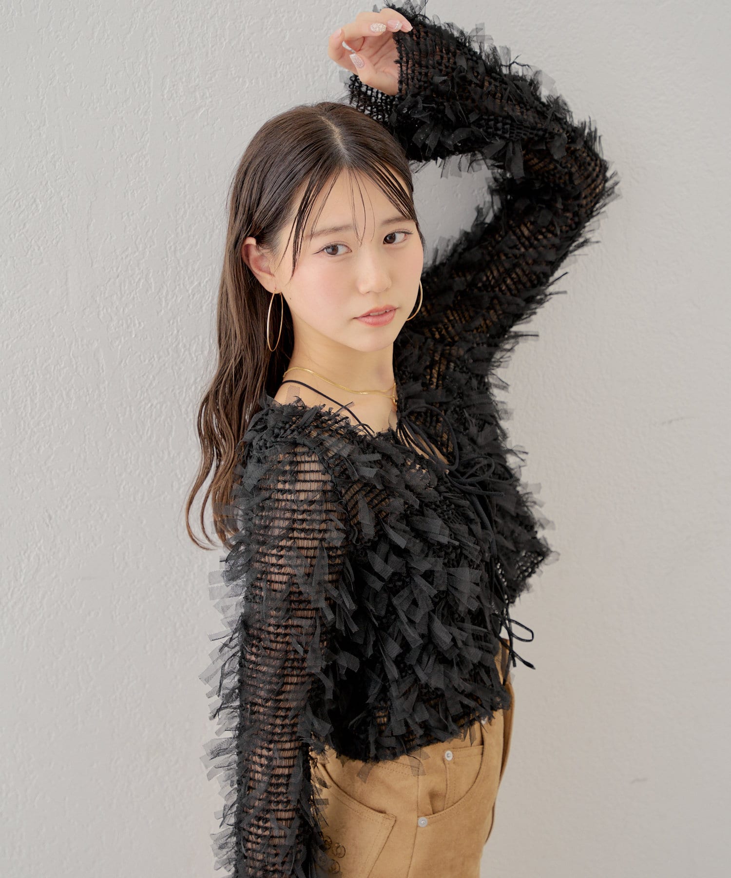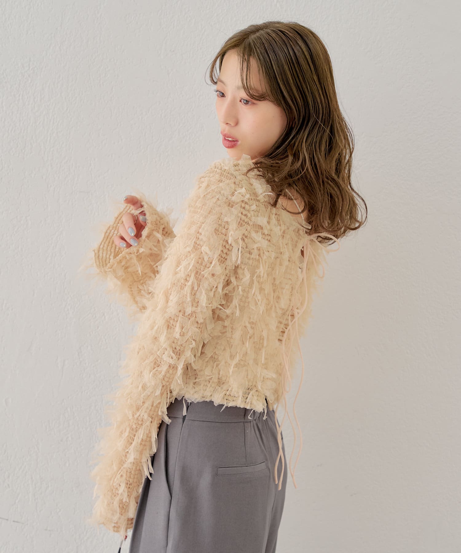 【Chico】リボンヤーンフリンジカーディガンブラウス