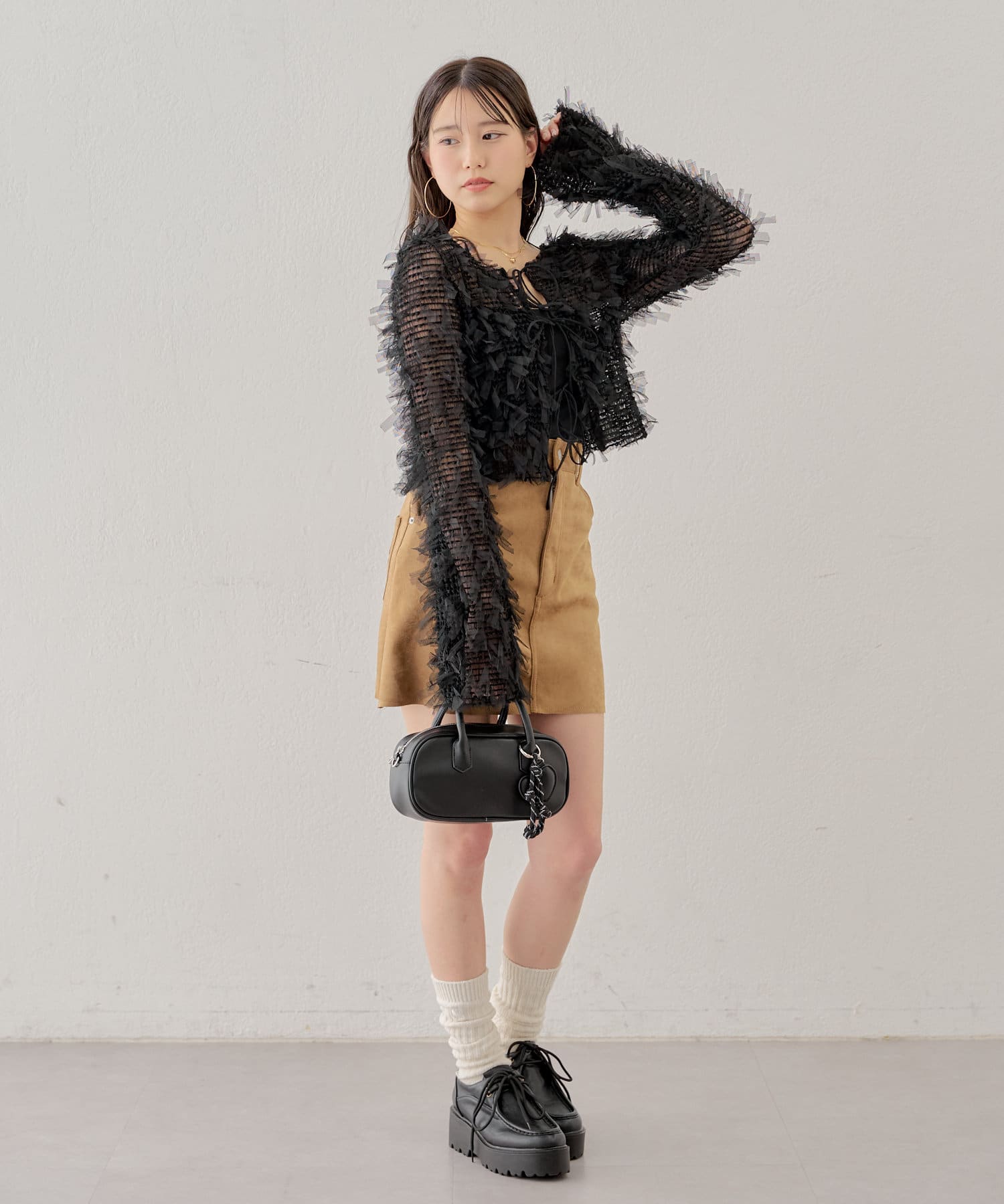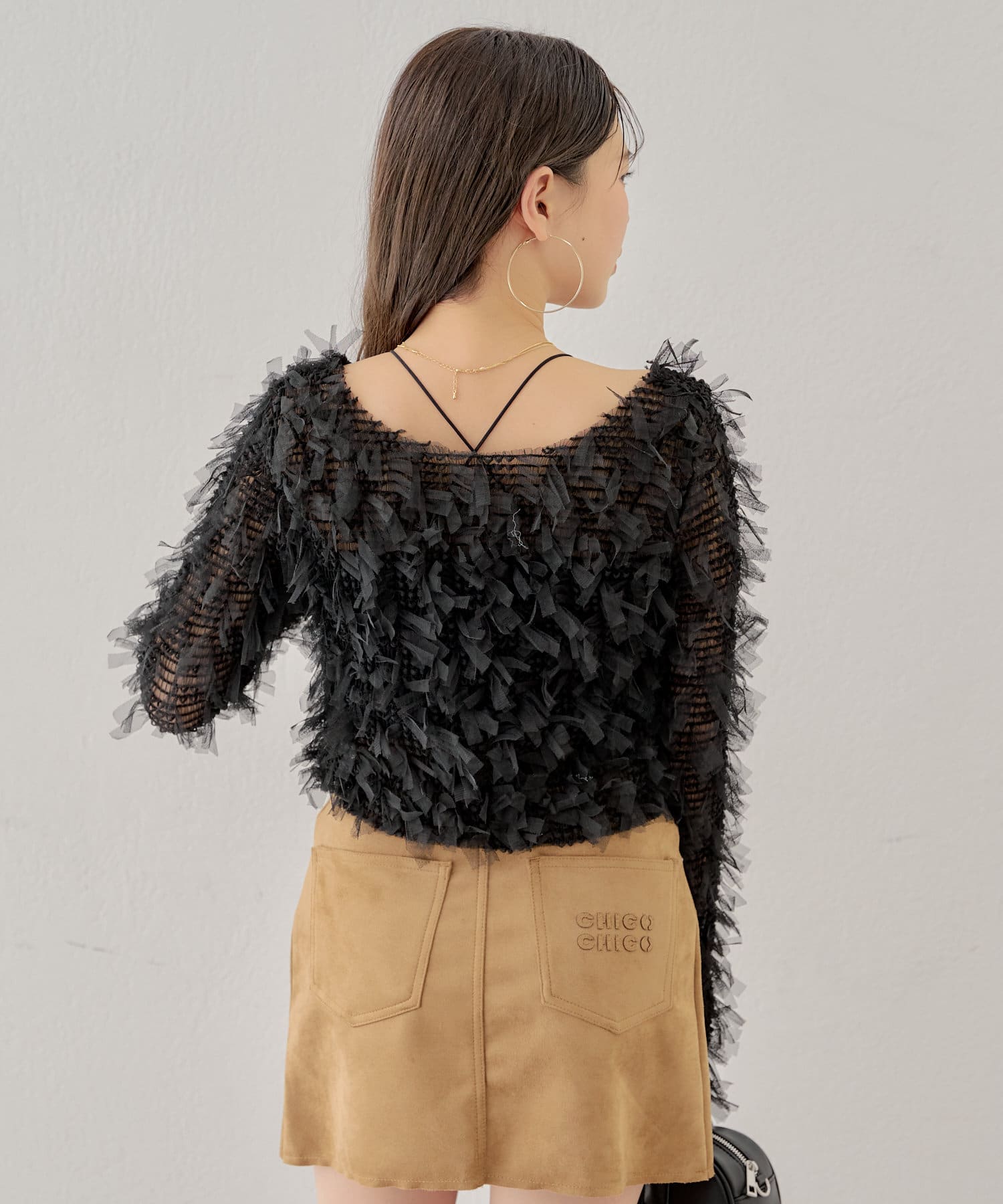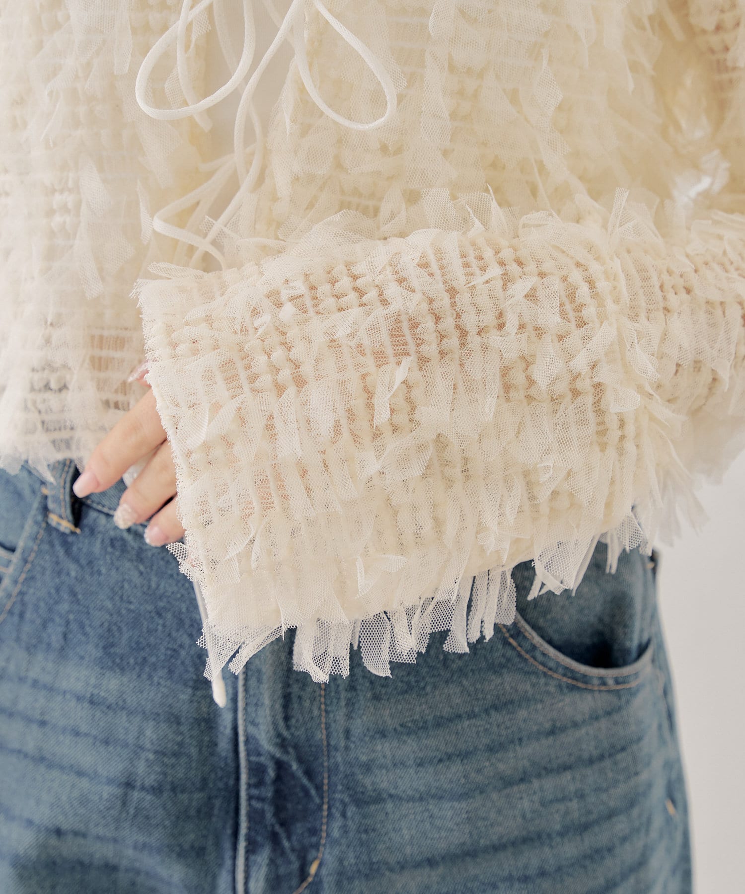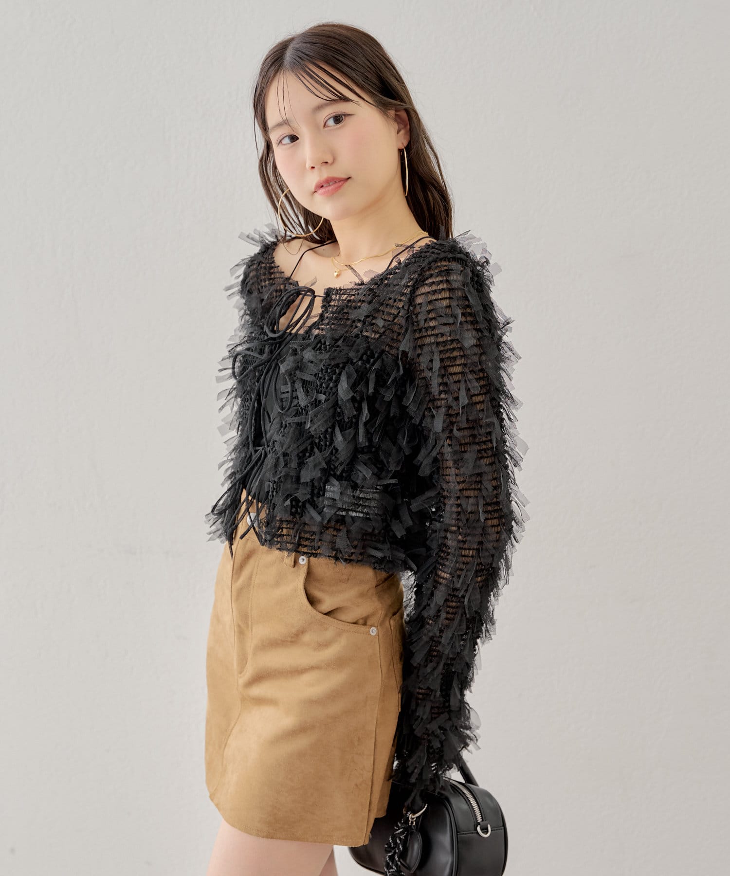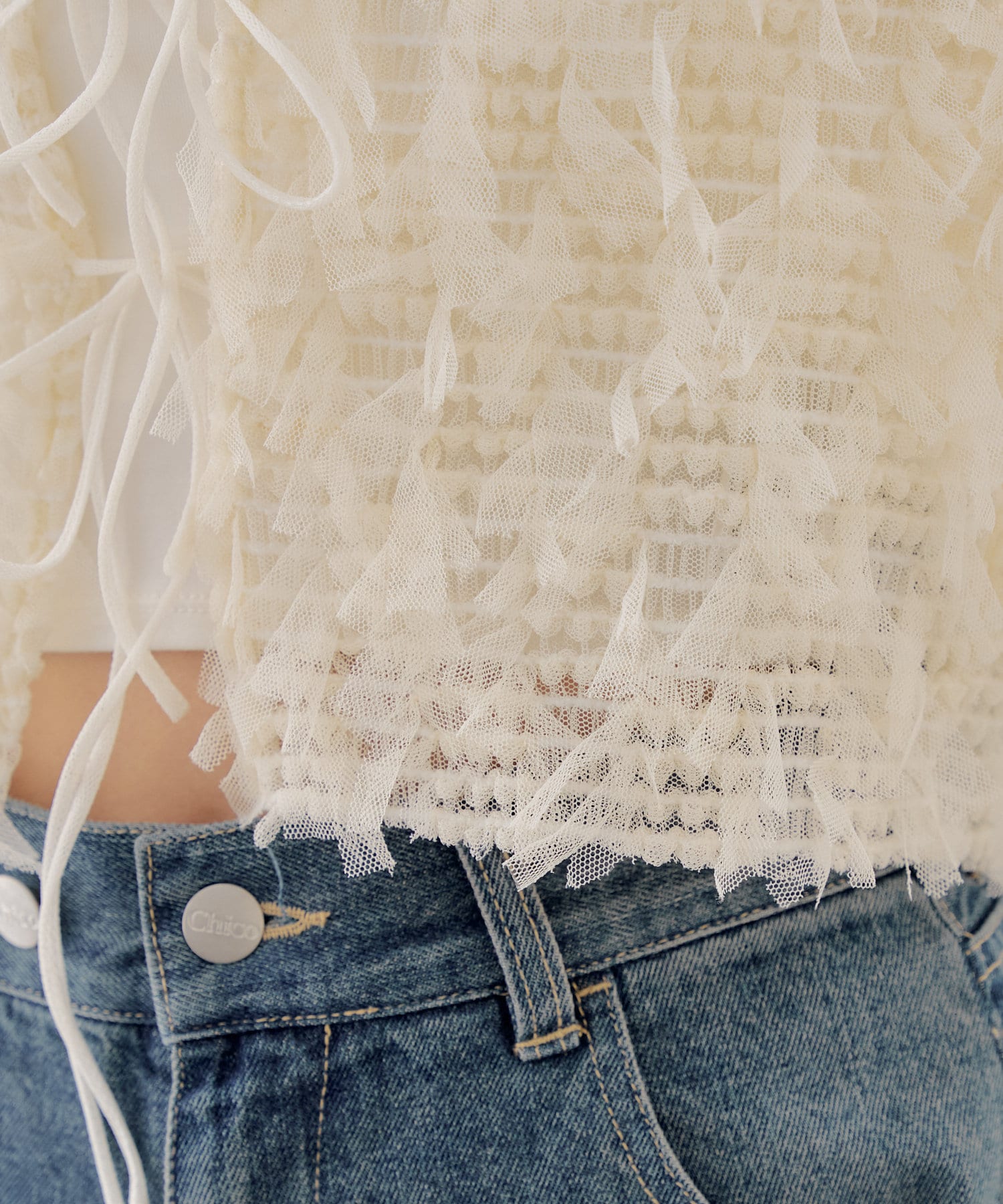 【Chico】リボンヤーンフリンジカーディガンブラウス