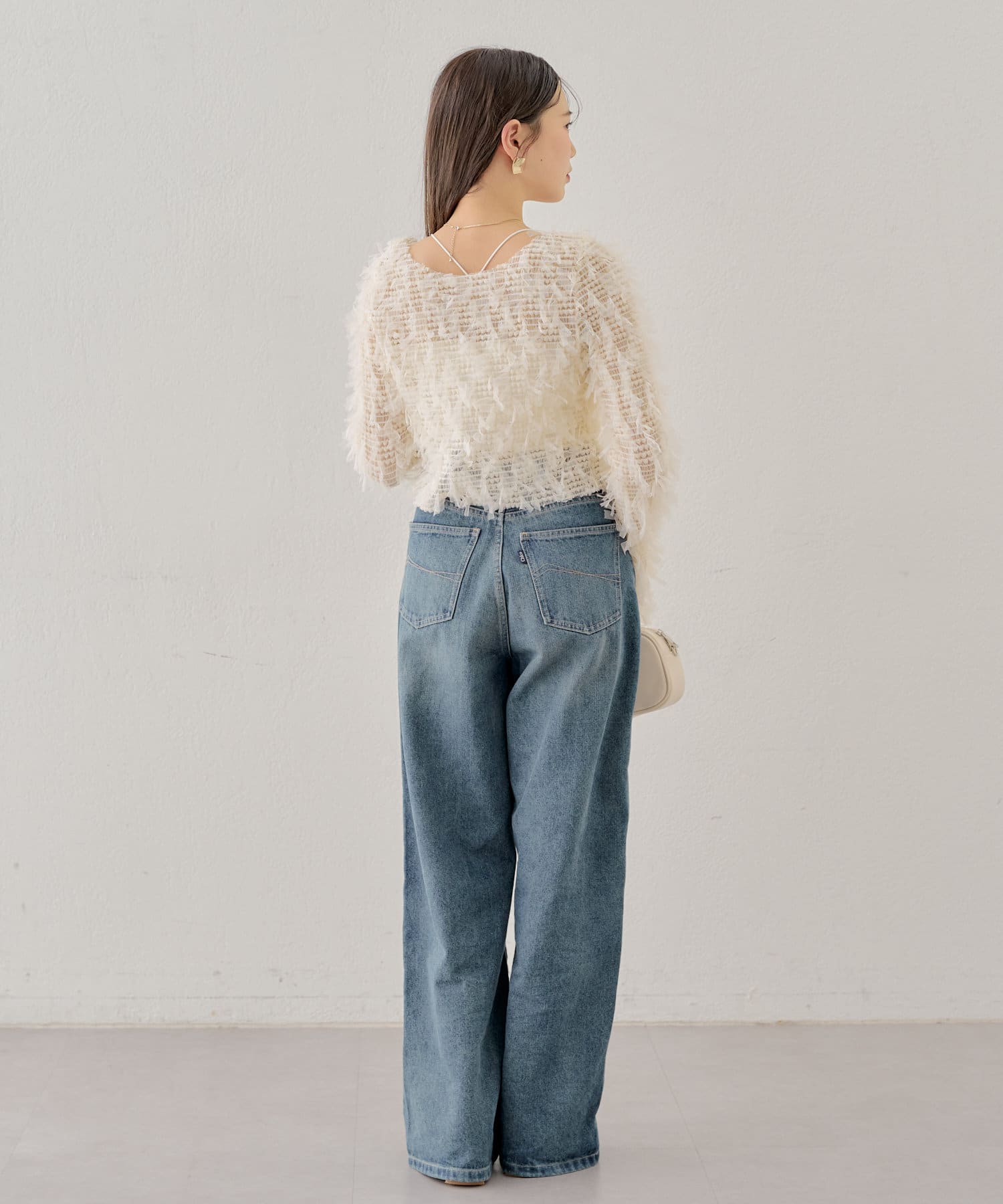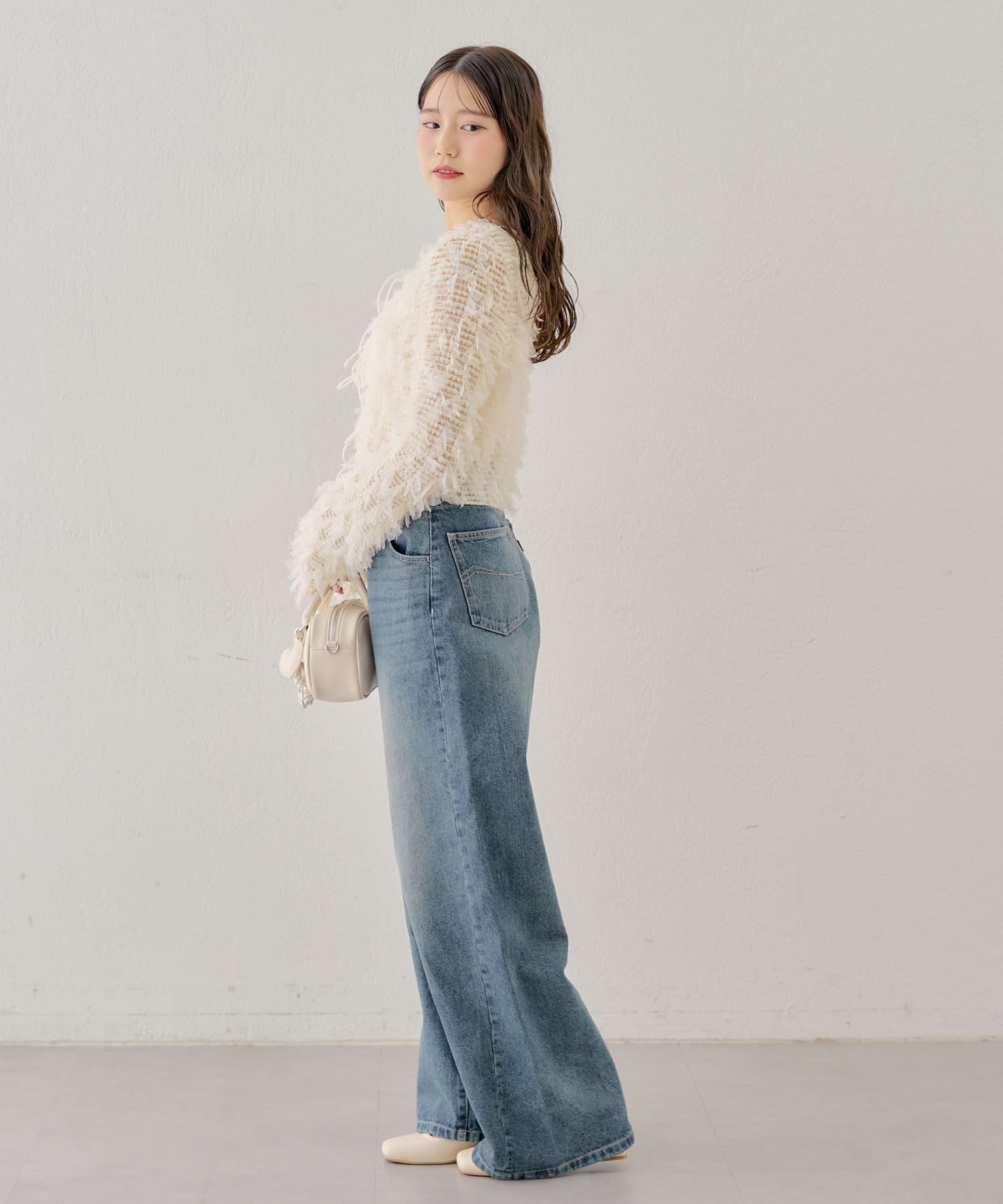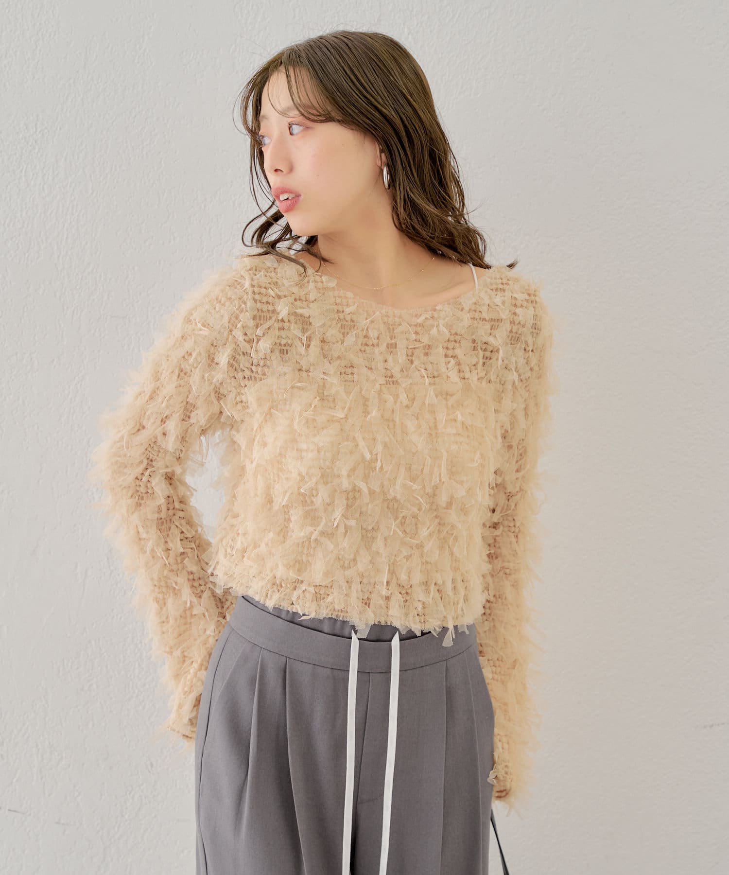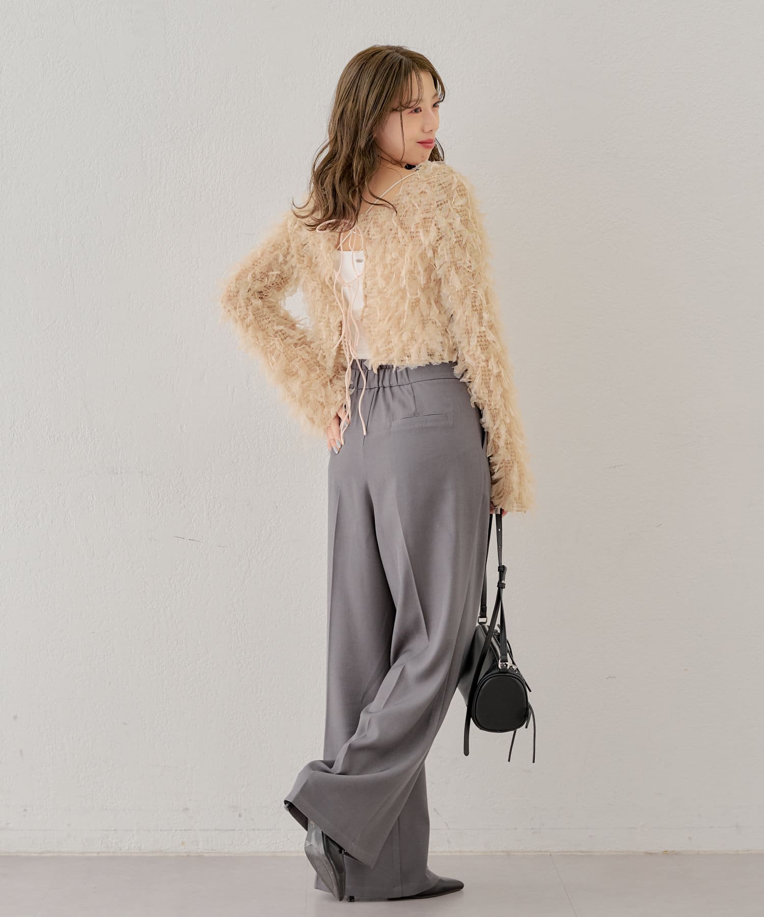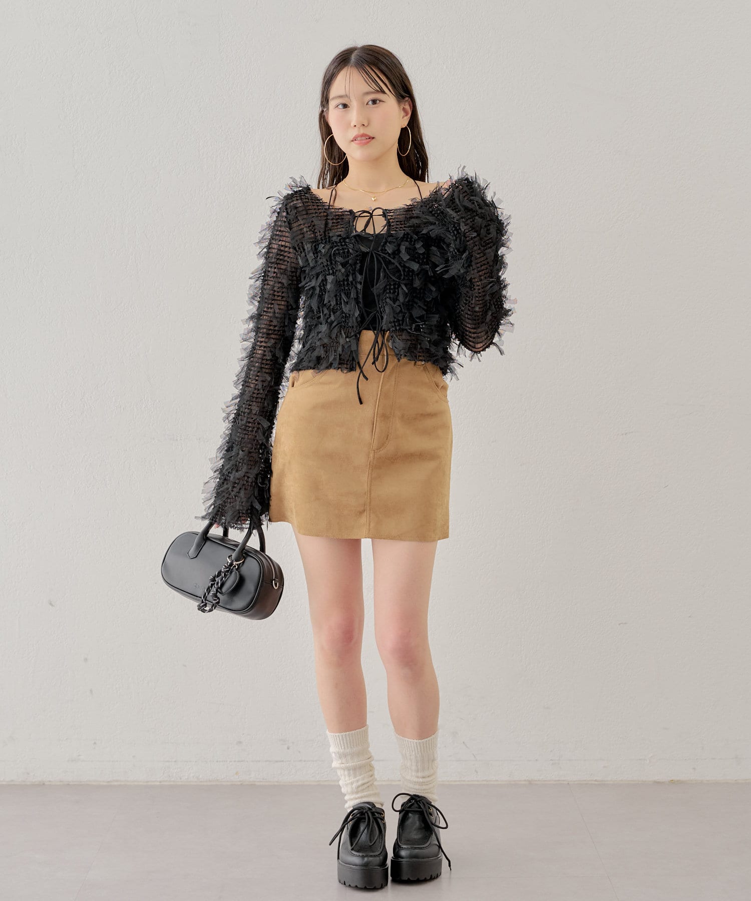 【Chico】リボンヤーンフリンジカーディガンブラウス