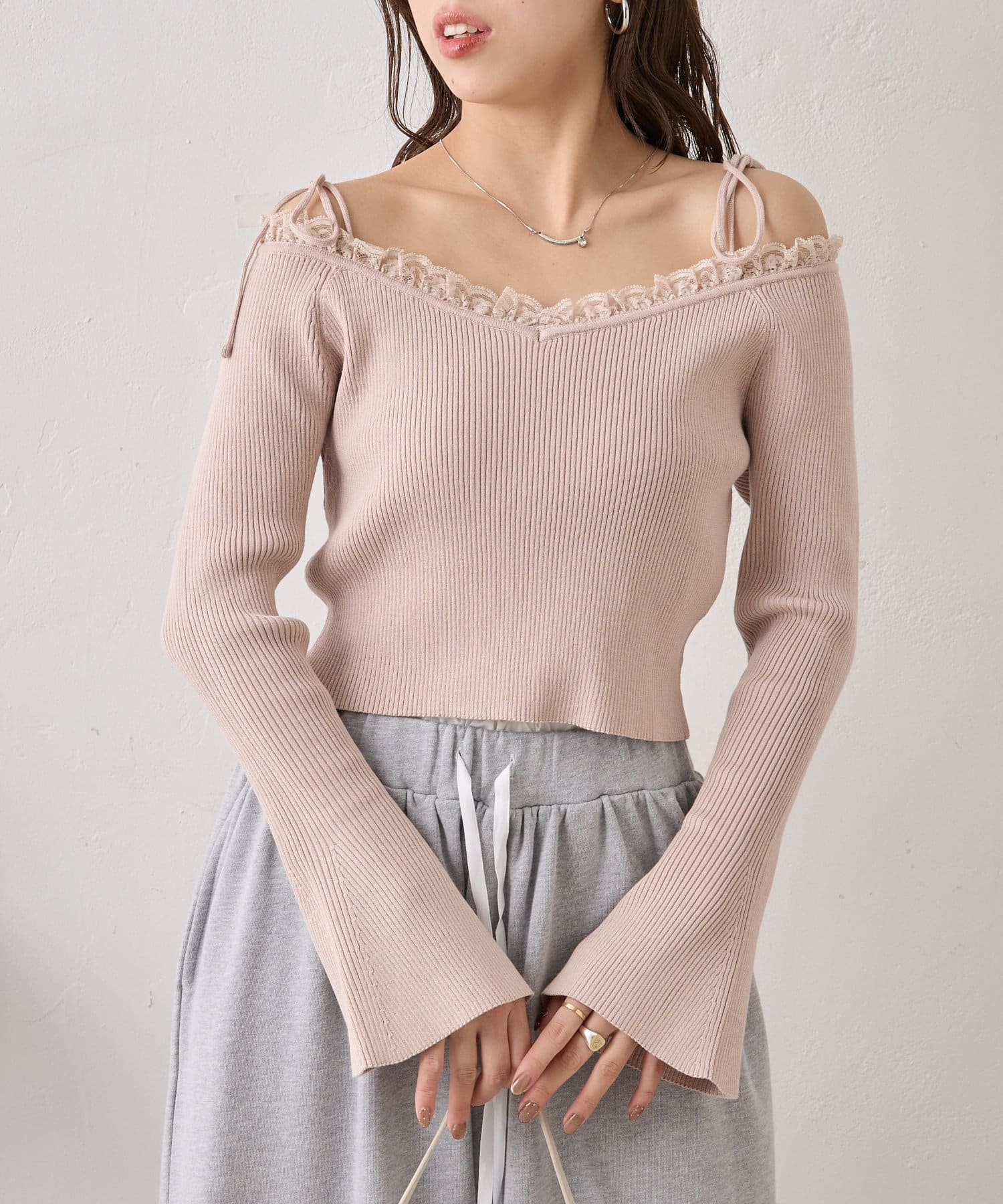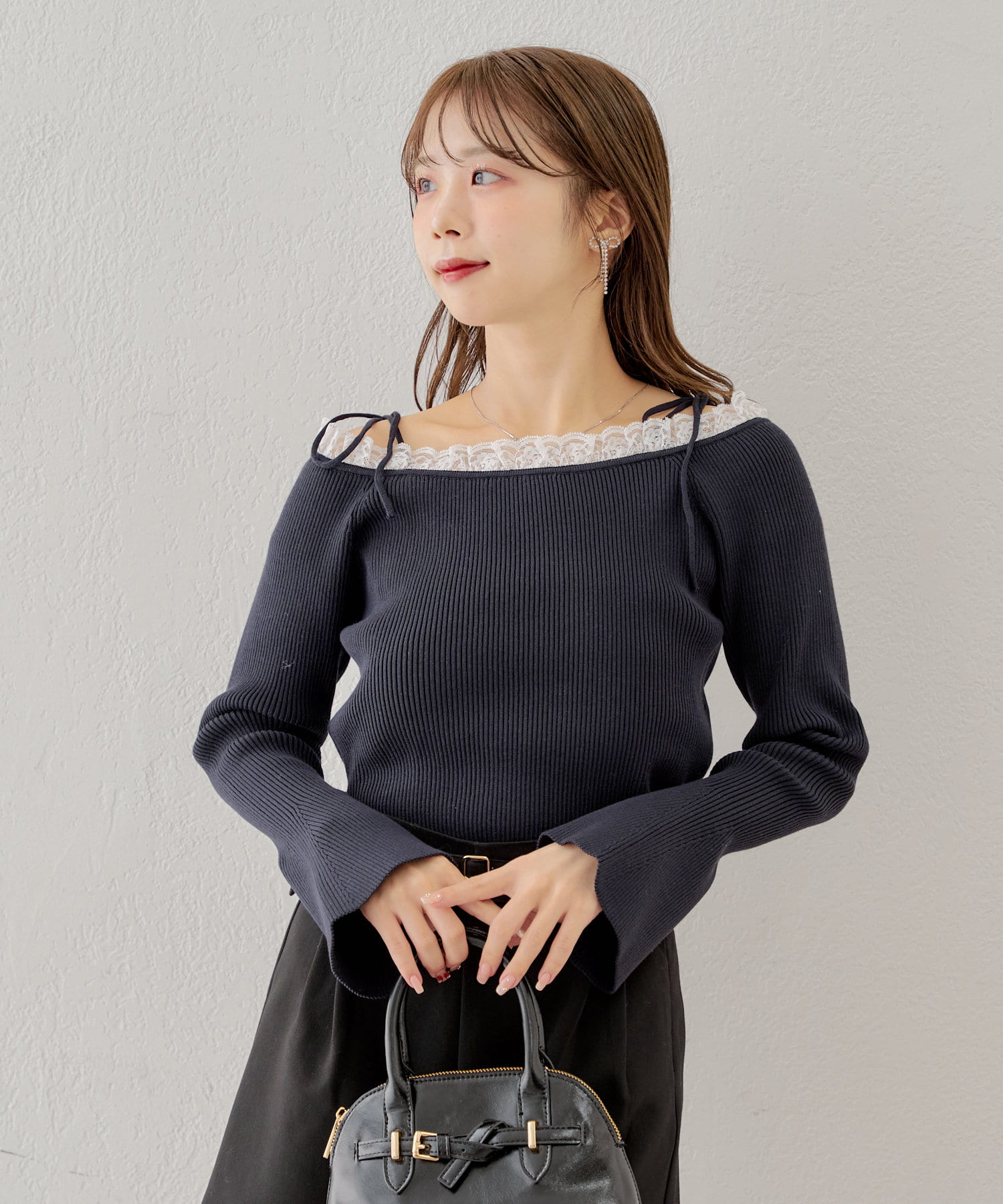 ・肩リボンがついているのでオフショルでもずれる心配なくご着用いただけます。