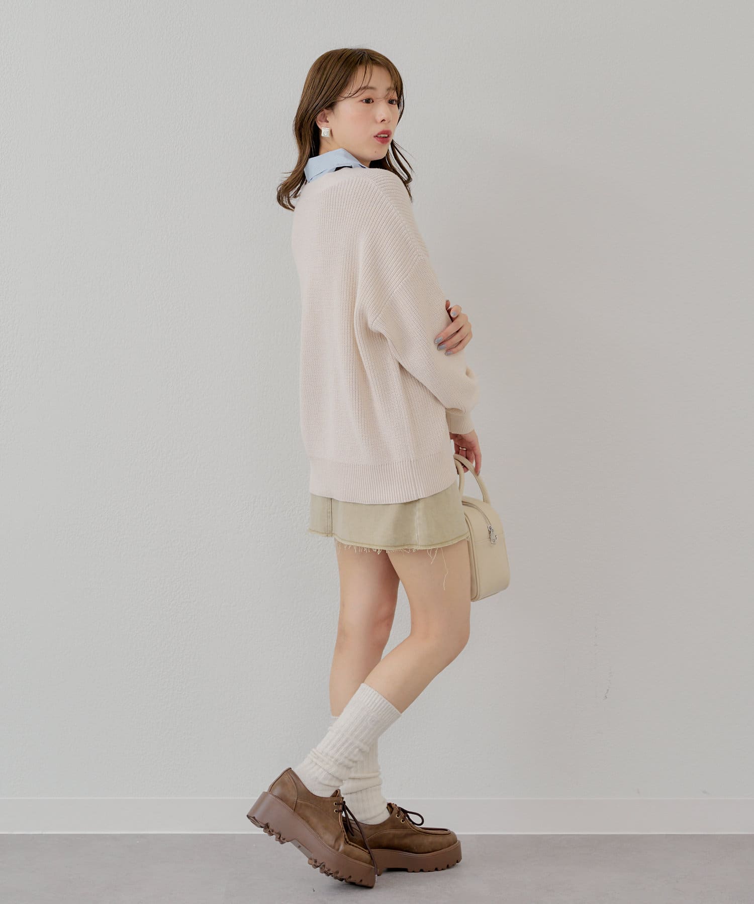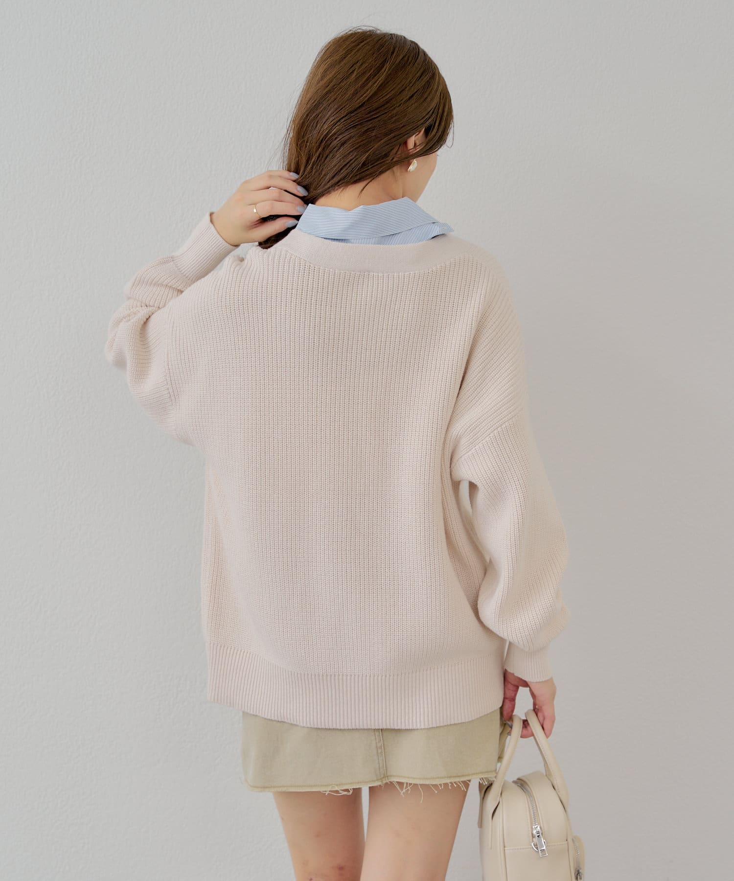 ・こちらのアイテムはシャツ部分をボタンで取り外すことができるのでシンプルなカーディガンとしても着用が可能です。