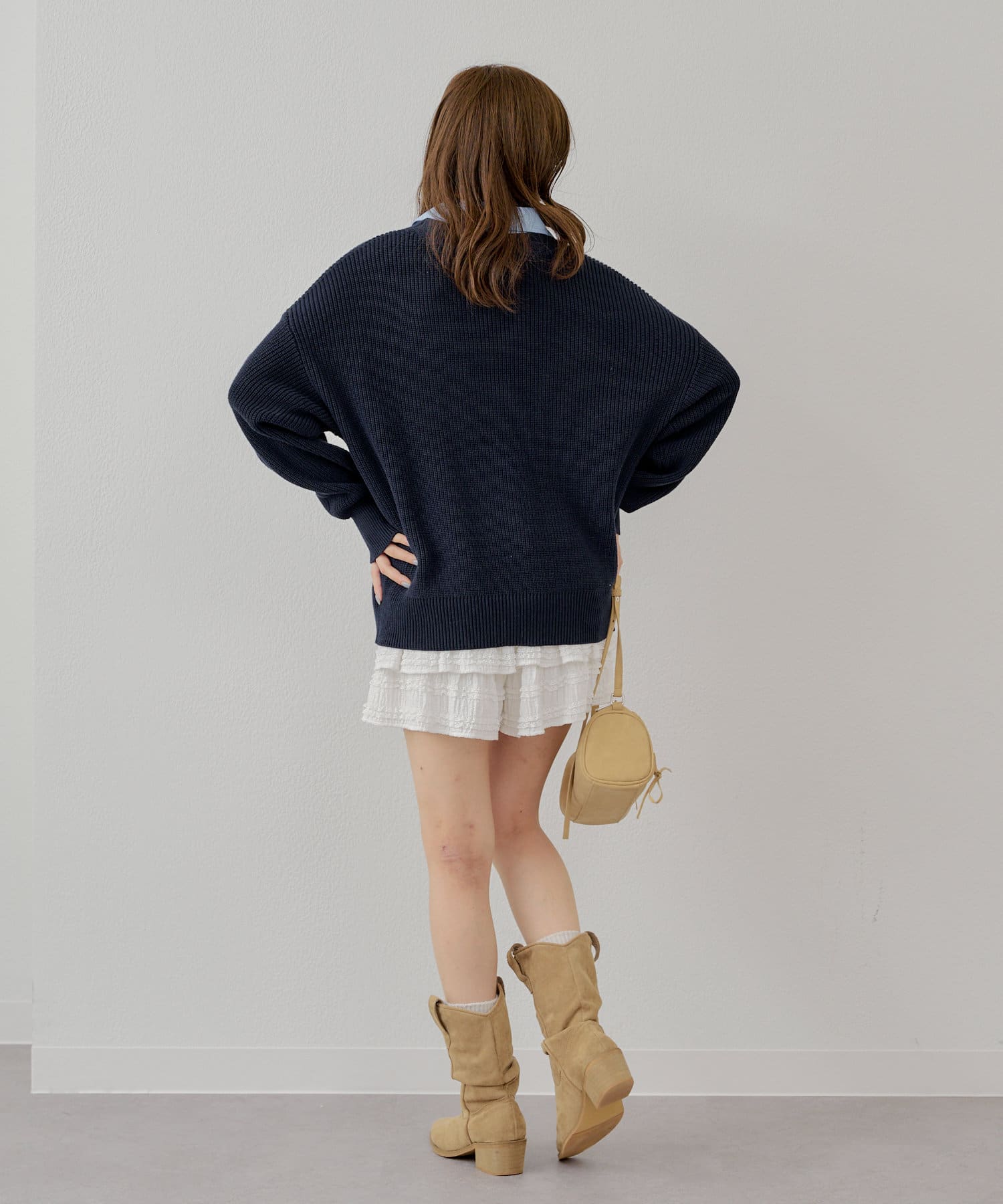 ・シャツレイヤードスタイルにはトレンドのレースティアードスカートが好相性です。