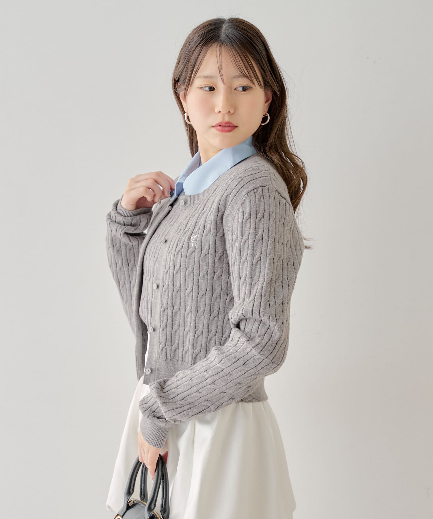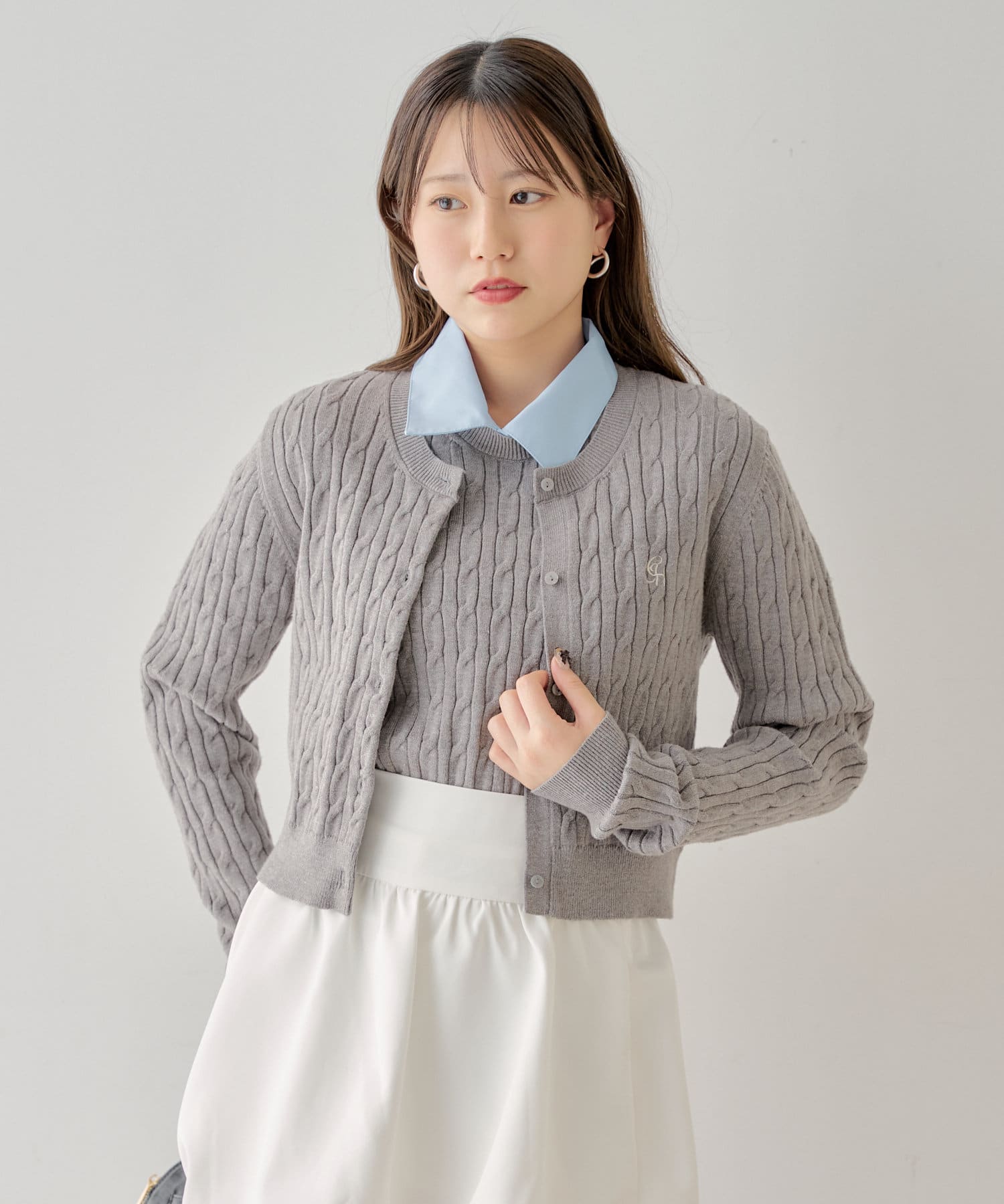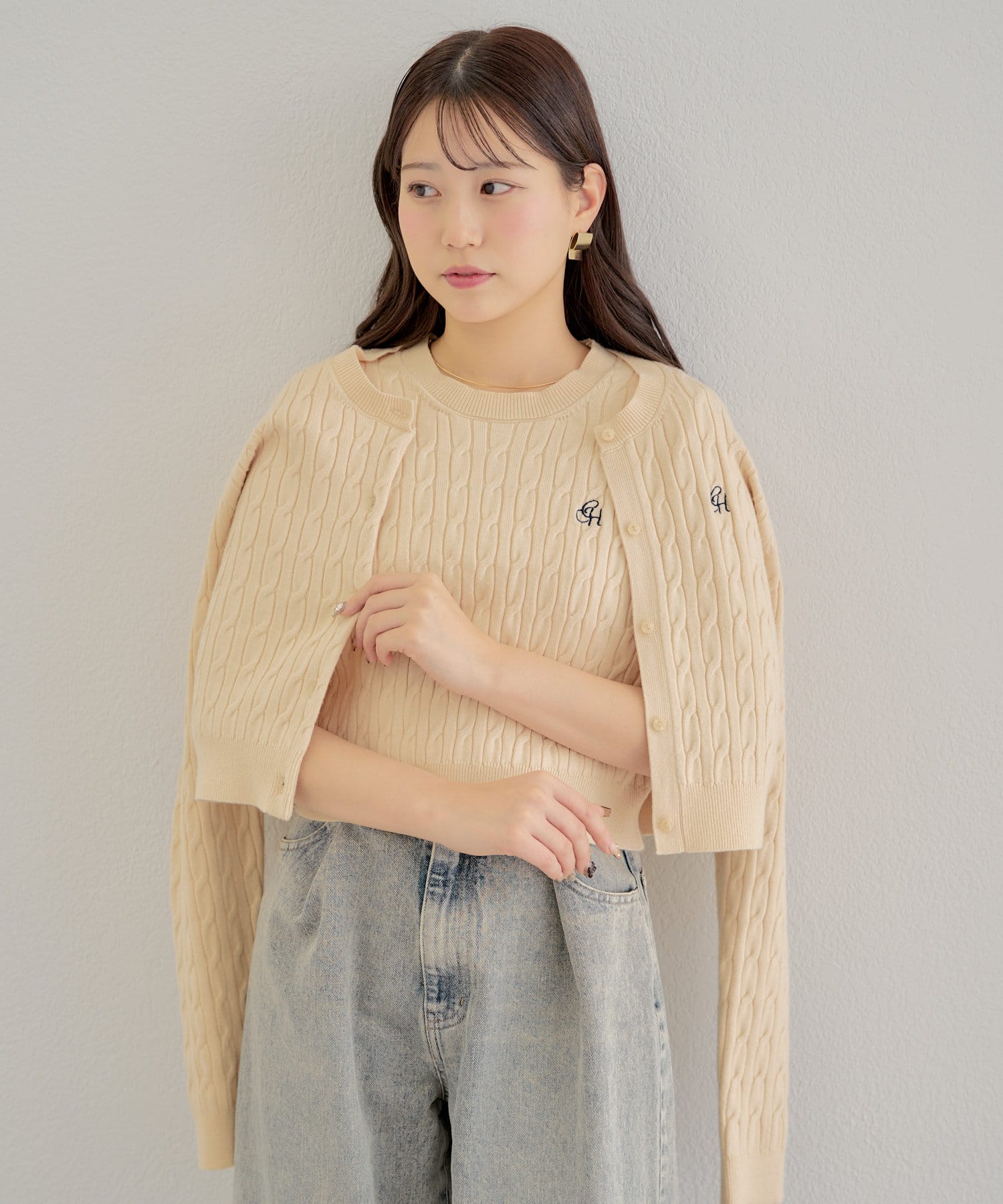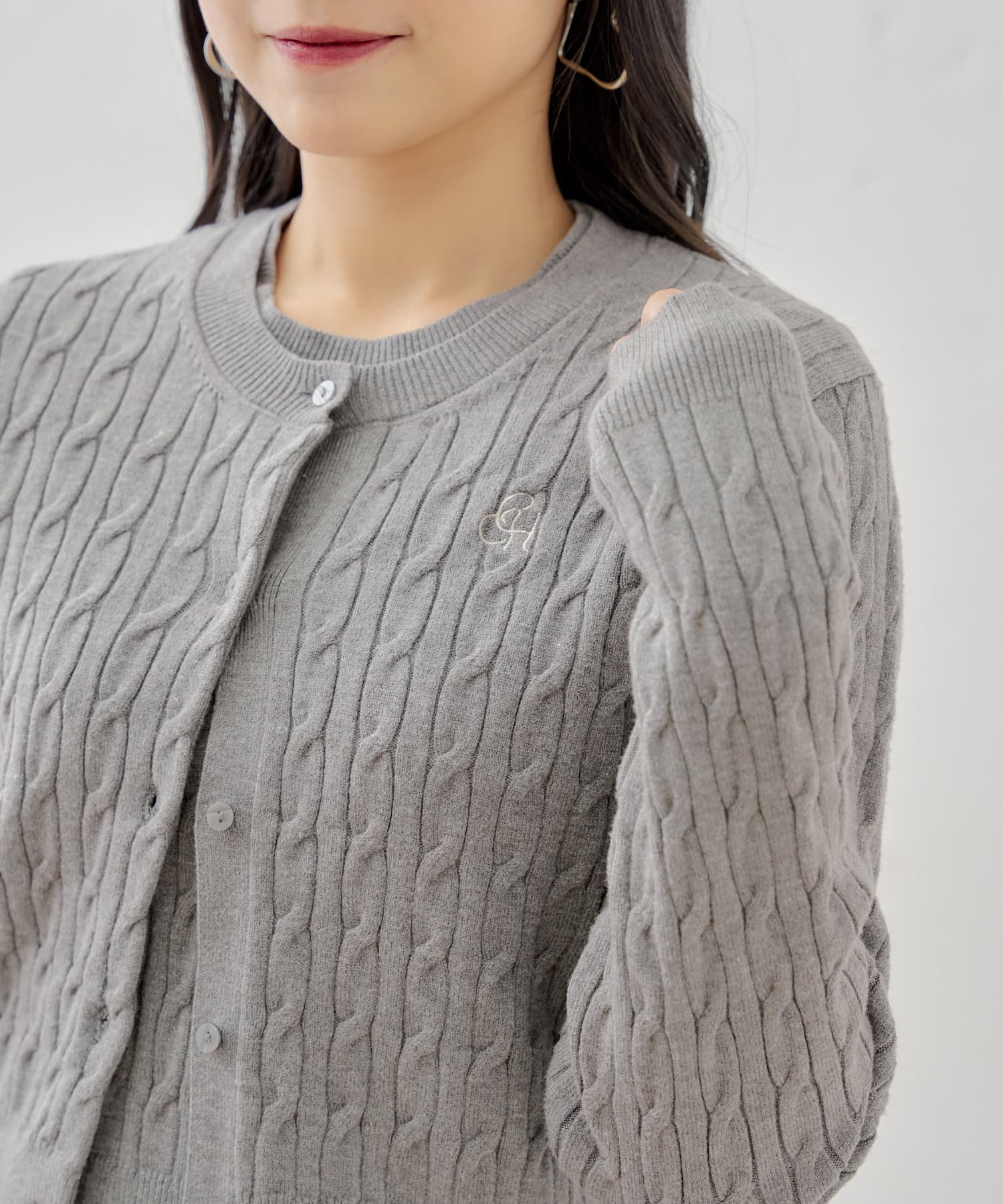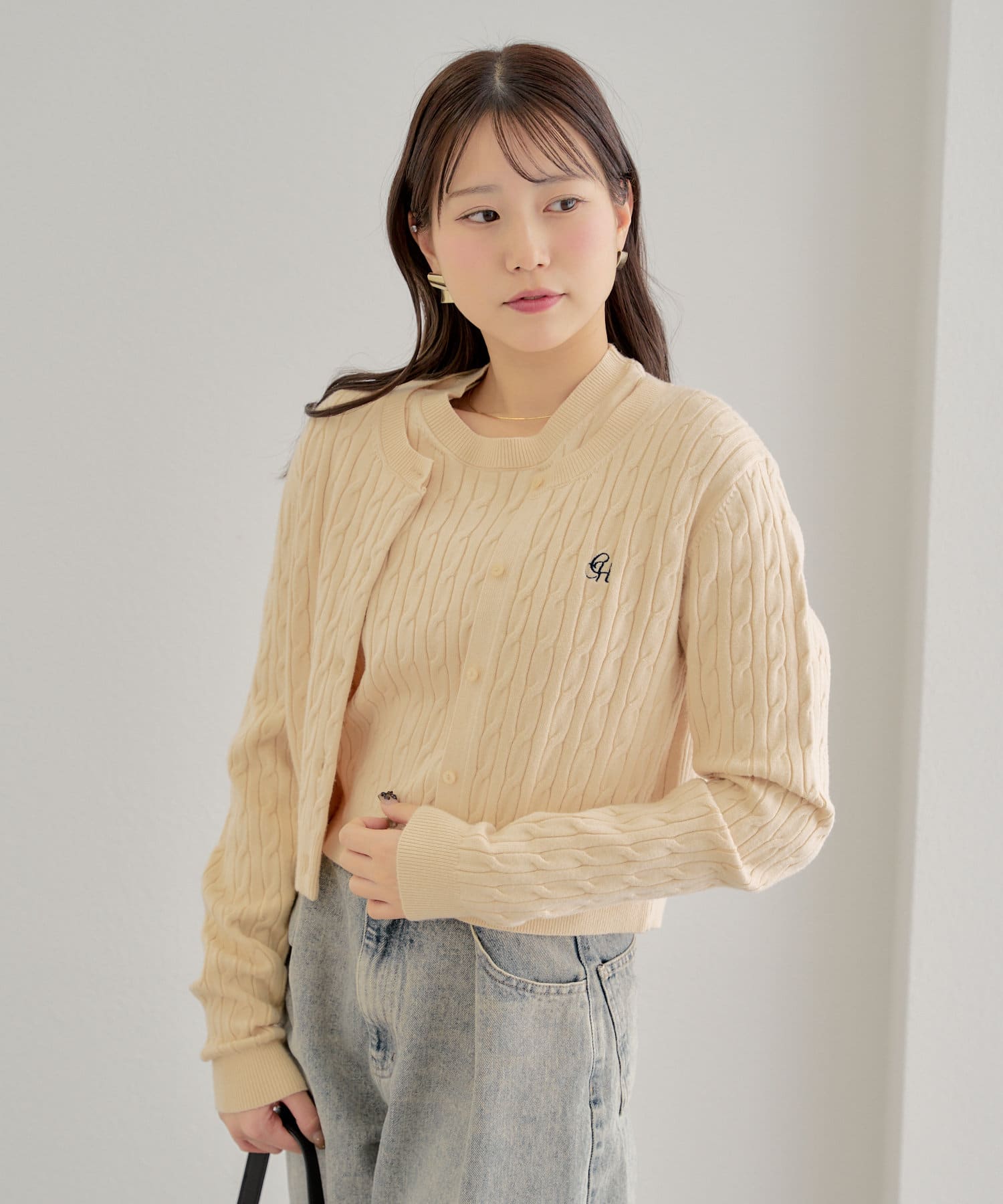 【SET ITEM】アンサンブルケーブル胸刺繡カーディガン