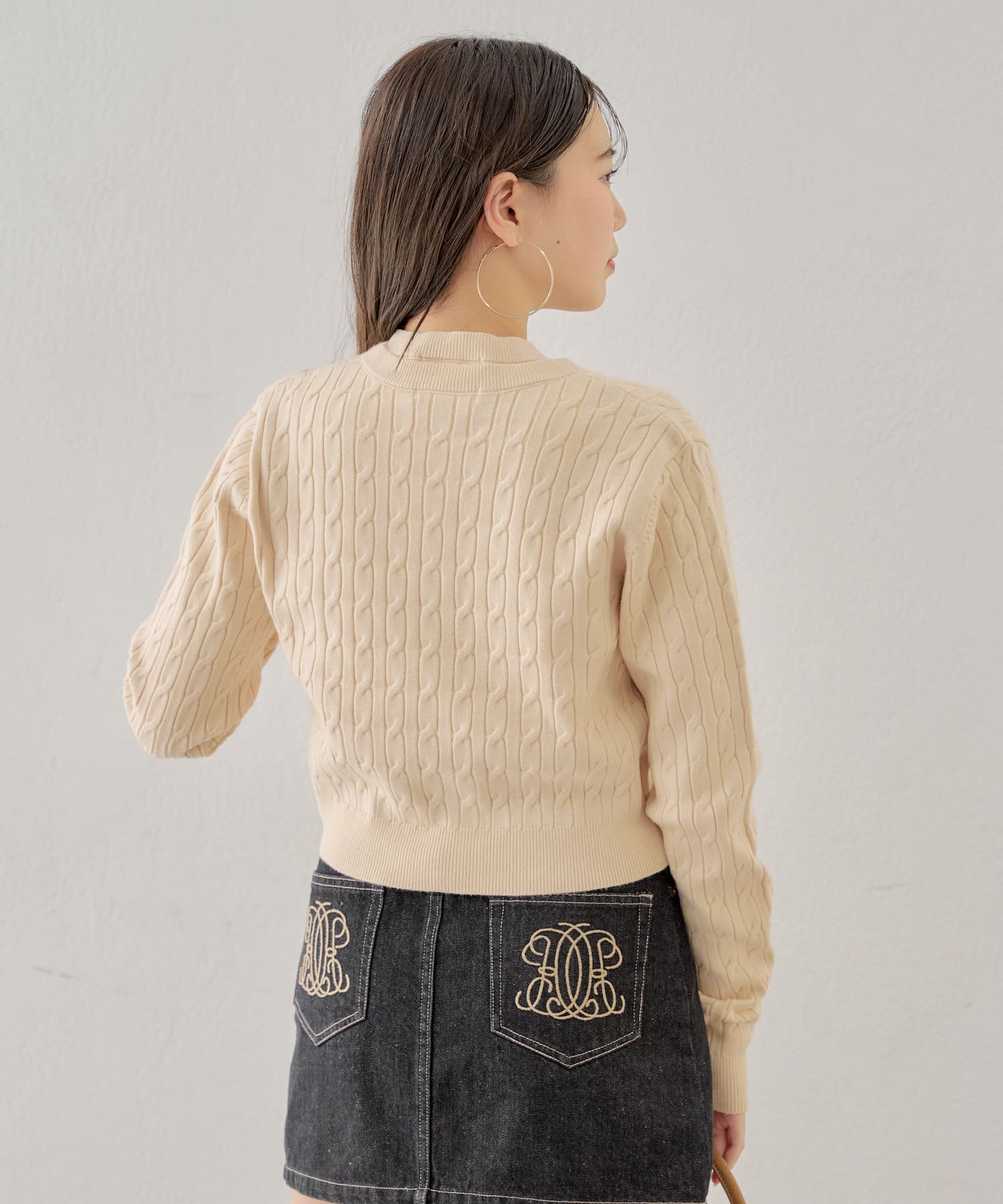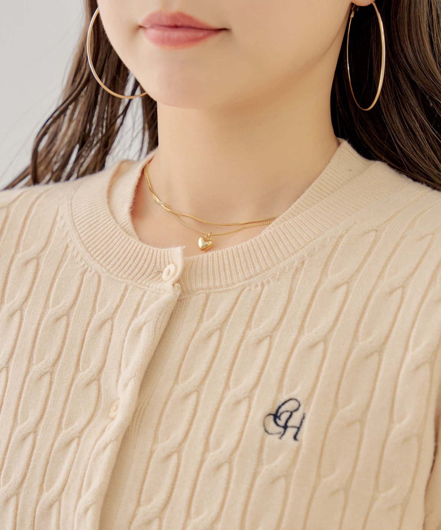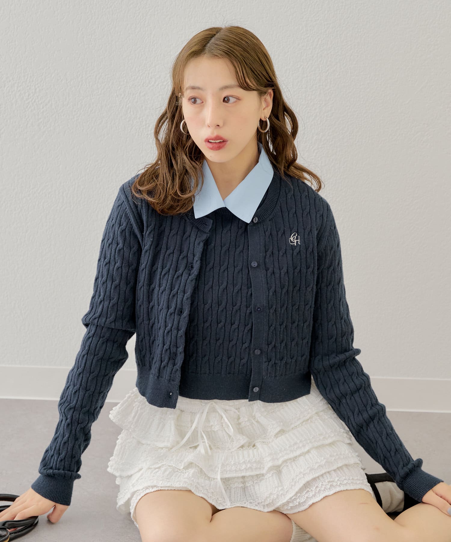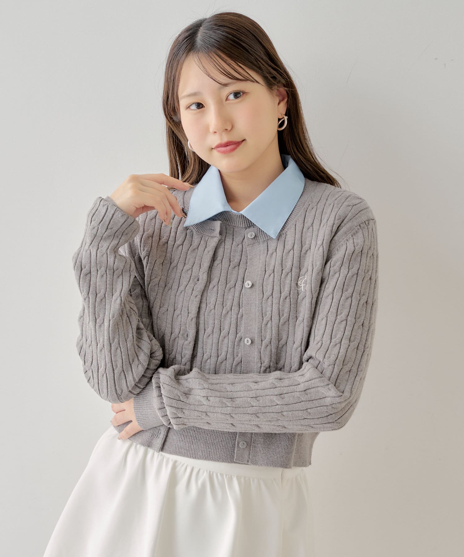 【SET ITEM】アンサンブルケーブル胸刺繡カーディガン