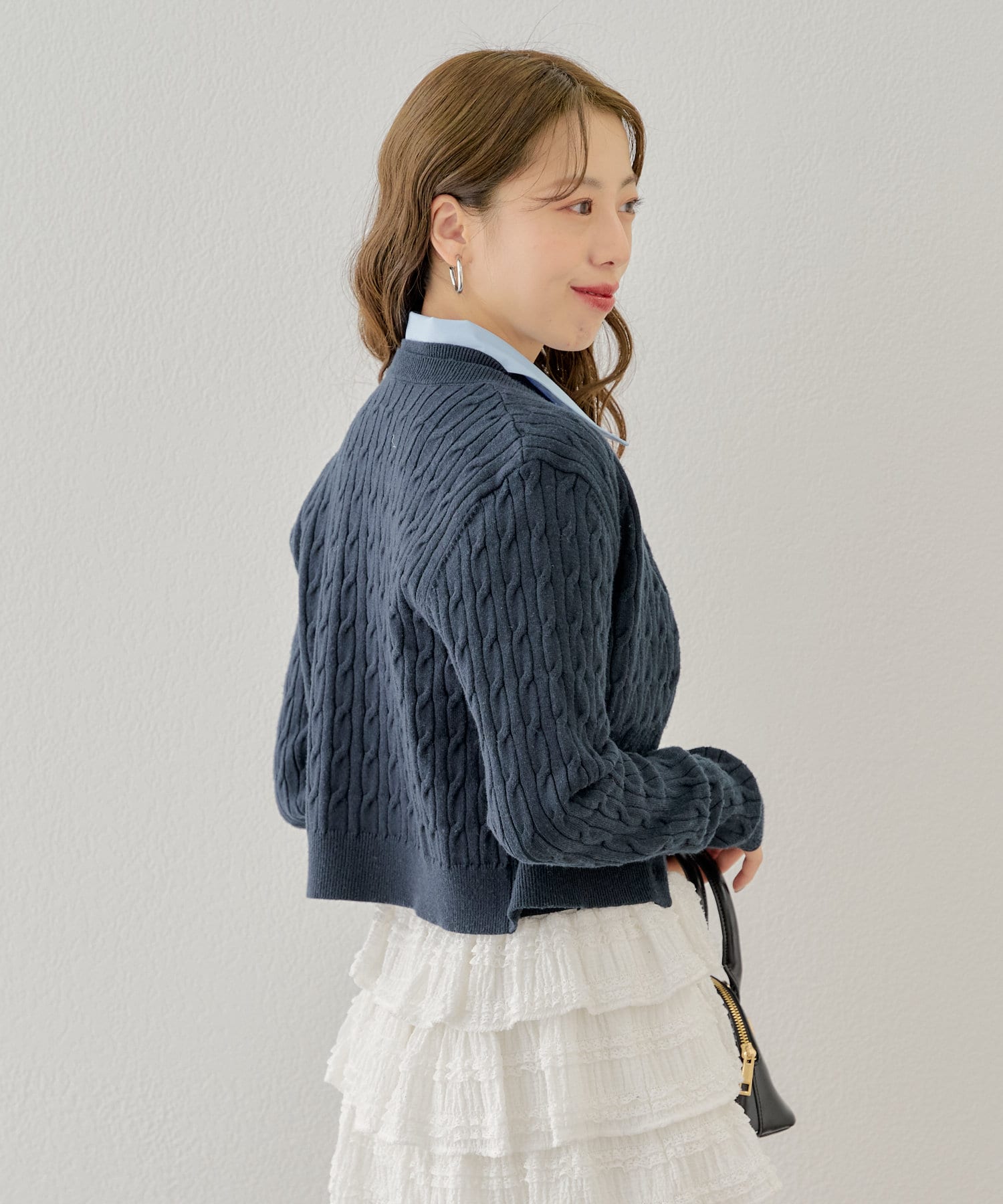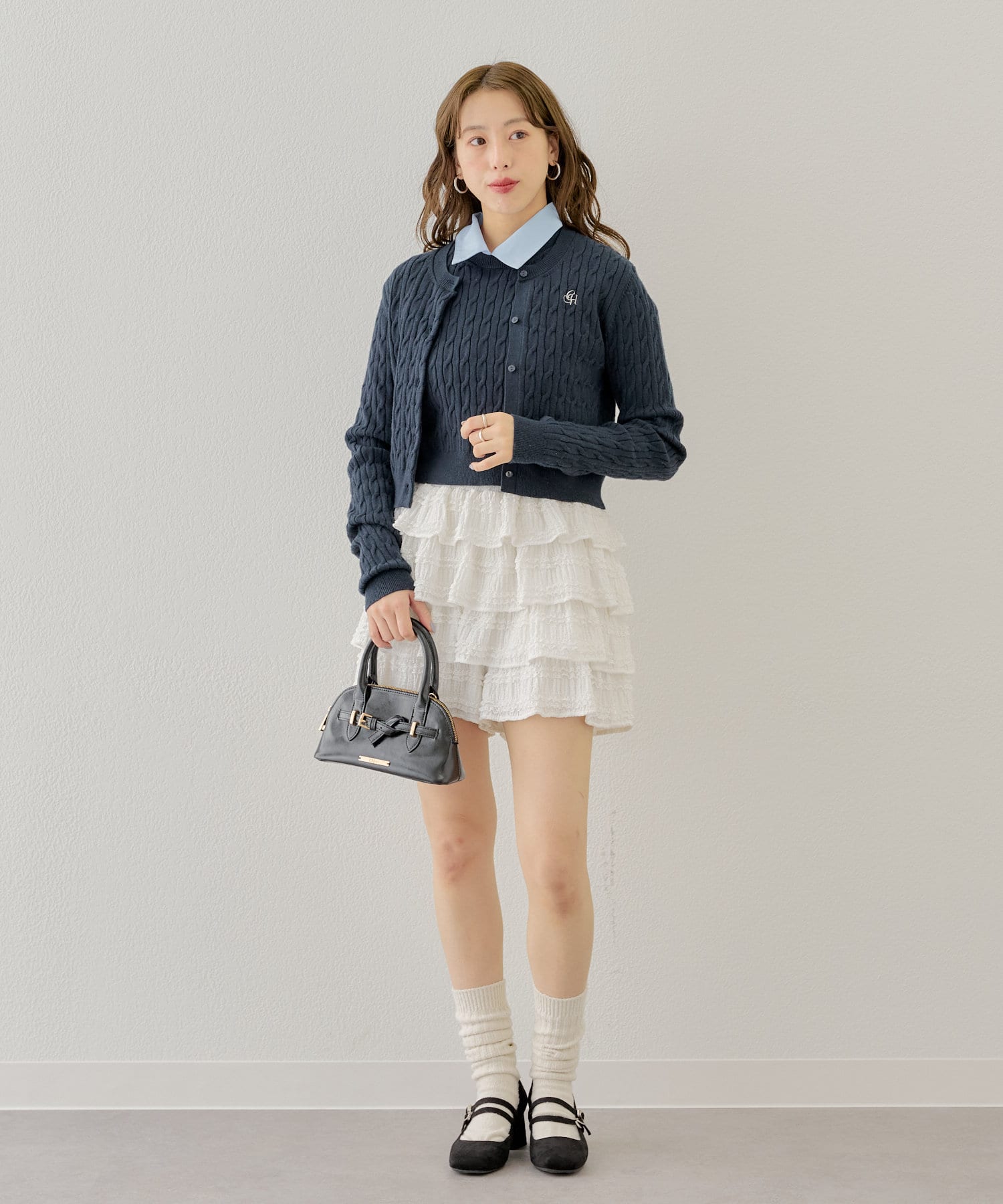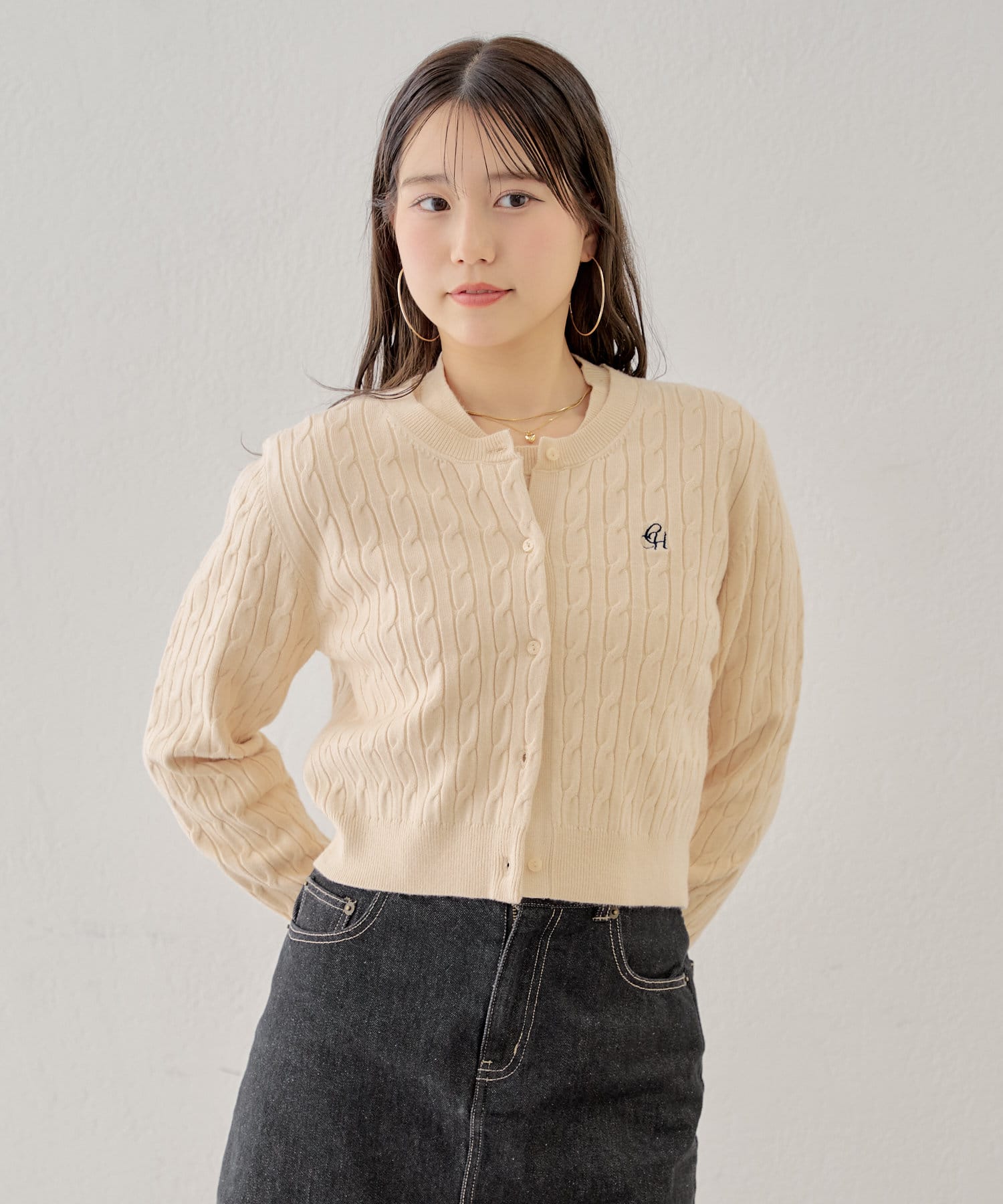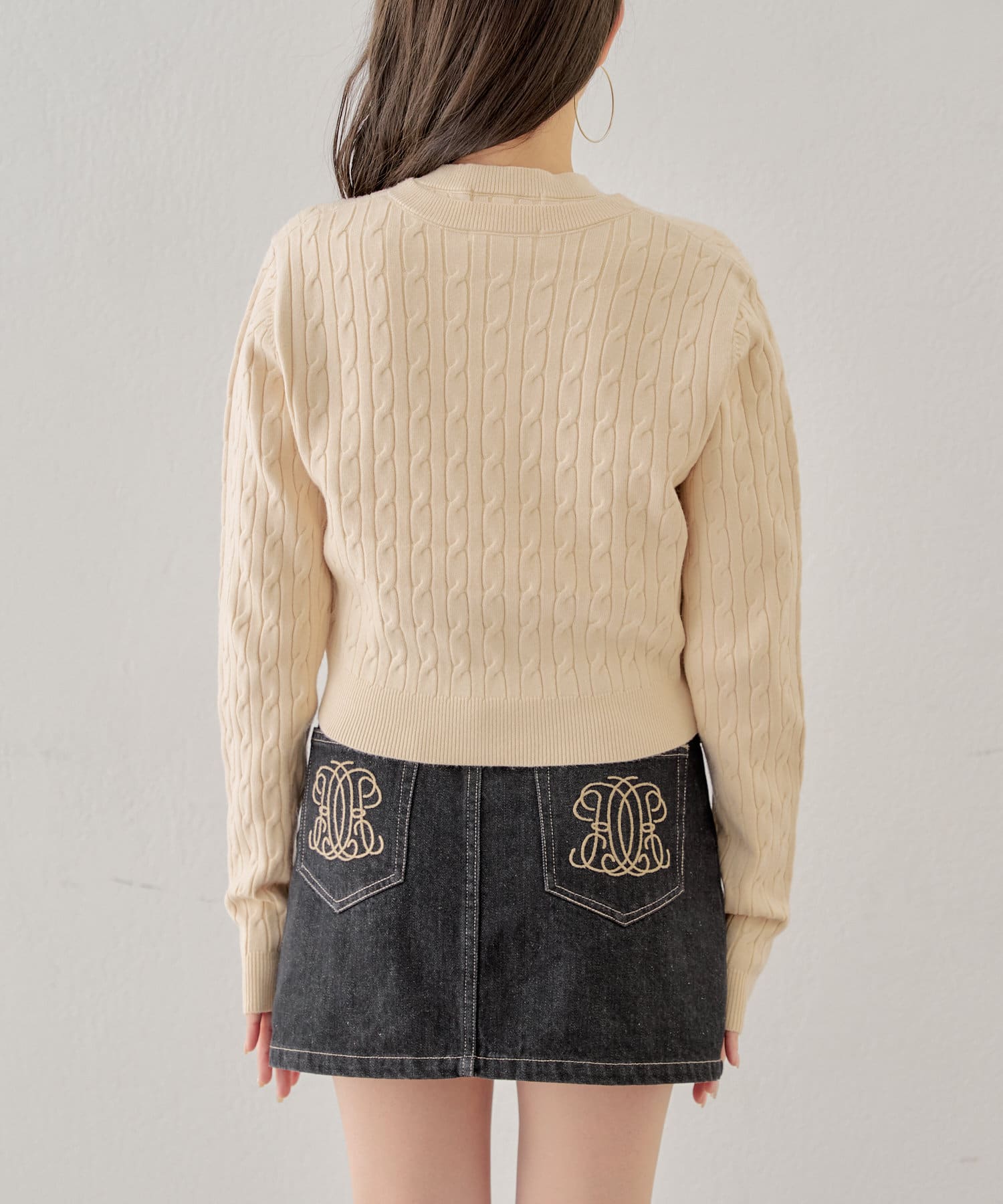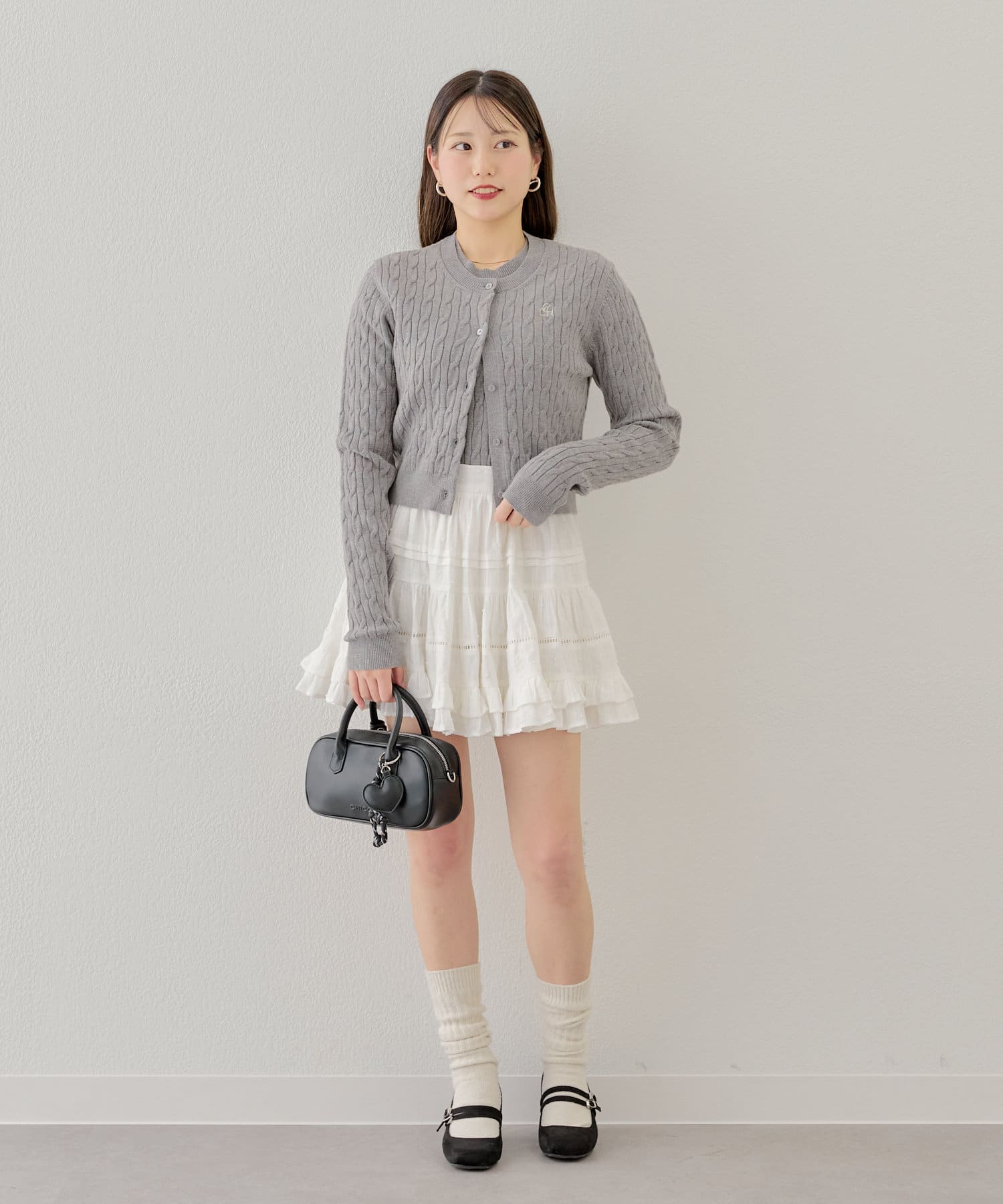 【SET ITEM】アンサンブルケーブル胸刺繡カーディガン