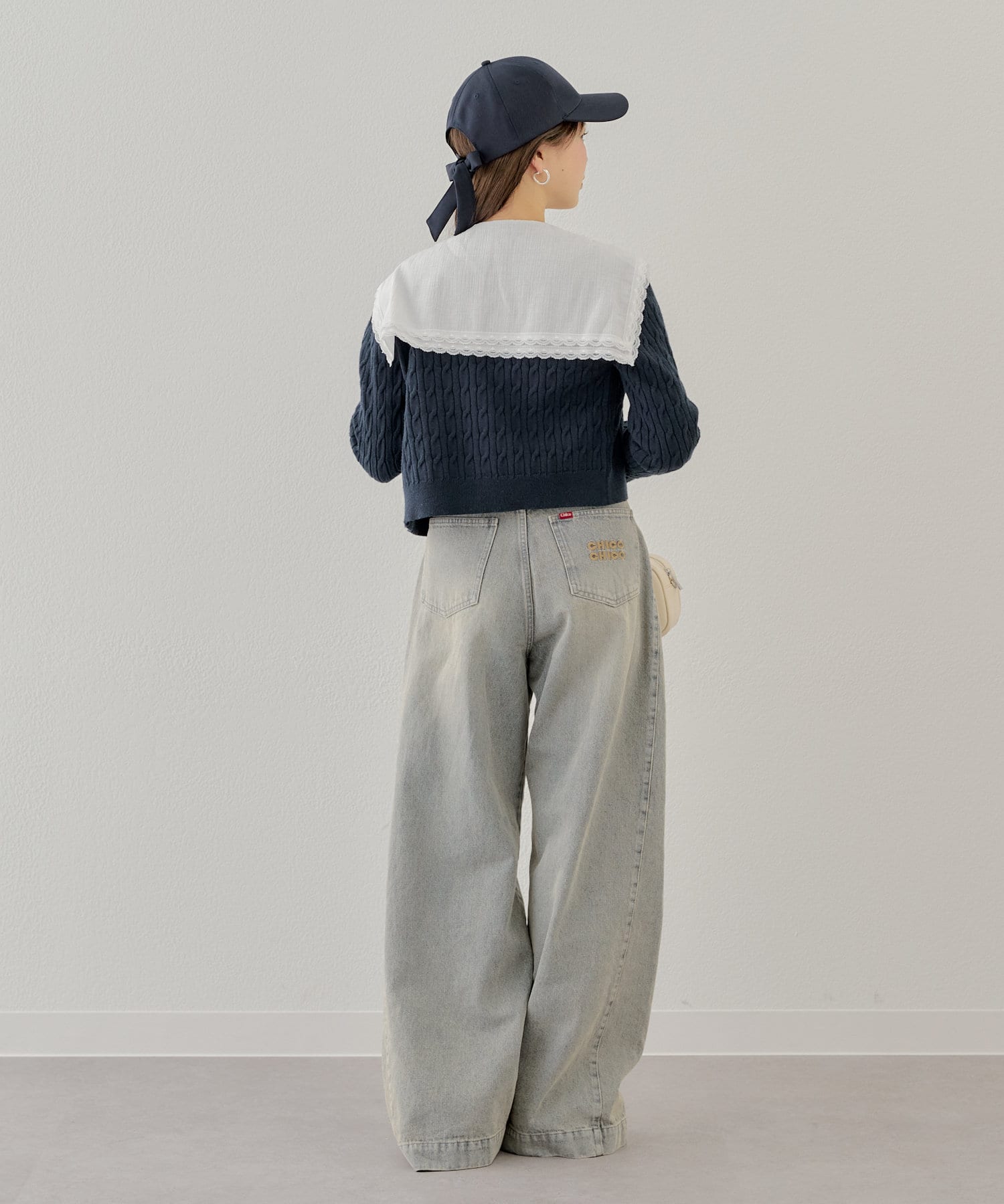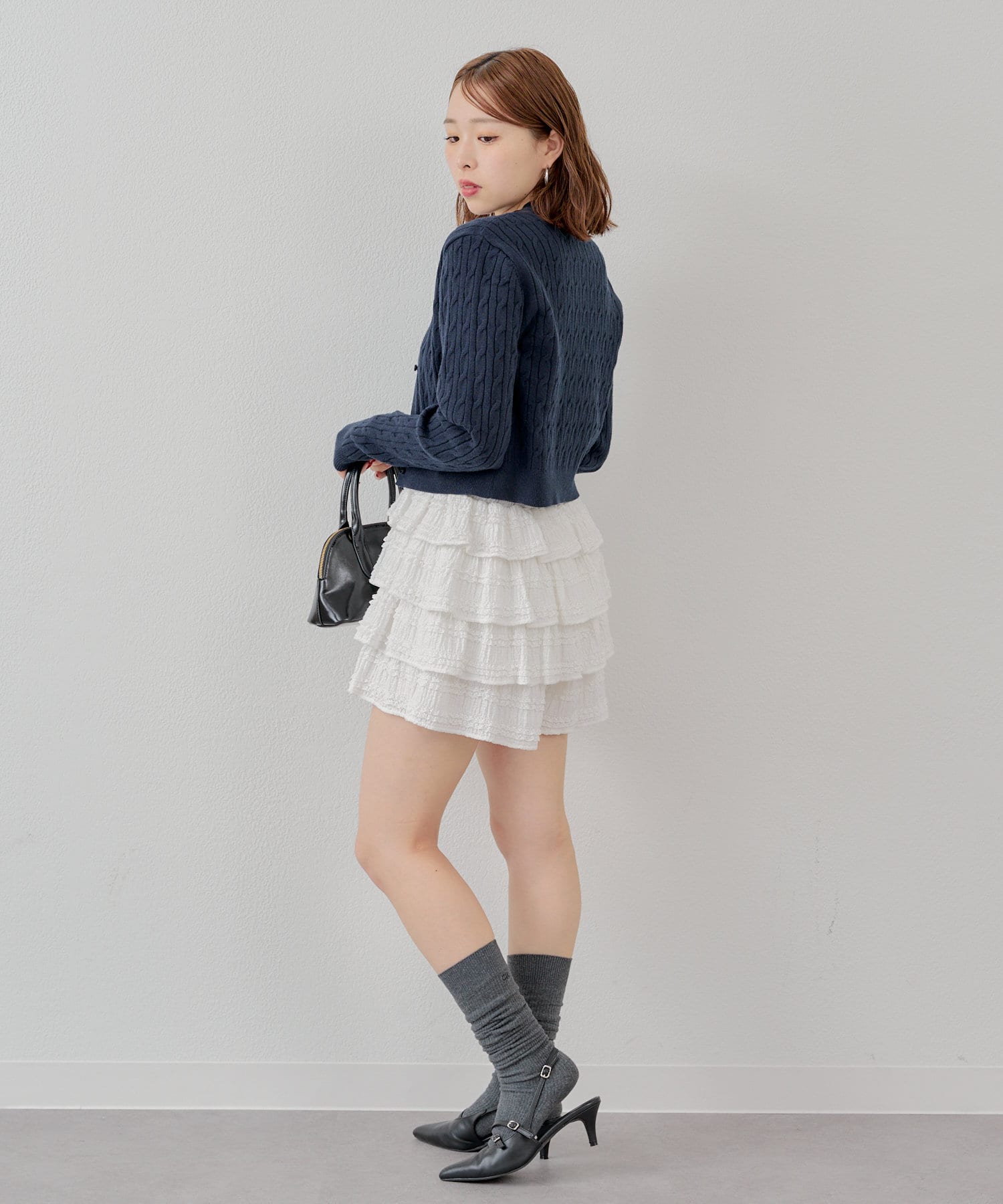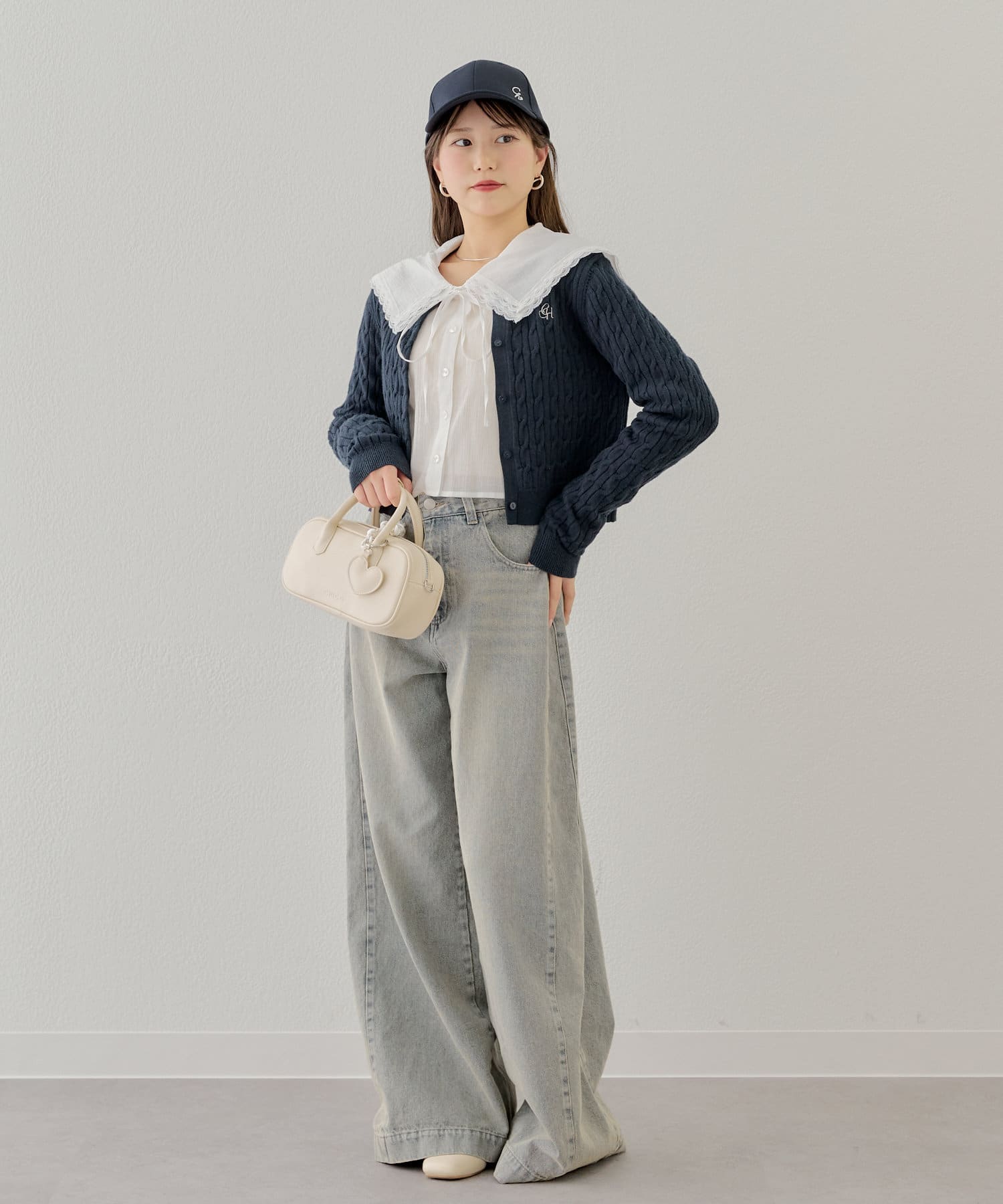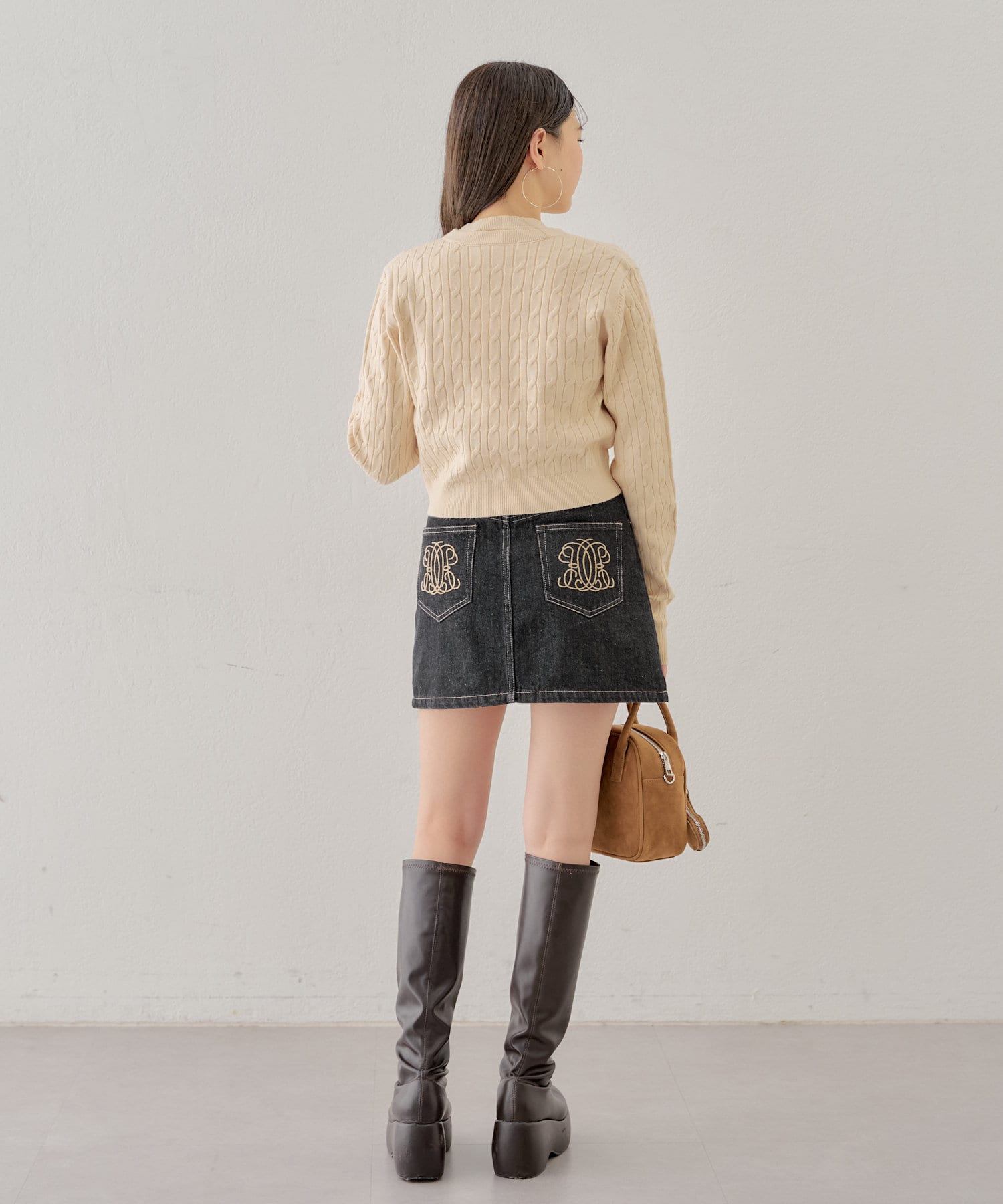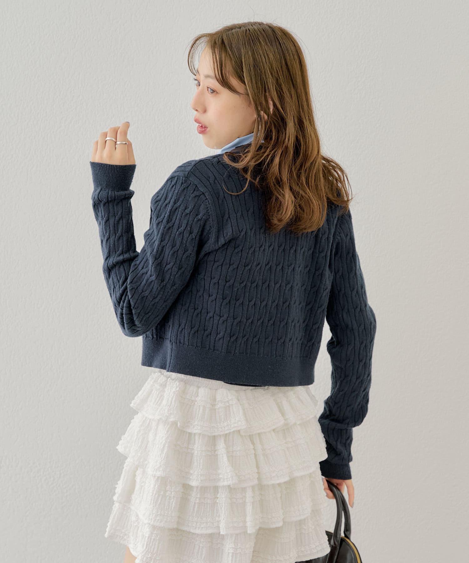 【SET ITEM】アンサンブルケーブル胸刺繡カーディガン