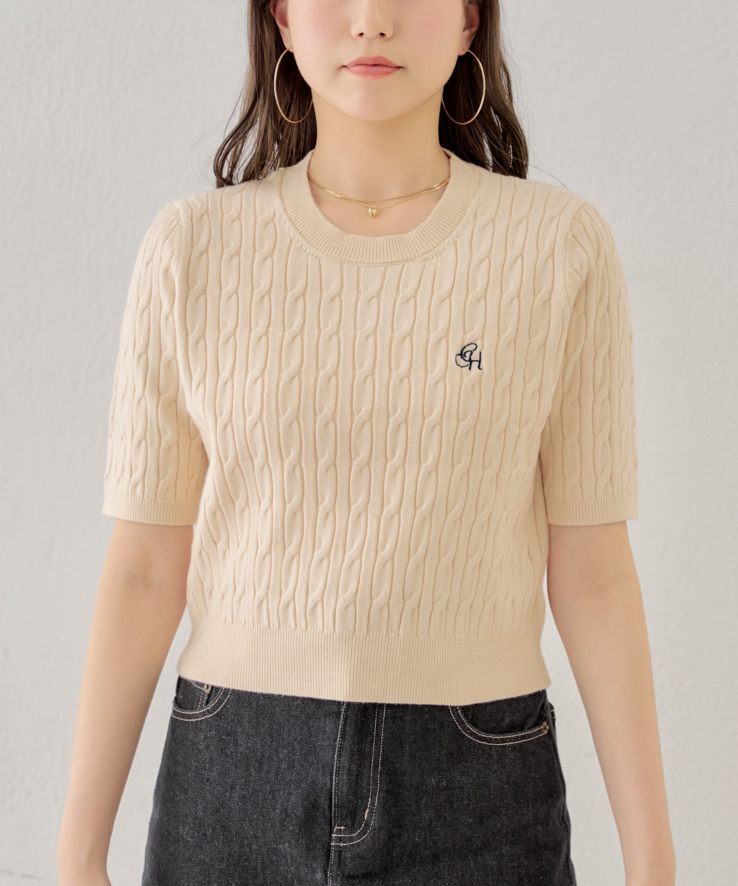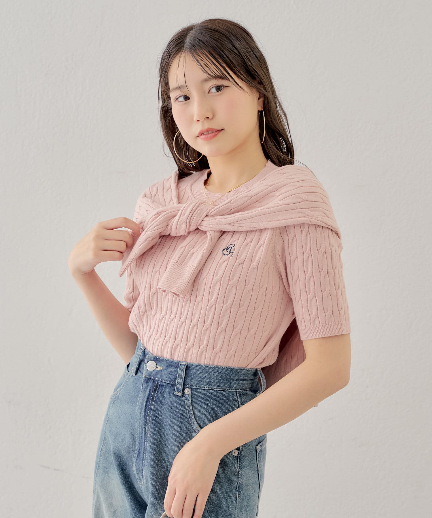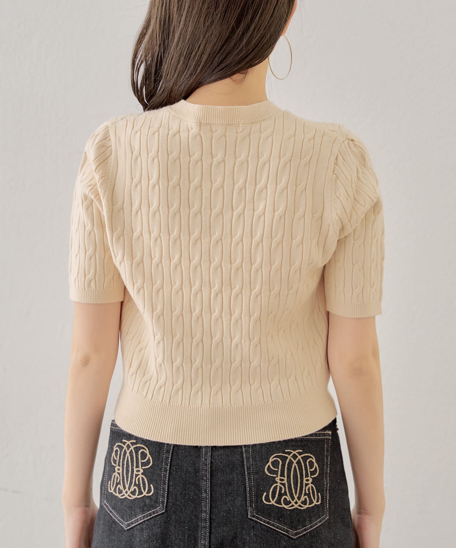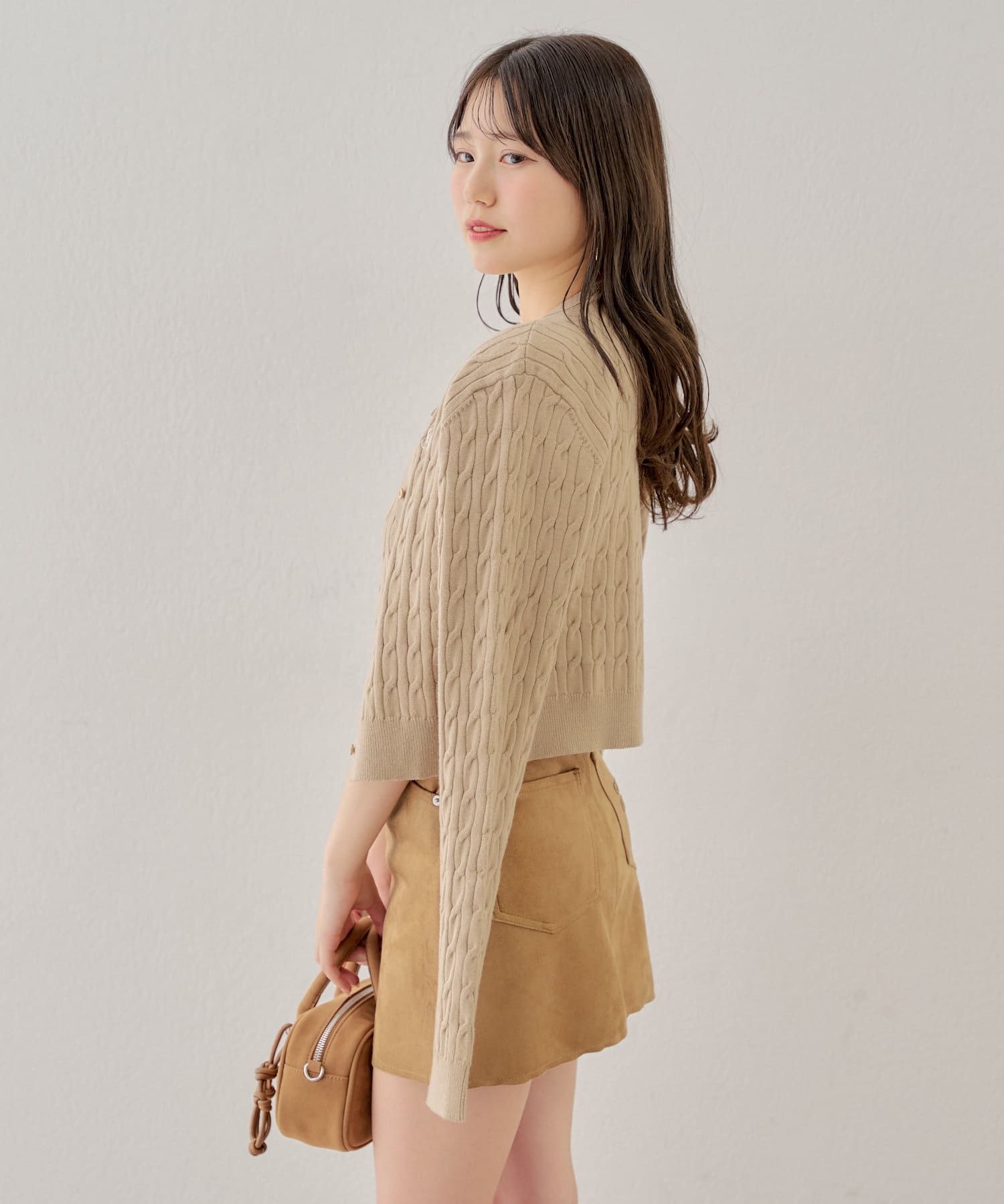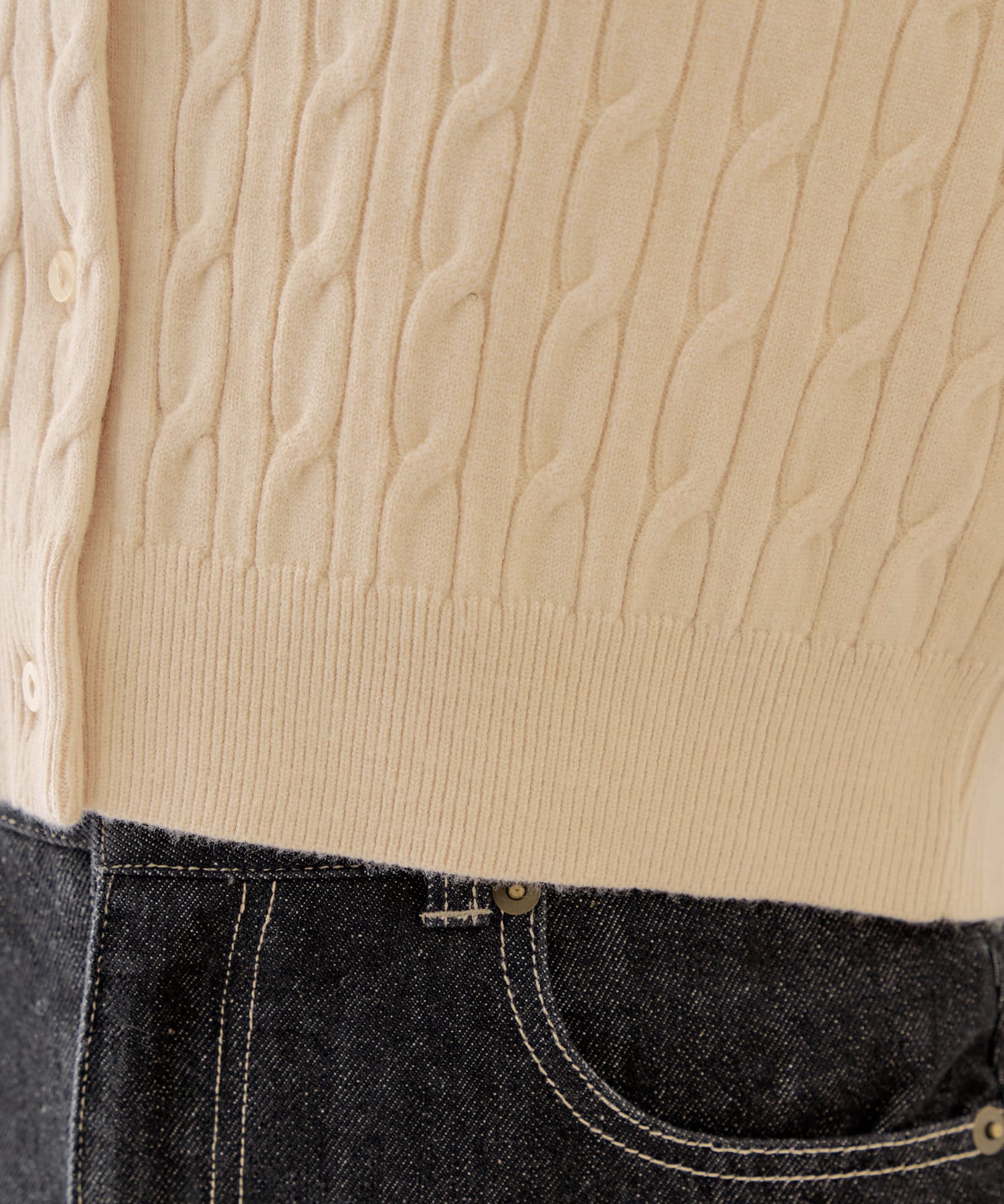 ケーブル柄のカーディガンと半袖ニットの着回し力抜群セット