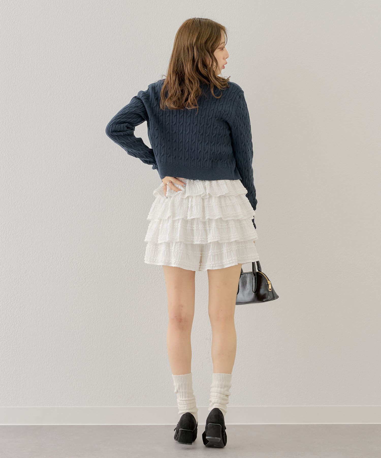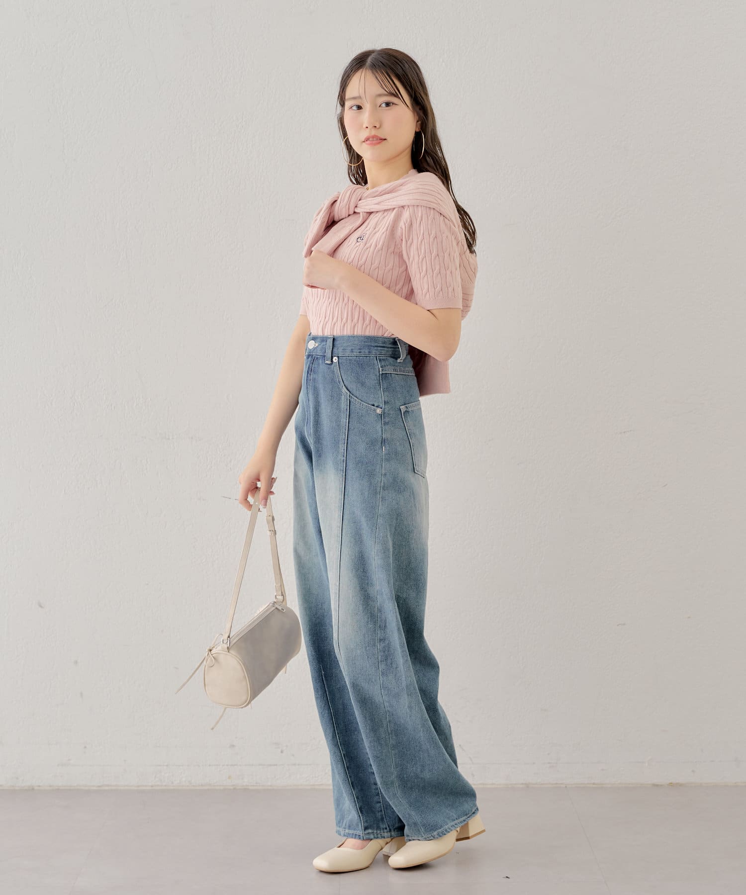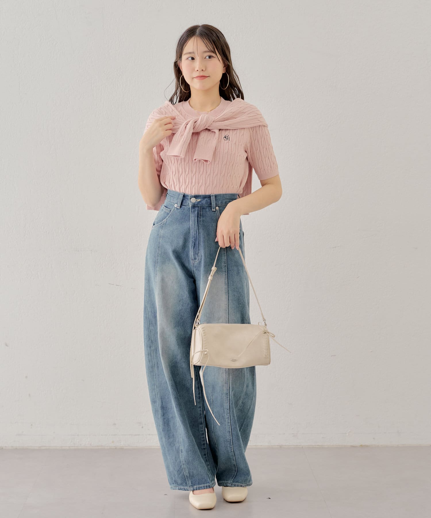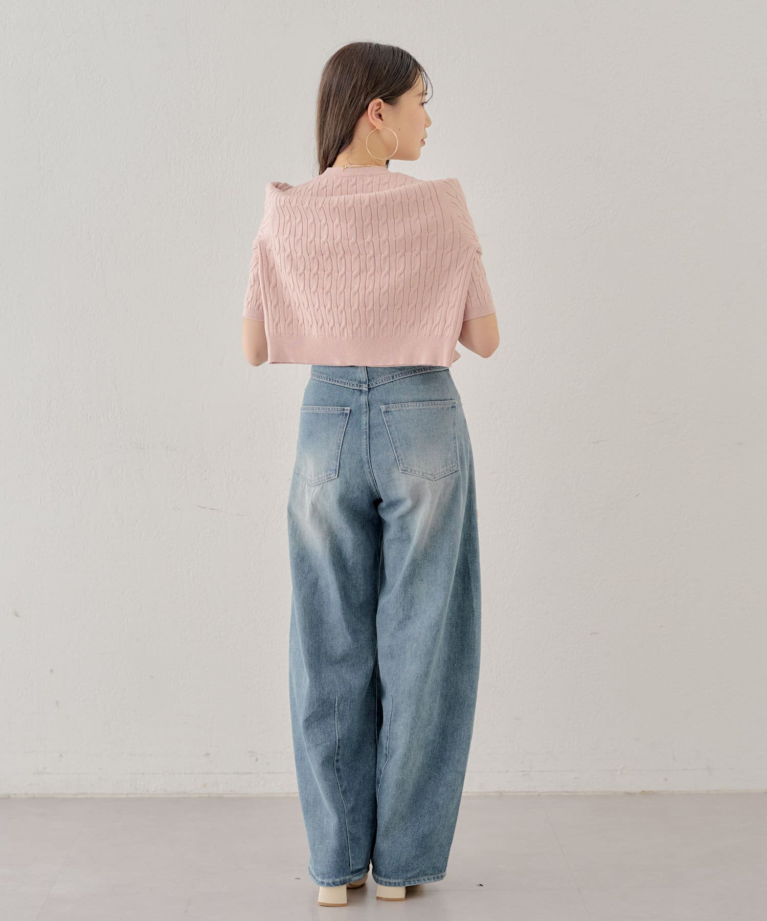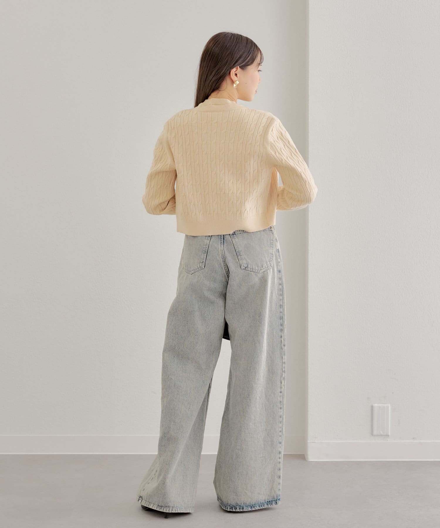 ケーブル柄のカーディガンと半袖ニットの着回し力抜群セット