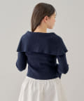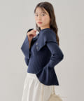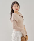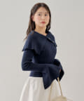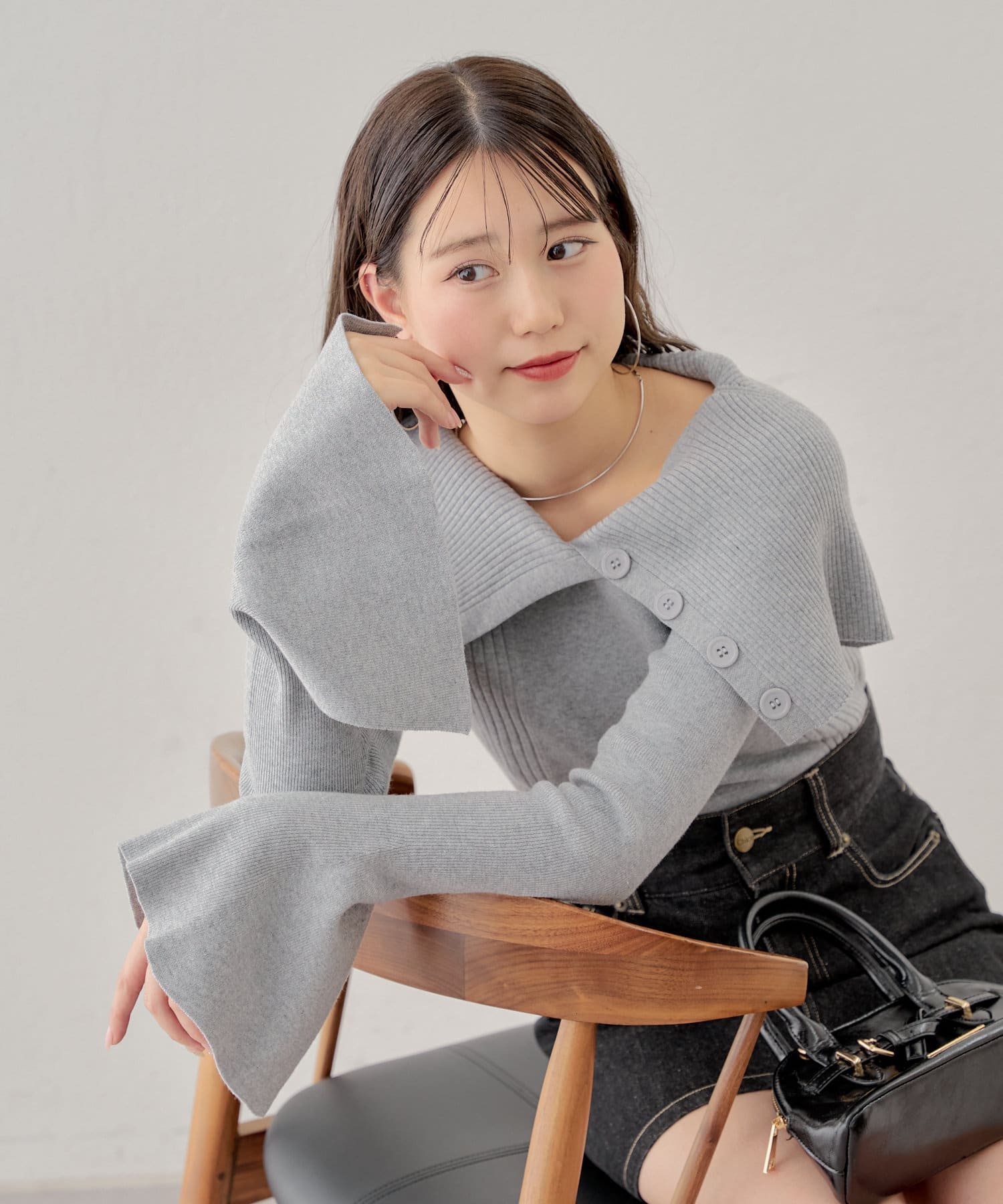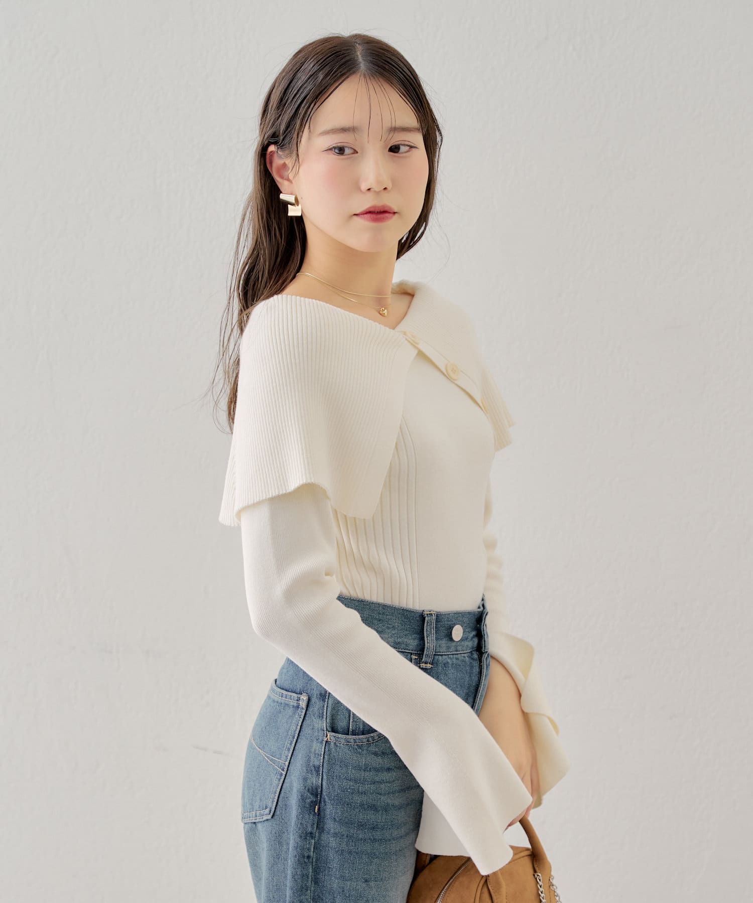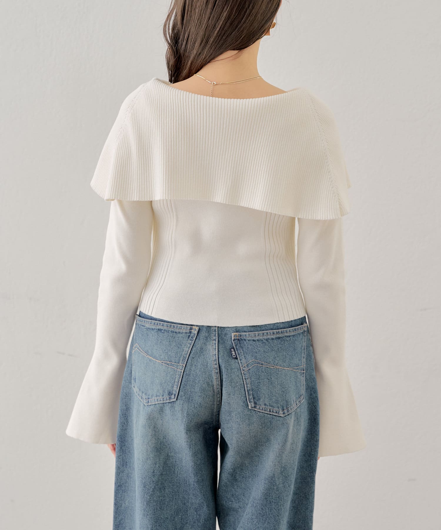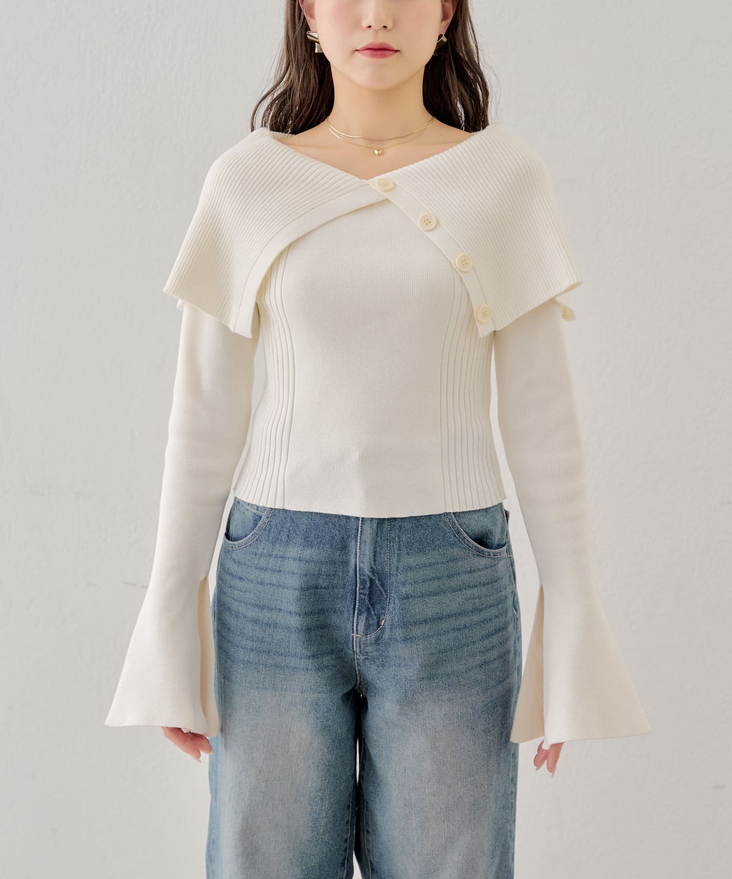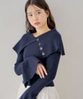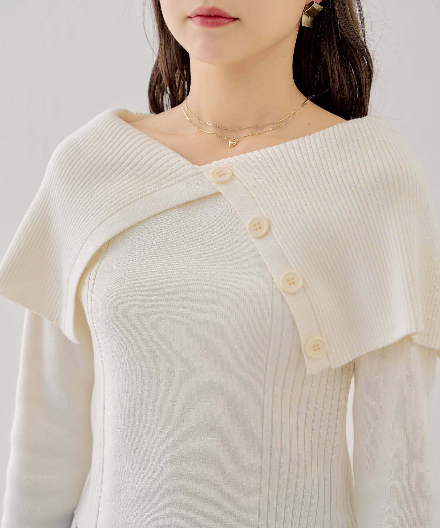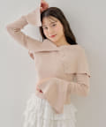 襟釦デザインビックカラーオフショルリブニット