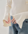 ・袖口にかけてフレアになっており女性らしい上品なシルエットのトップスです。