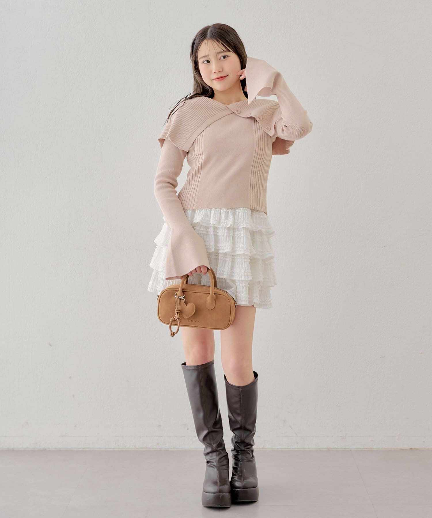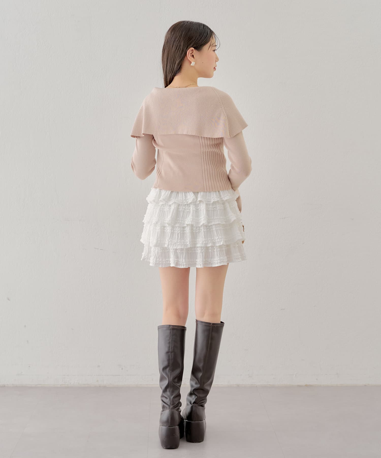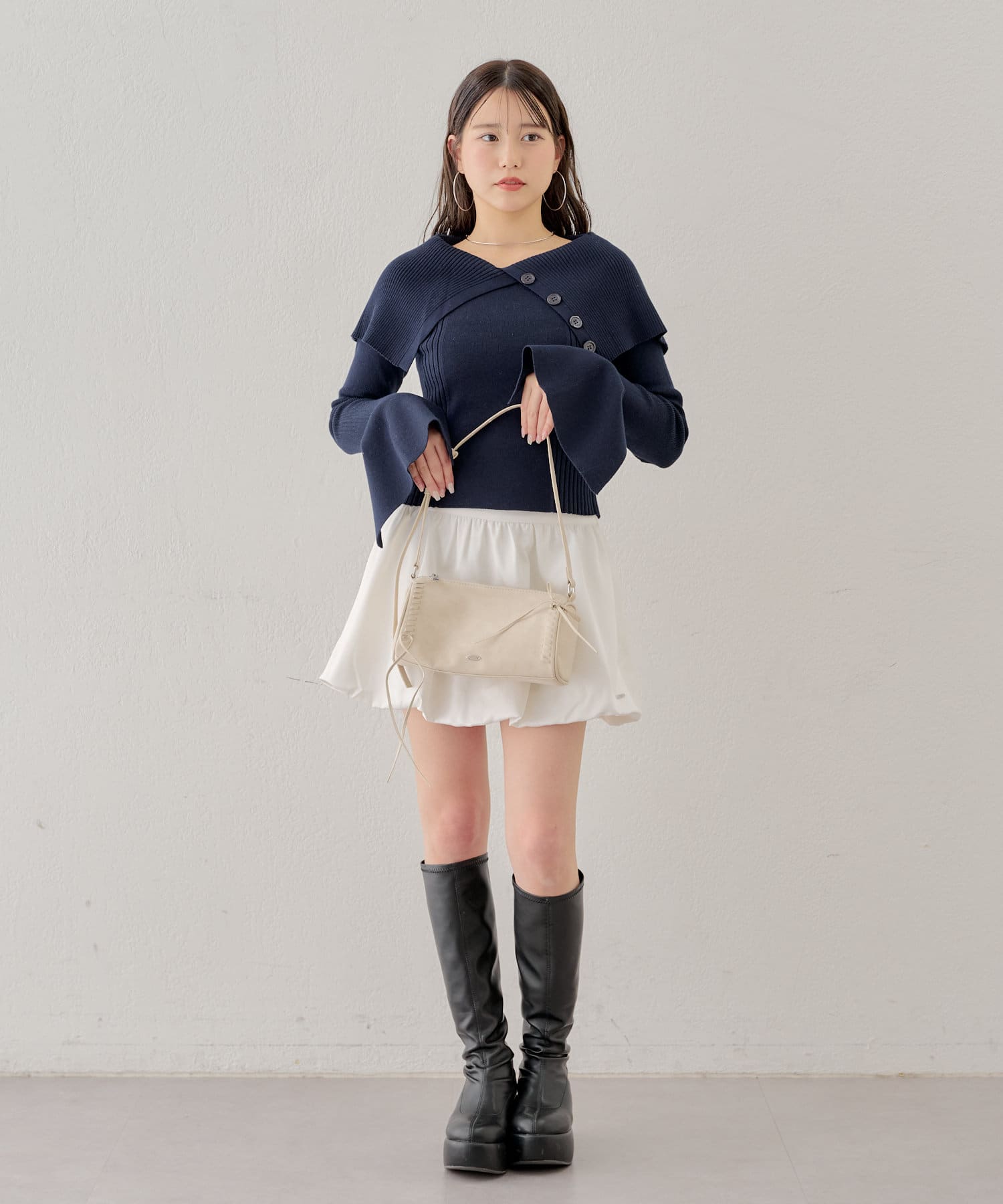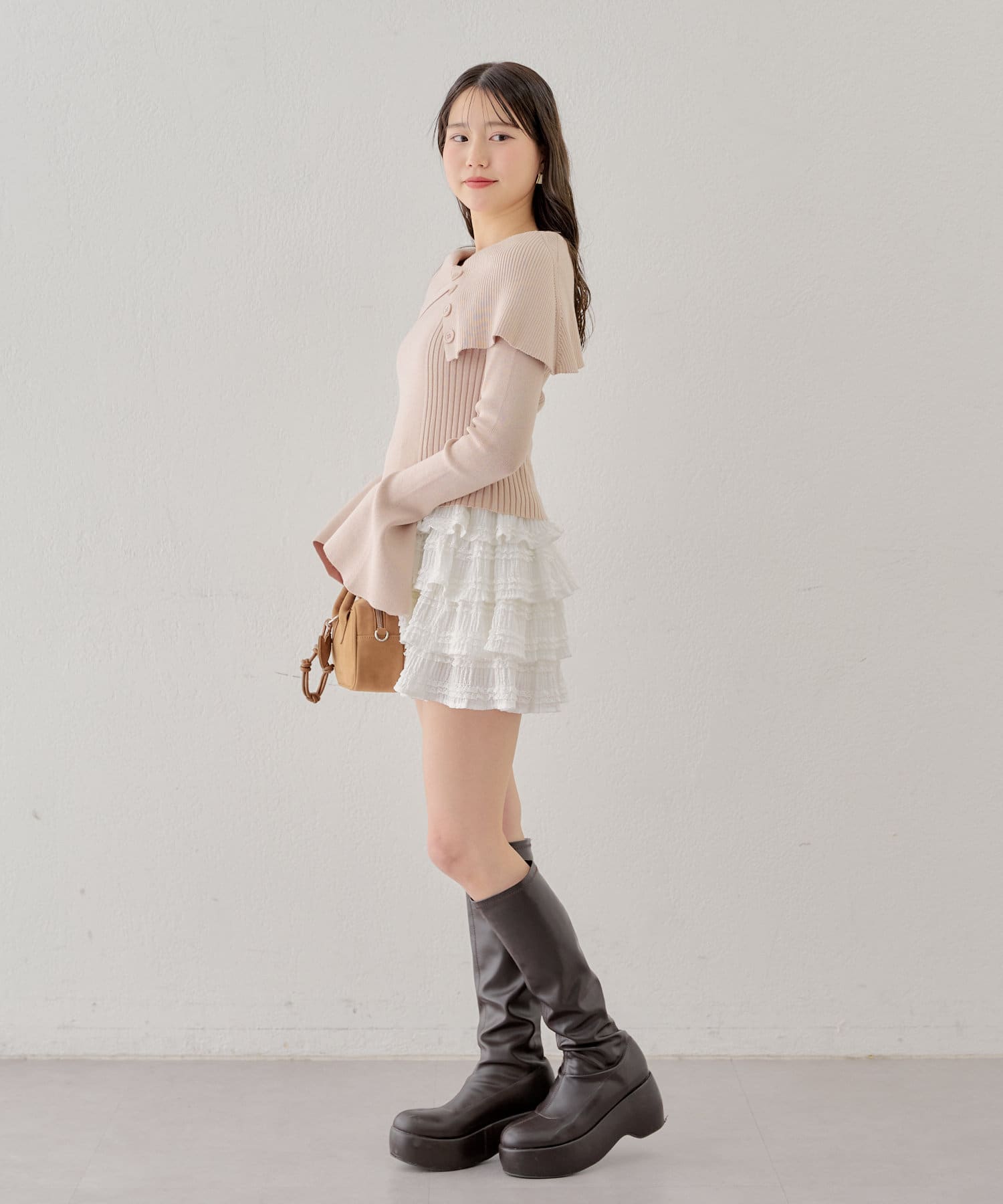 ・スカートやミニボトムと合わせるとより女性らしさの際立つコーデに◎