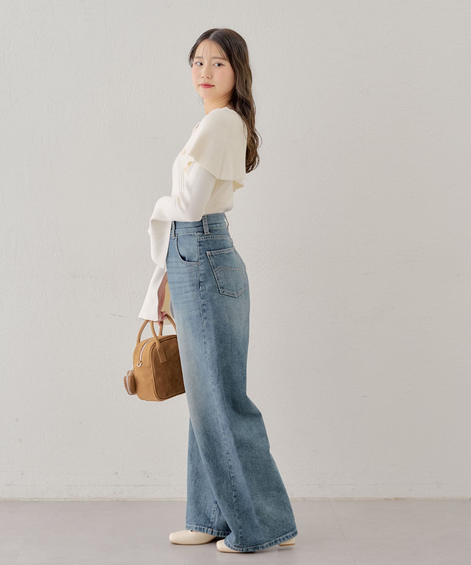 ・デニム素材のアイテムと合わせていただくとと春らしい印象に。