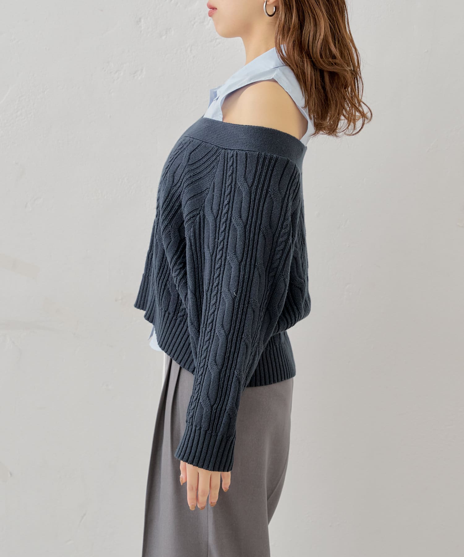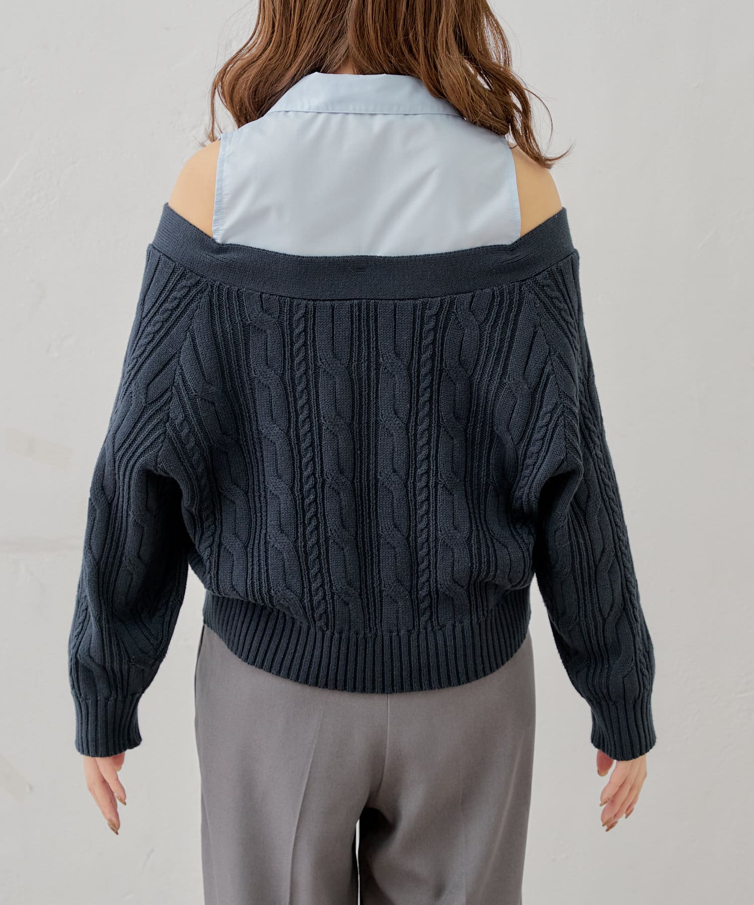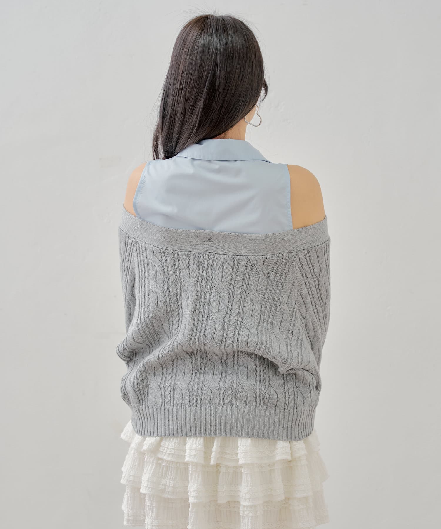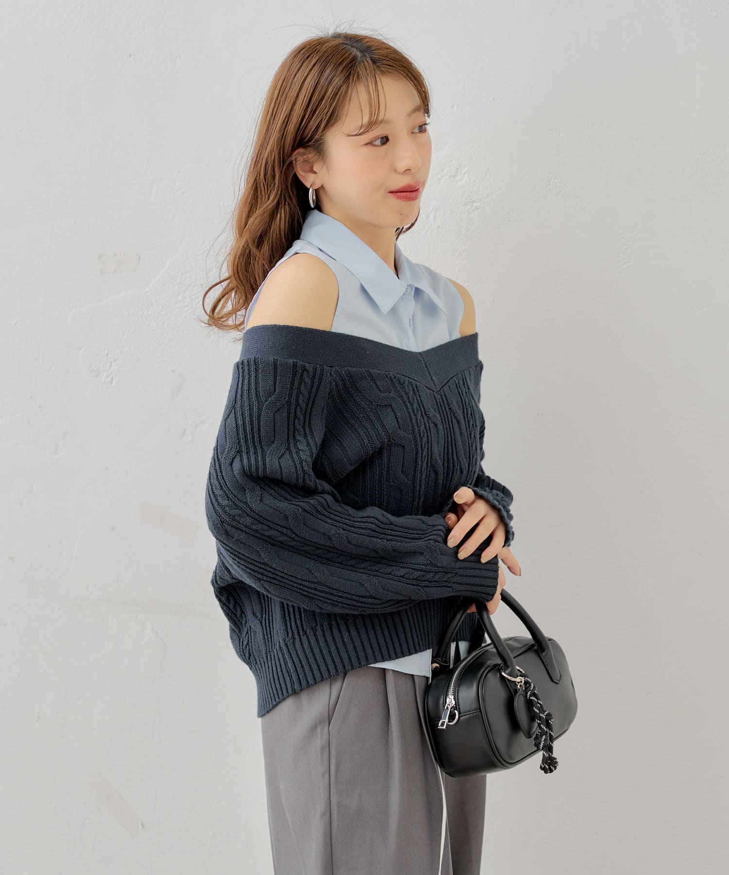 ・ニットに伸縮性がありオープンショルダーで程よく肌見せして着ていただけます。