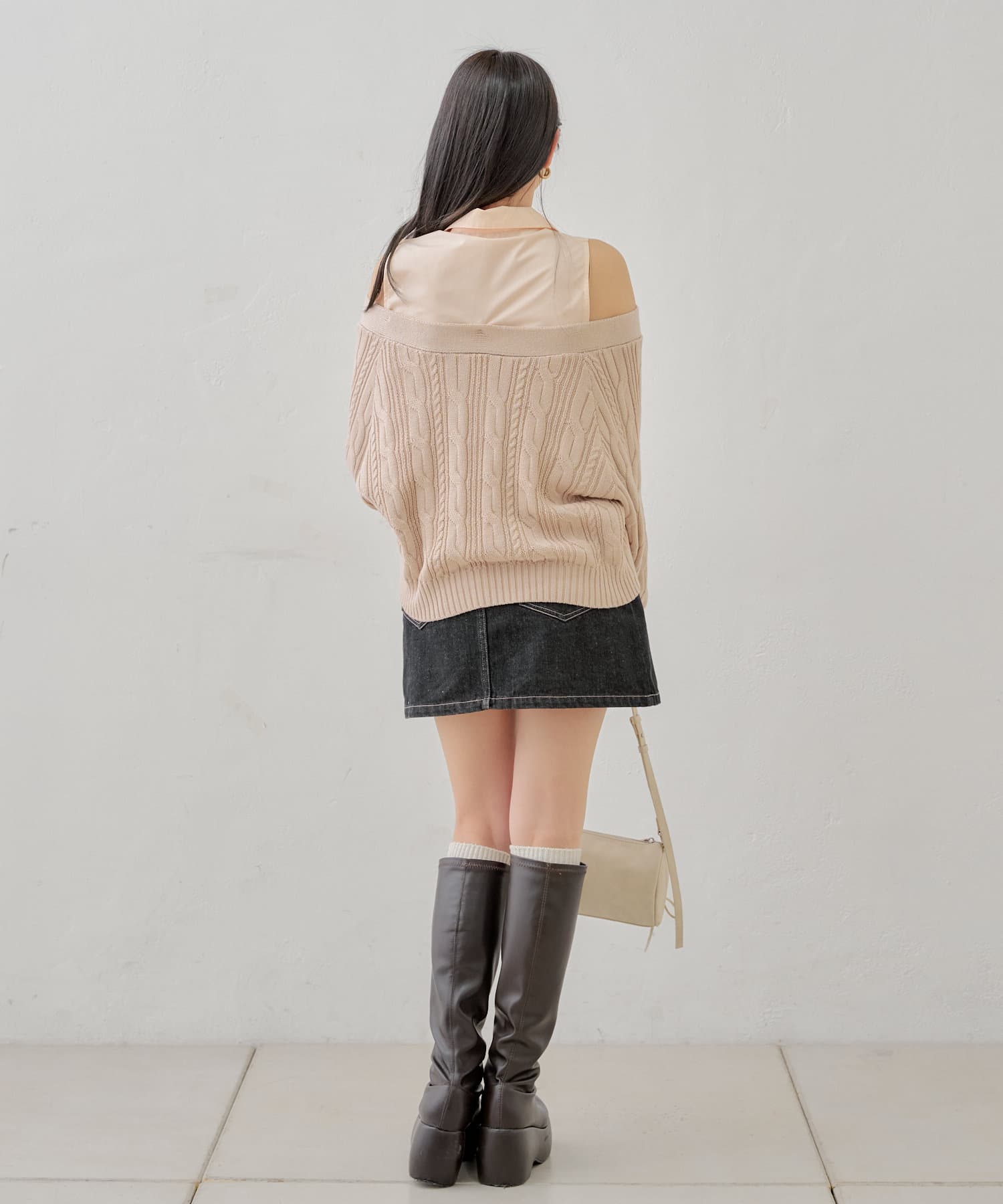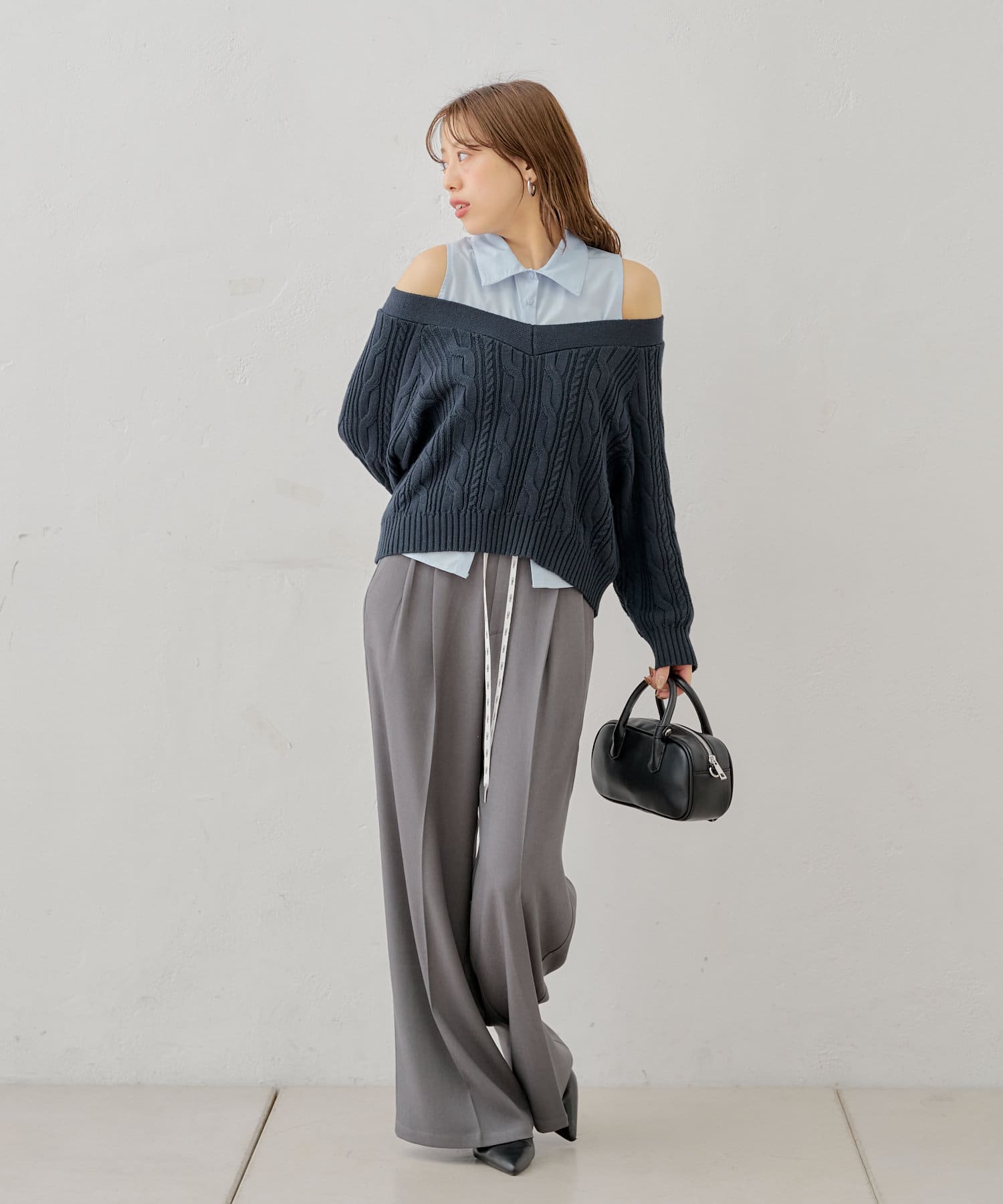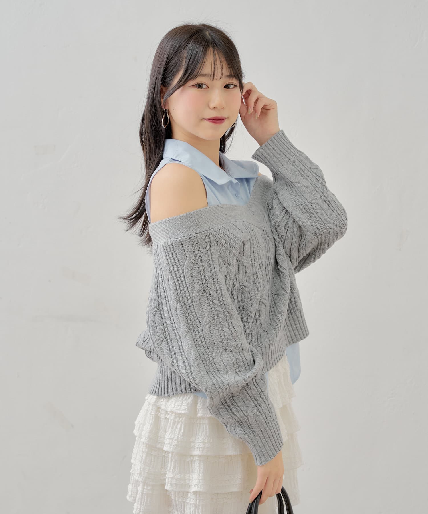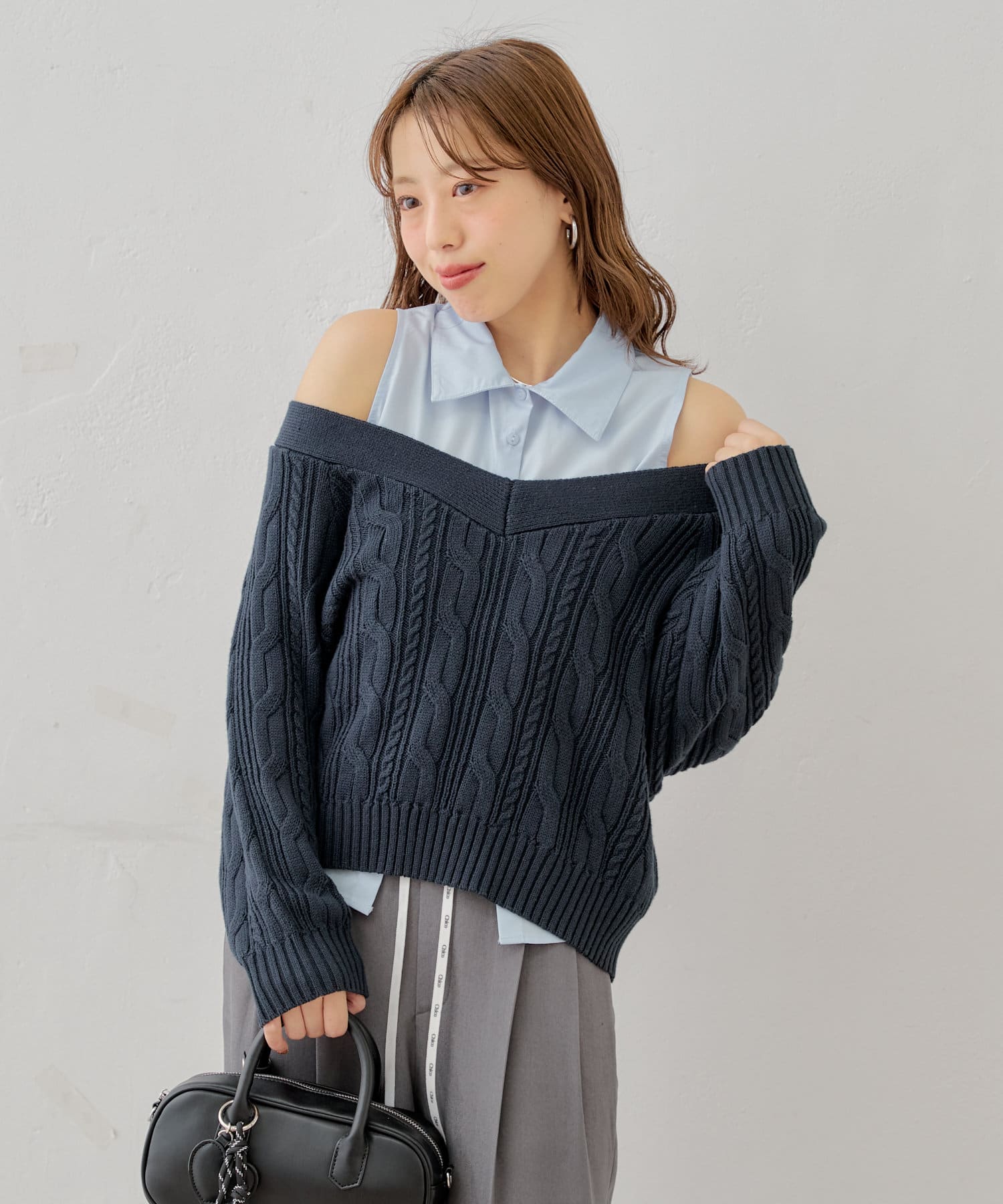 ・ニットに伸縮性がありオープンショルダーで程よく肌見せして着ていただけます。