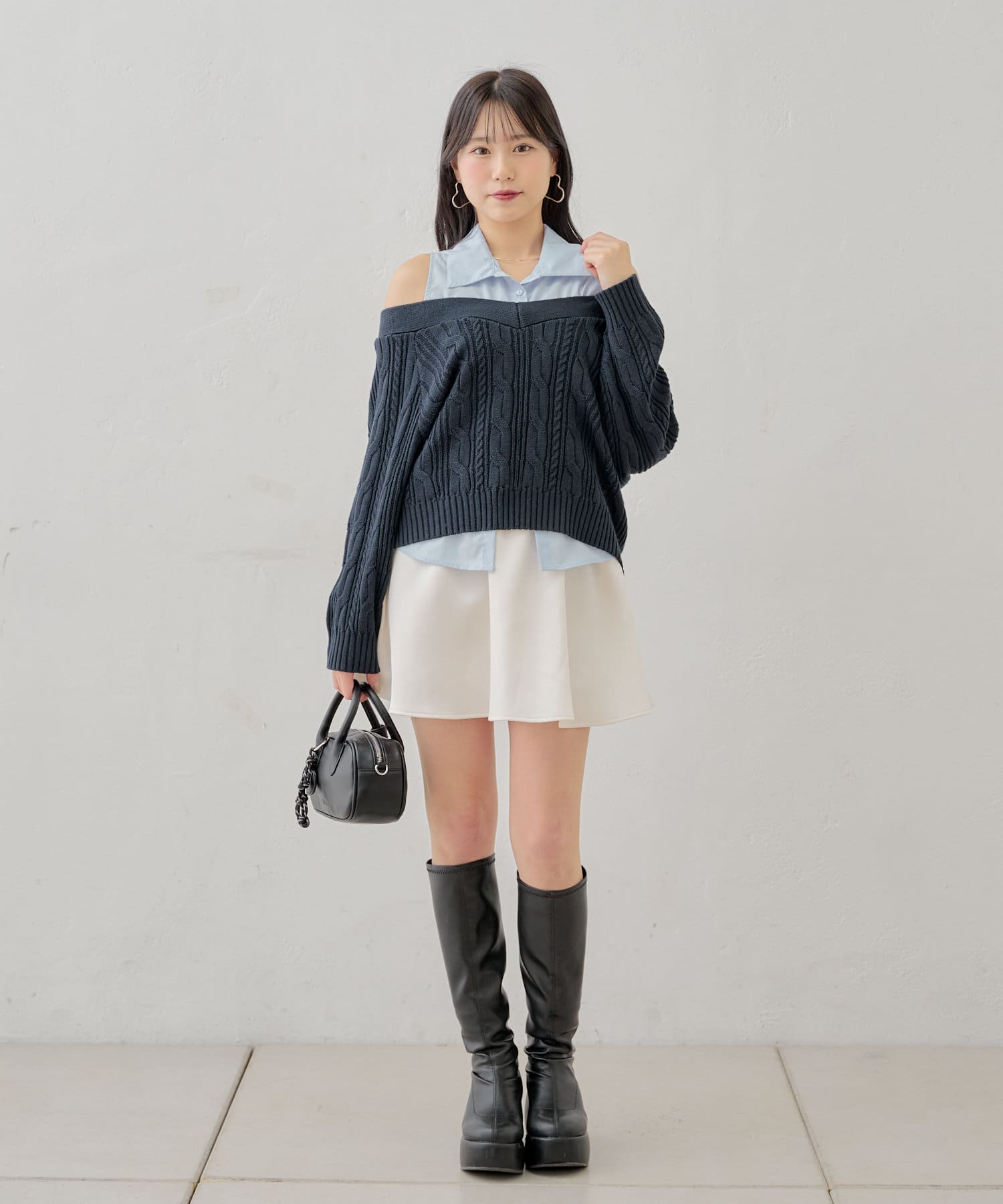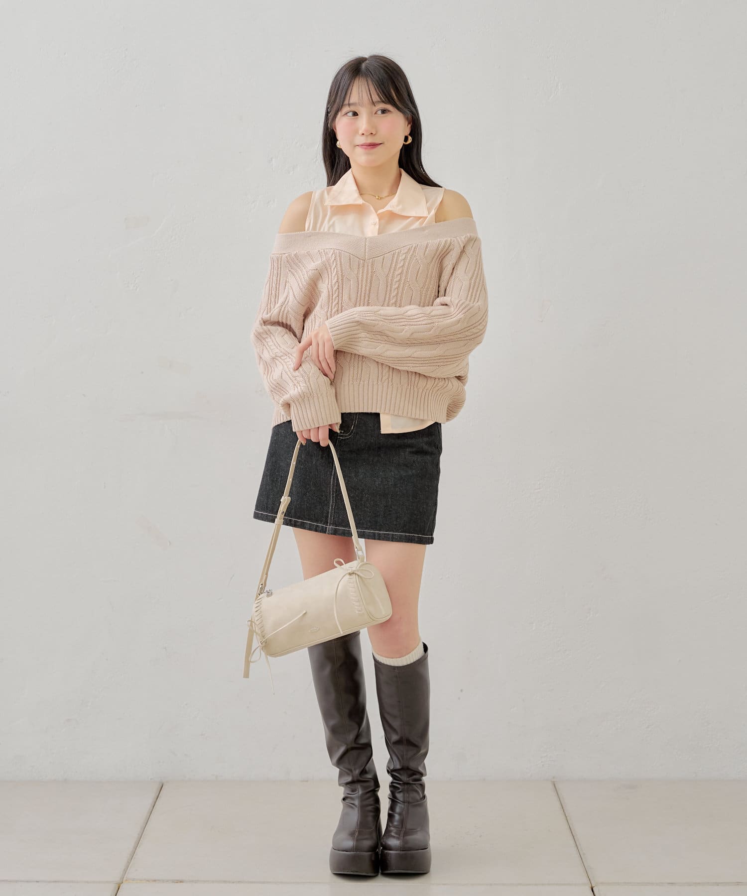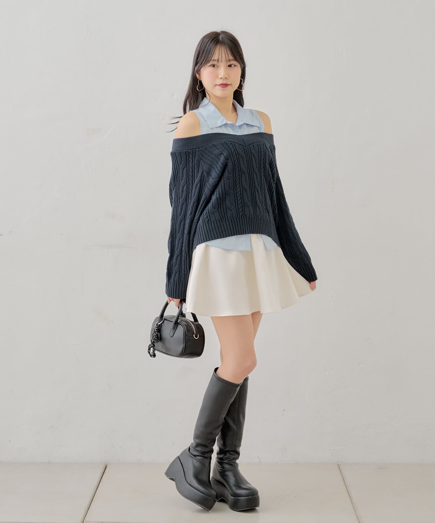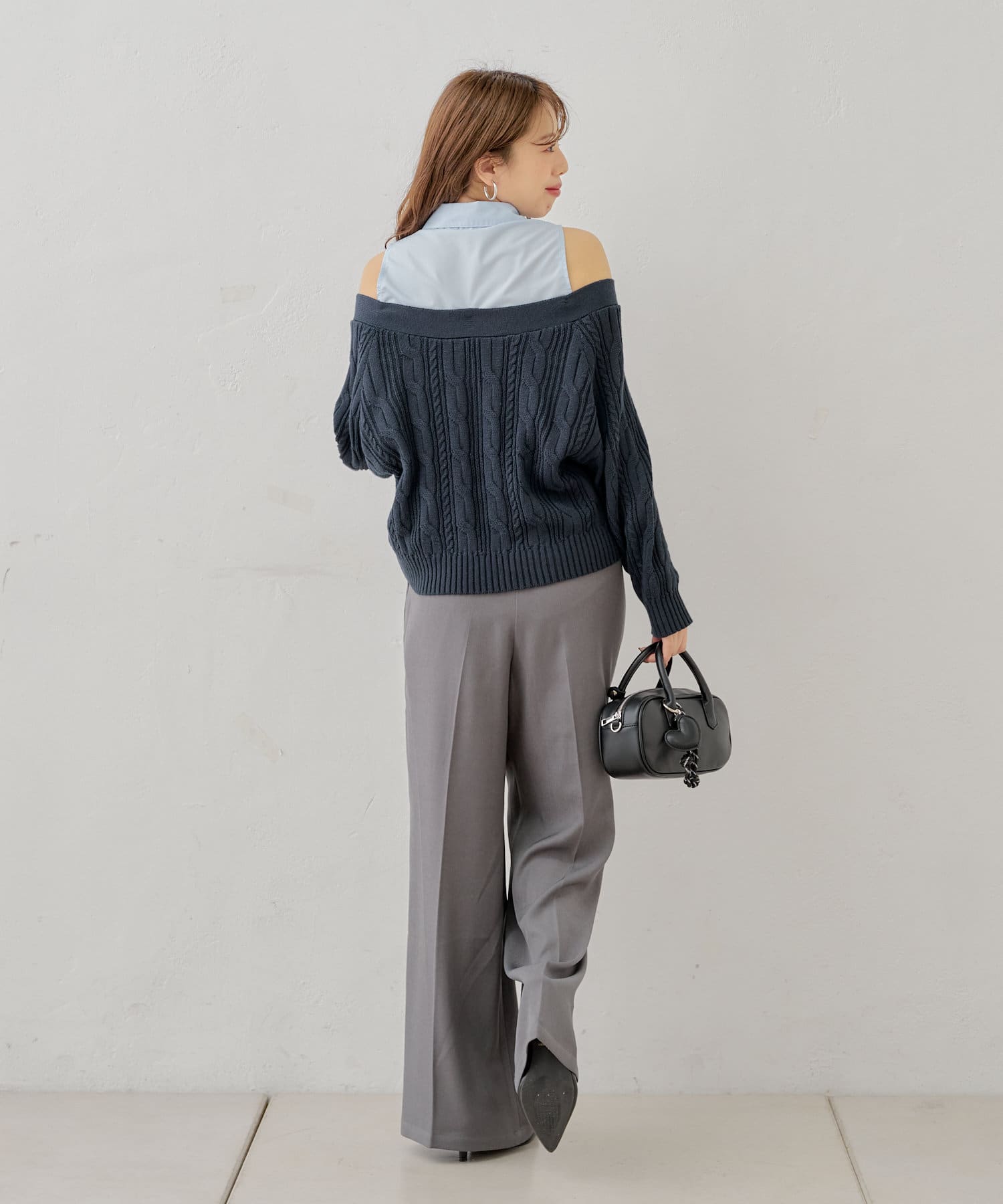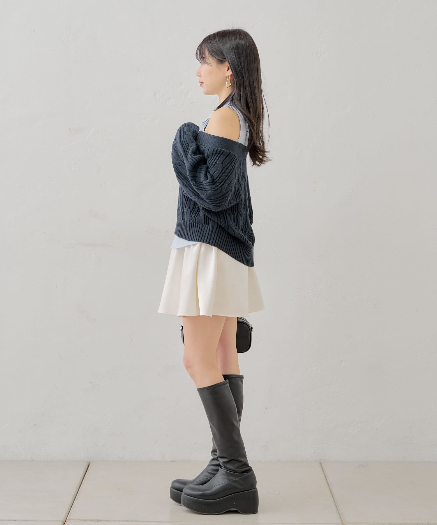 ・ニットに伸縮性がありオープンショルダーで程よく肌見せして着ていただけます。