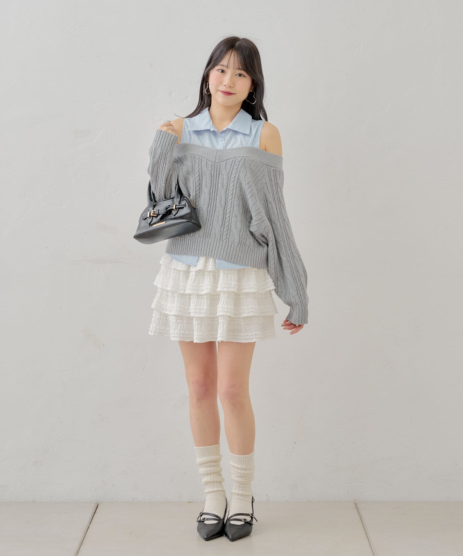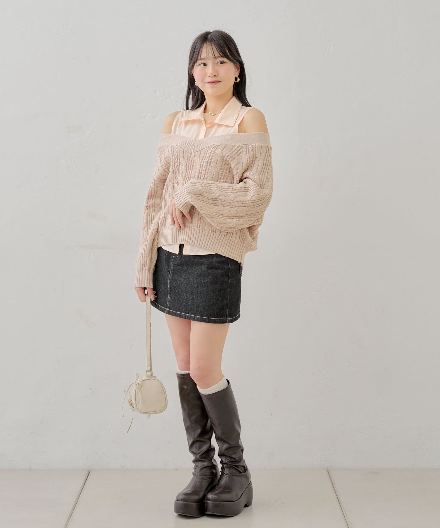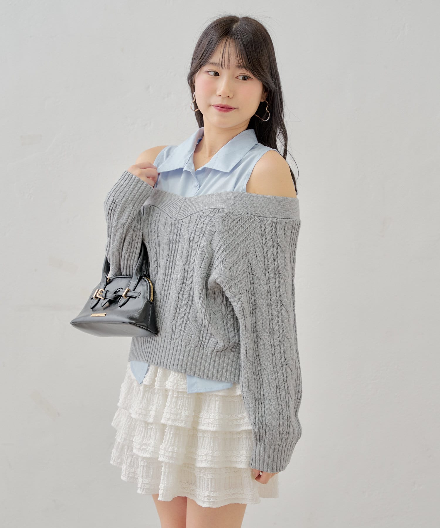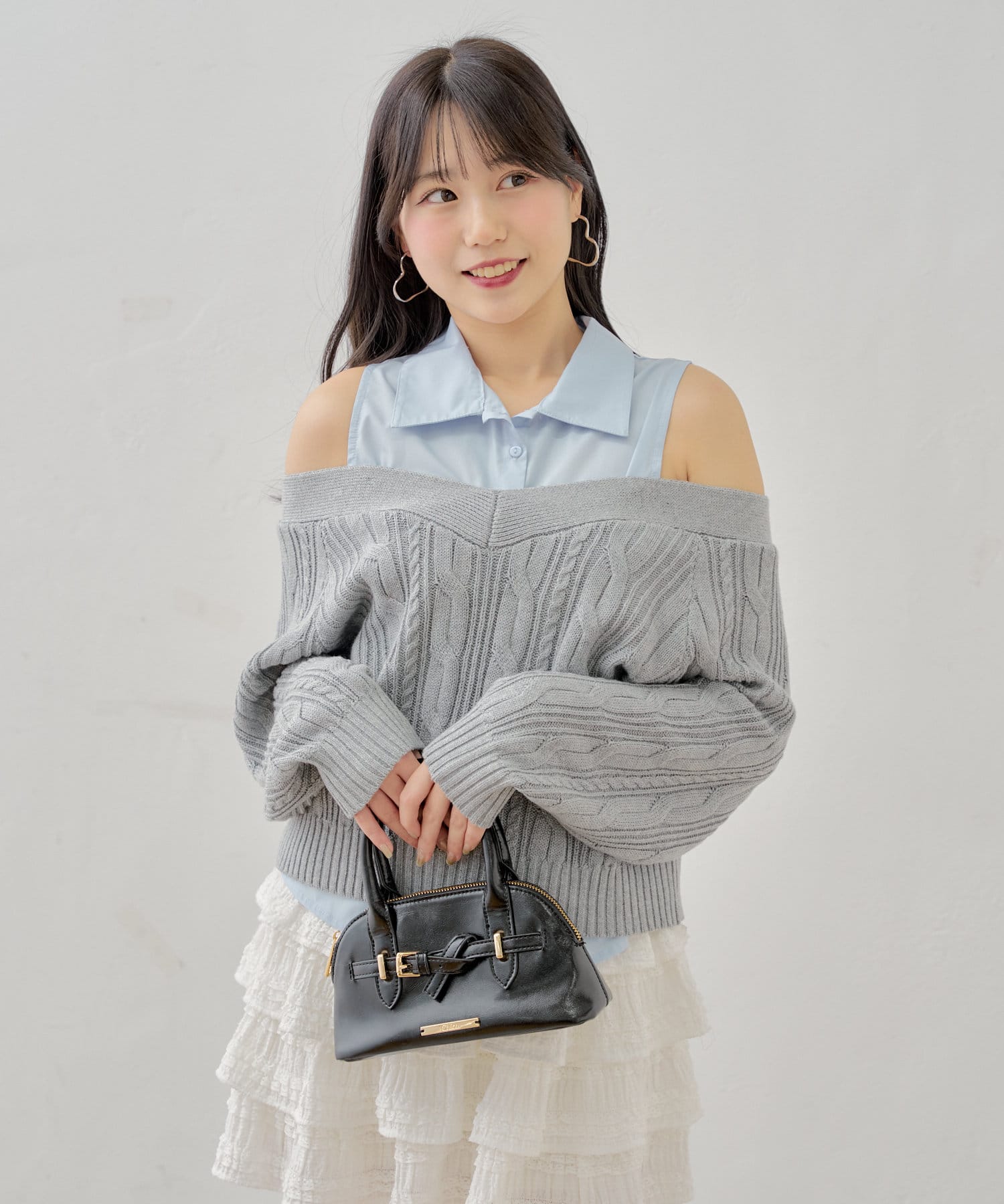 ・ニットに伸縮性がありオープンショルダーで程よく肌見せして着ていただけます。