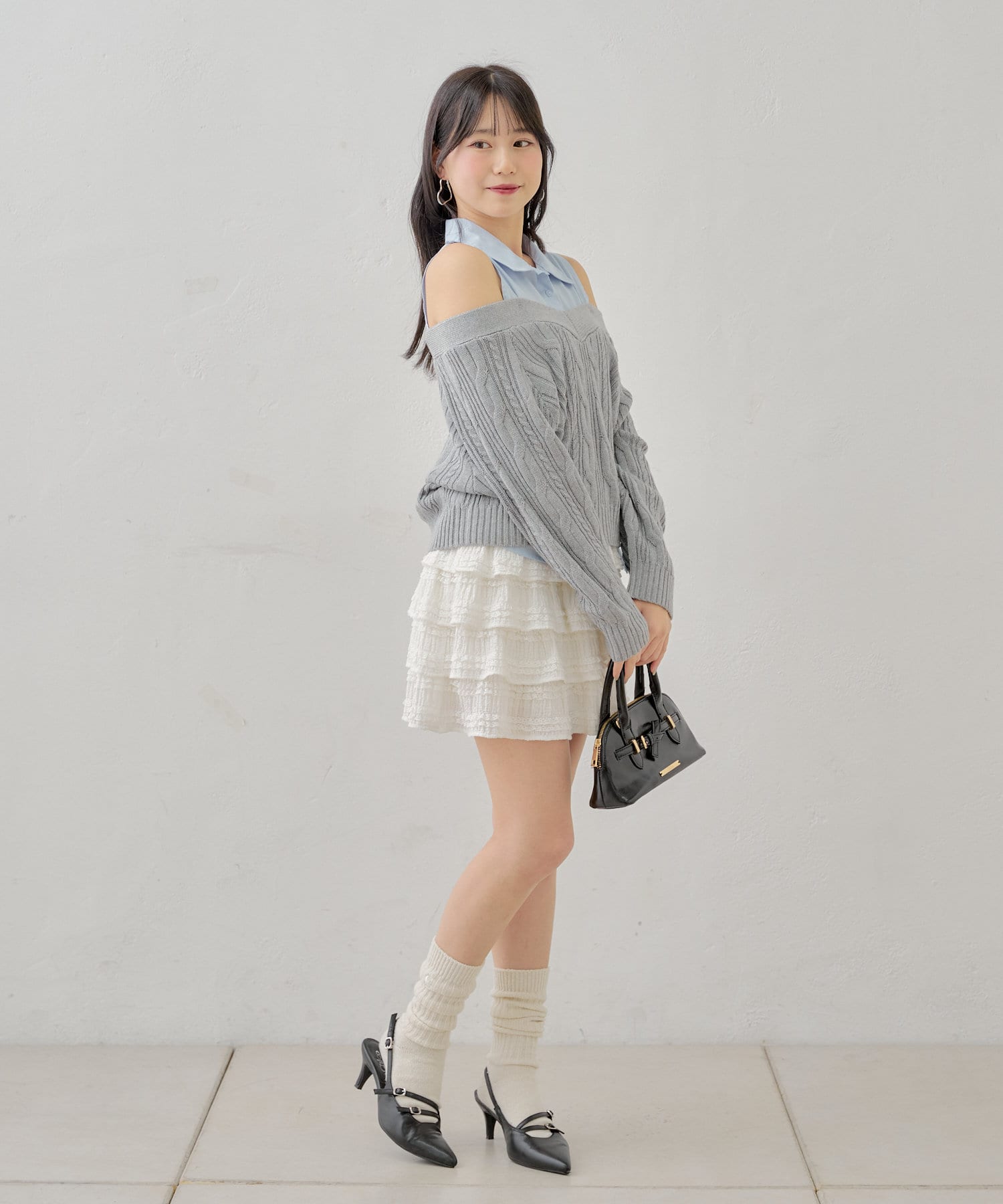 ・ロング丈のボトムス合わせで女性らしいフェミニンスタイルにも。