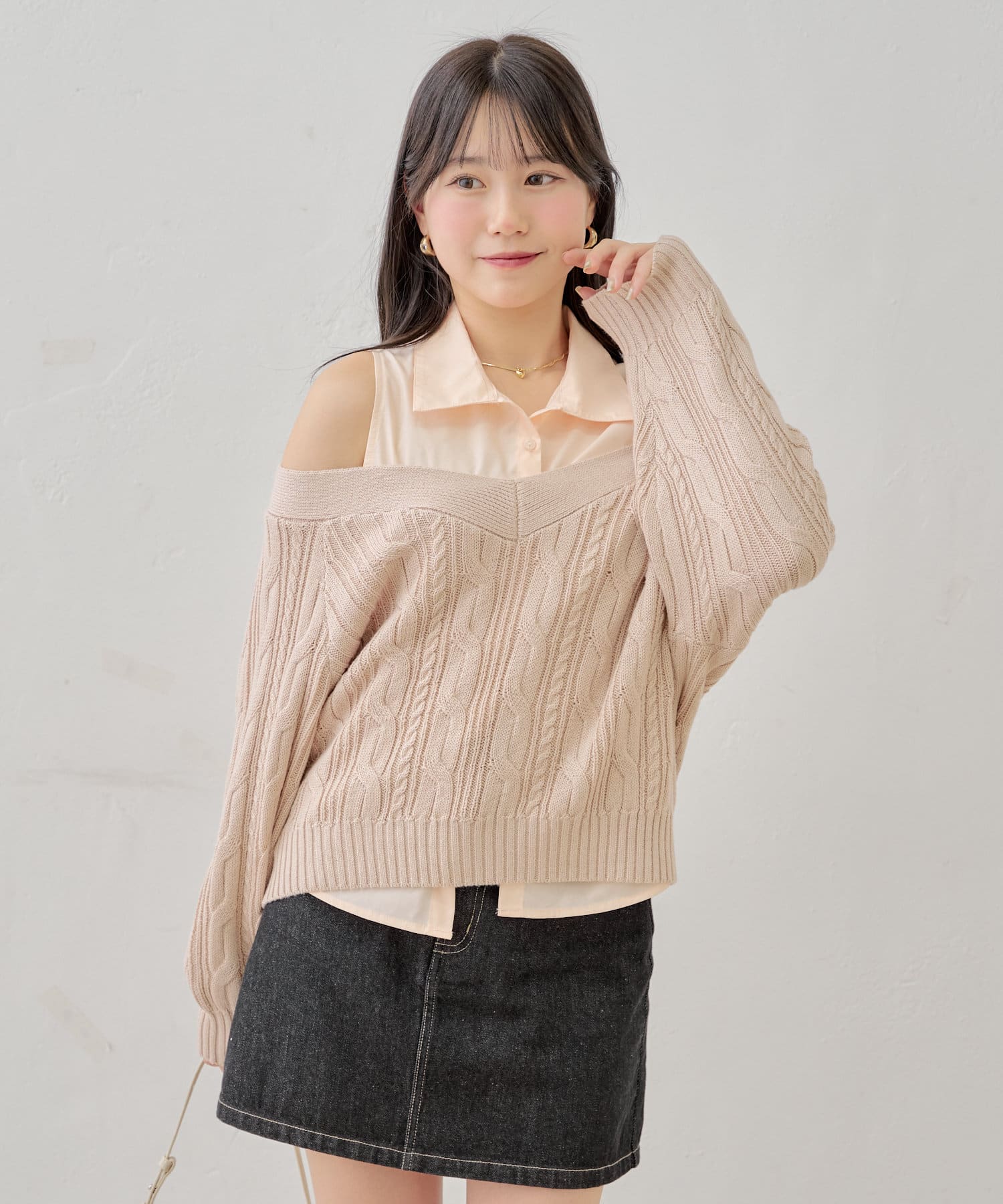 レイヤードデザインの大人カジュアルなデザインニット登場