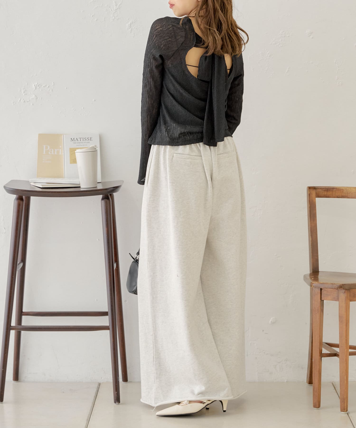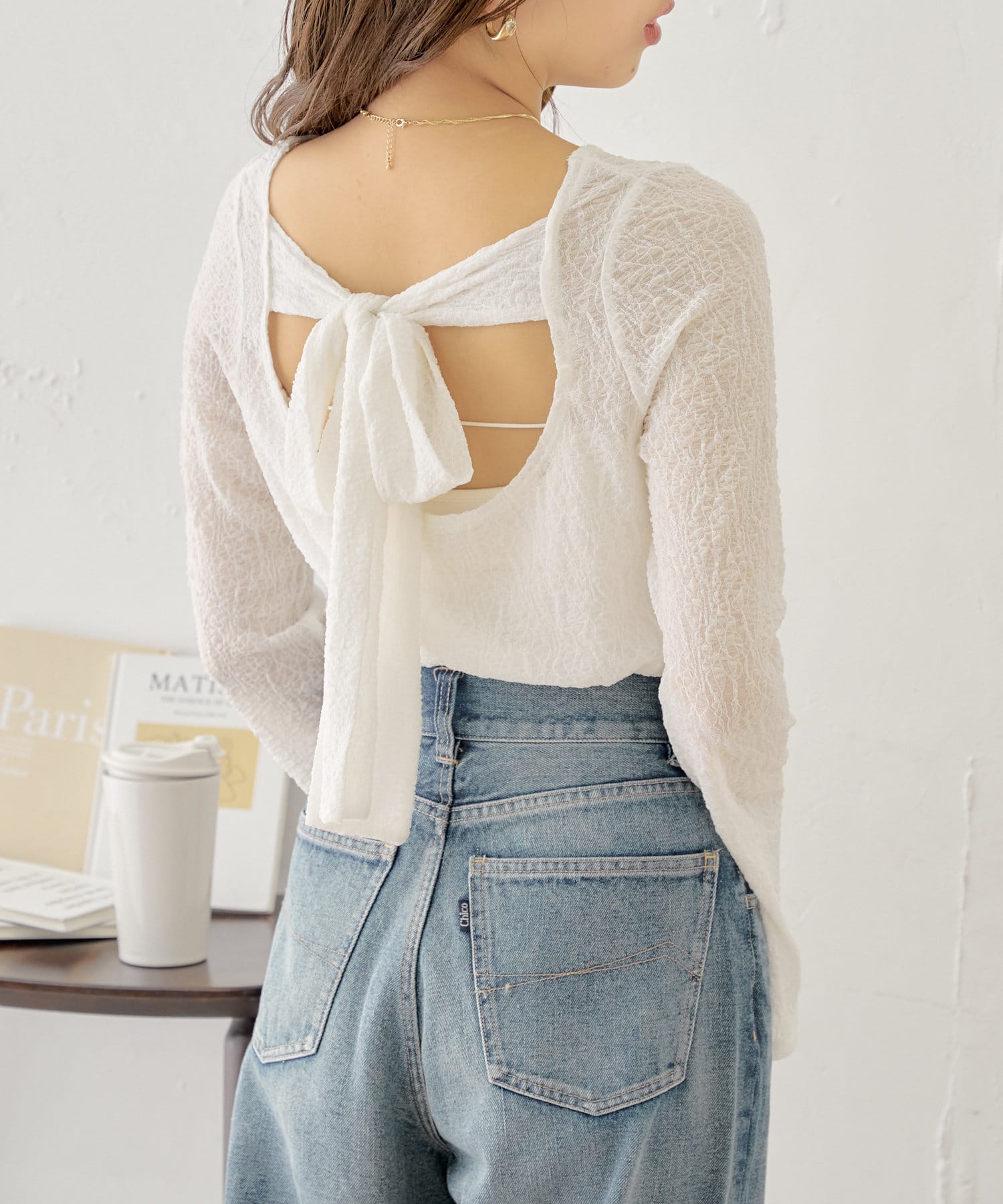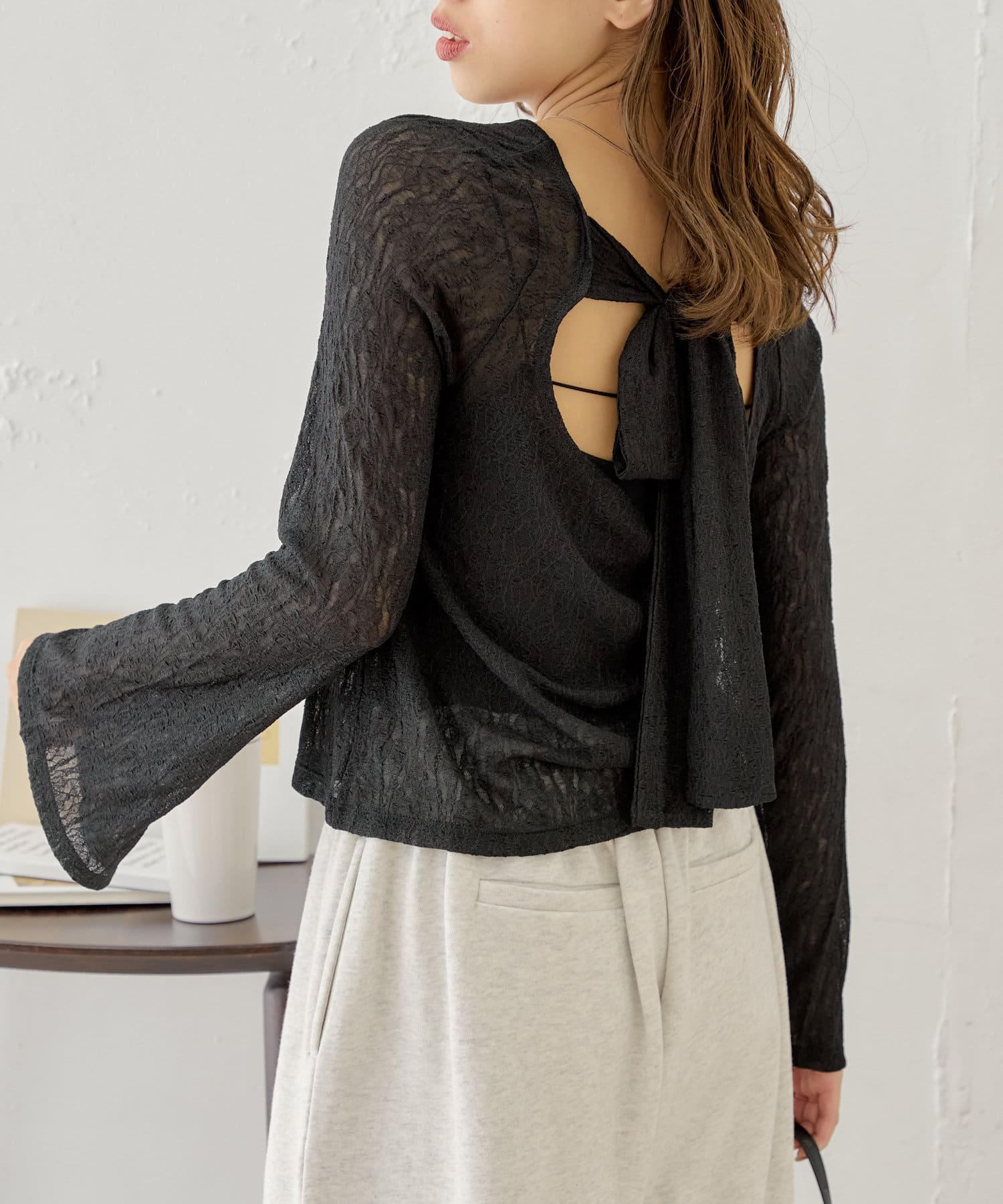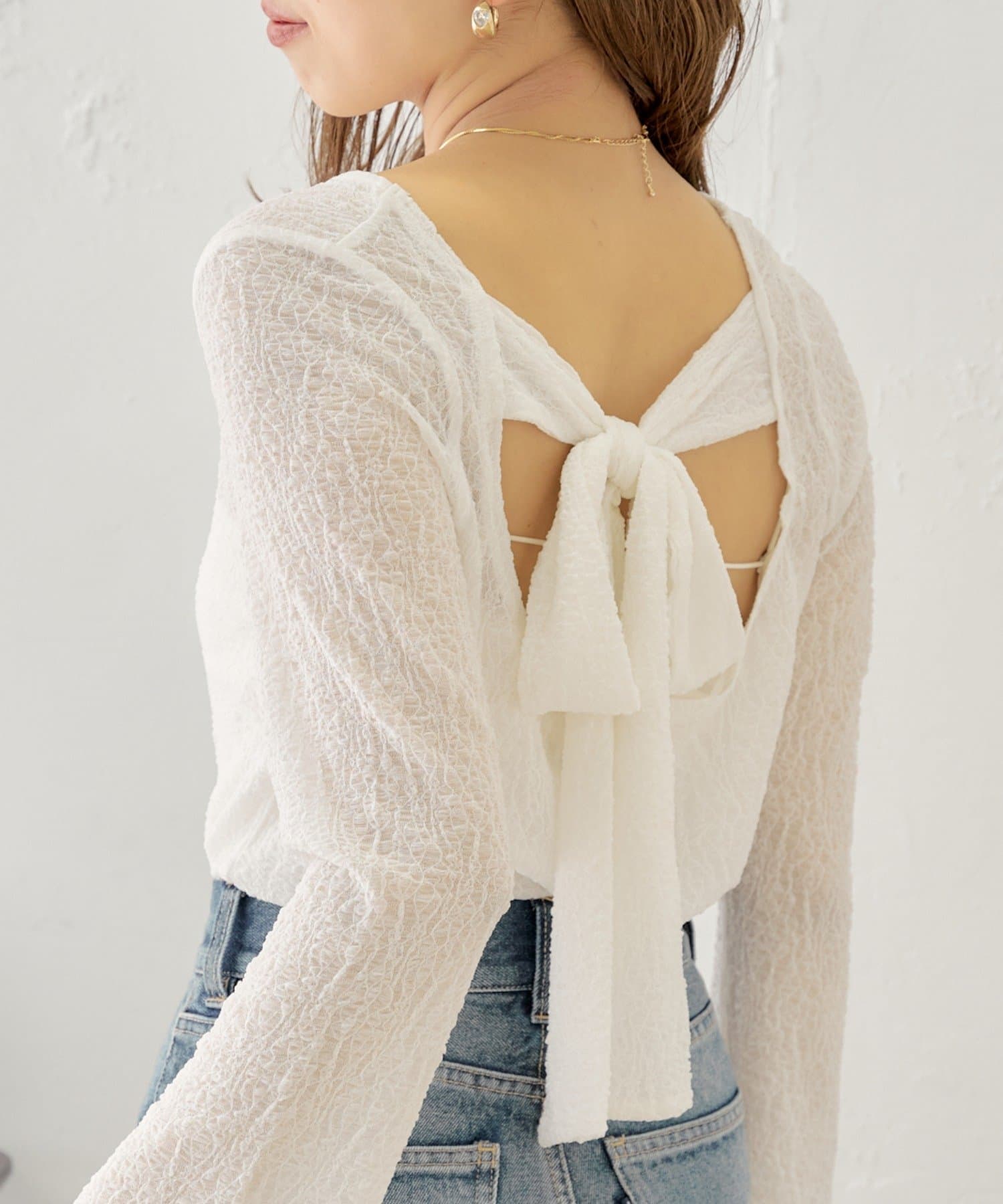 ・バックリボンデザインで程よく肌見せが叶う女っぽトップス。