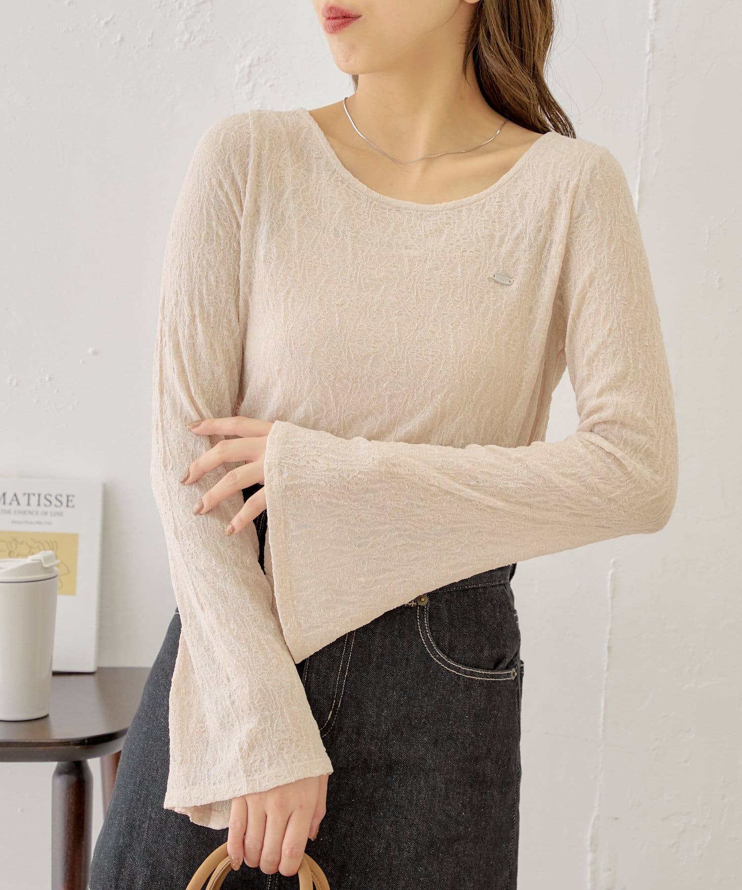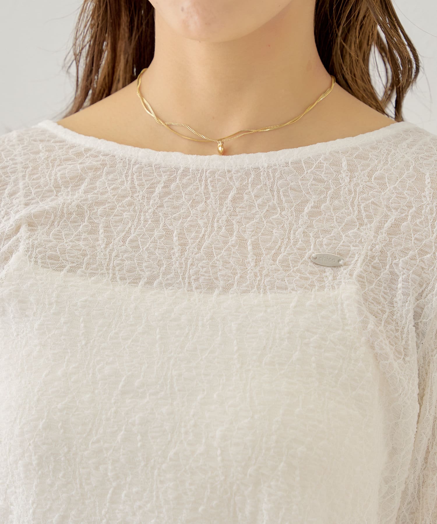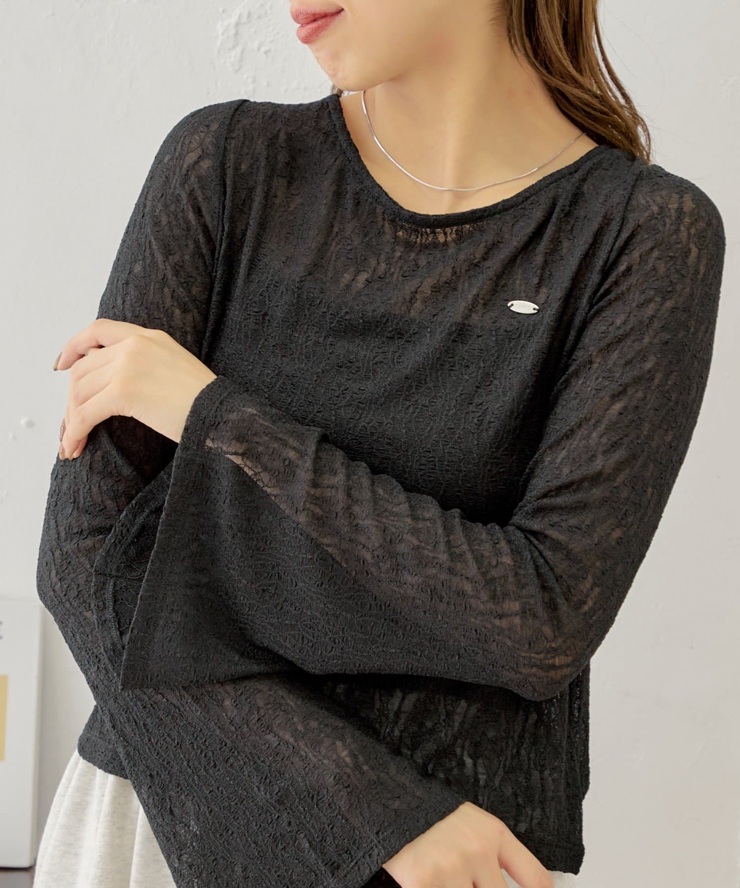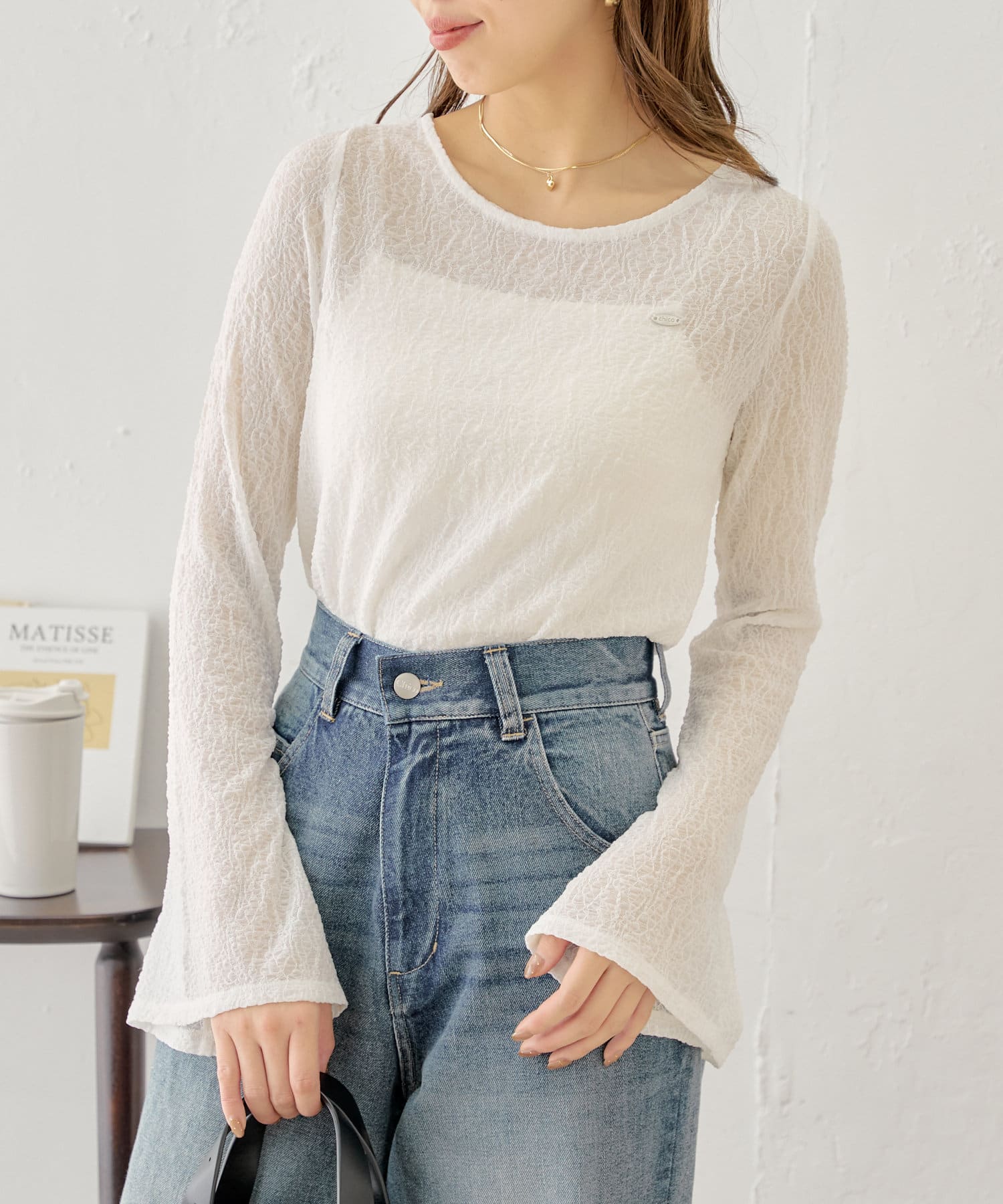 ・キャミソールはカップ付きなのでシアー素材のアイテムと合わせても下着が透ける心配なく着ていただけます。