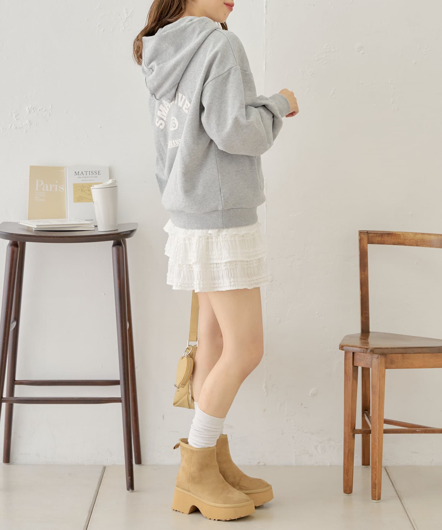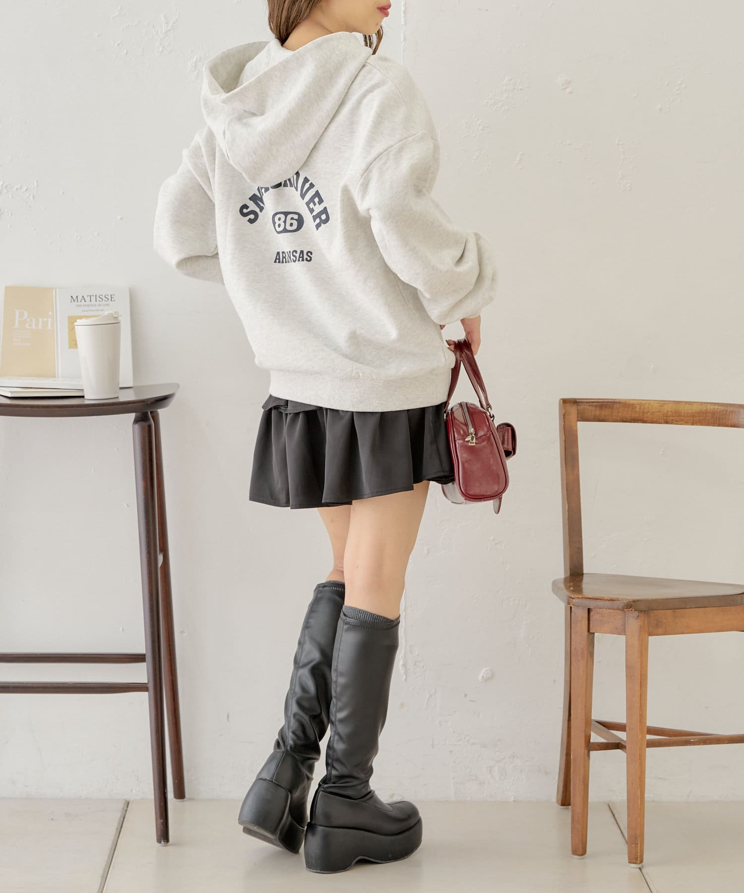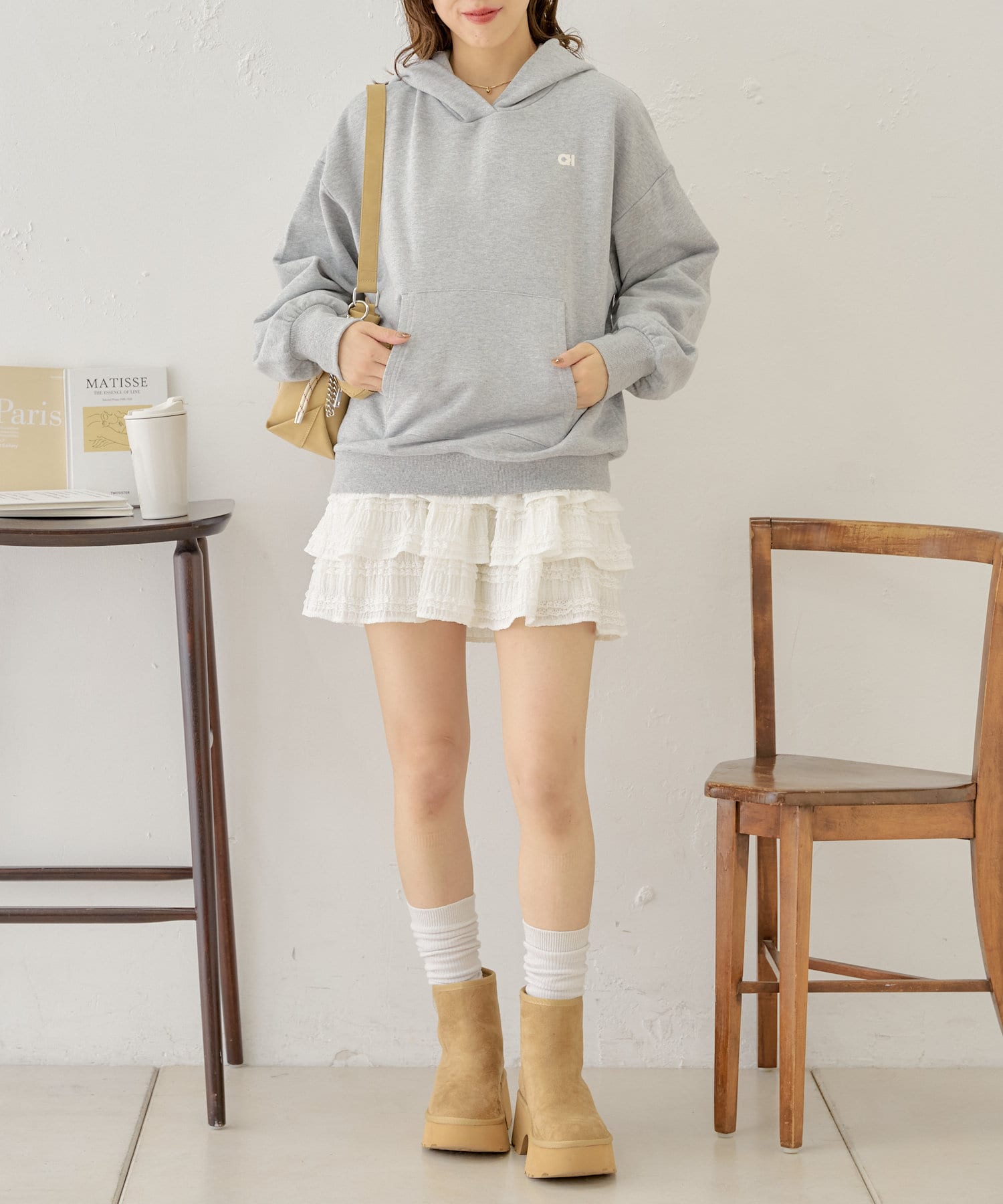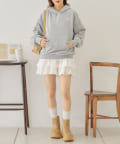 ・ルーズな丈感のトップスなのでミニ丈のボトムスと合わせていただくのがおすすめです。