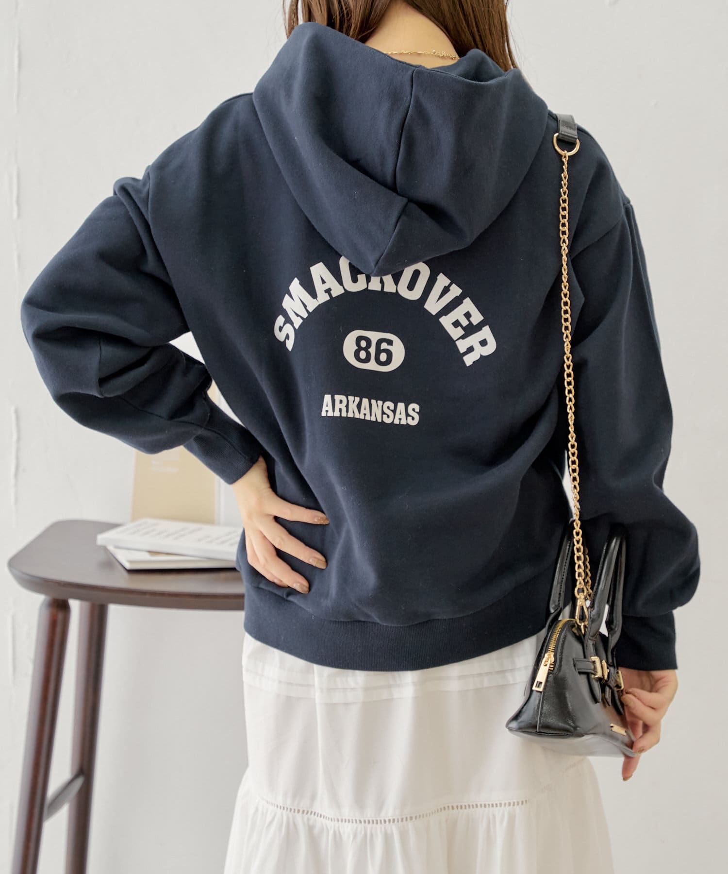 ・バックプリントのベーシックなカラーのスウェットパーカーです。