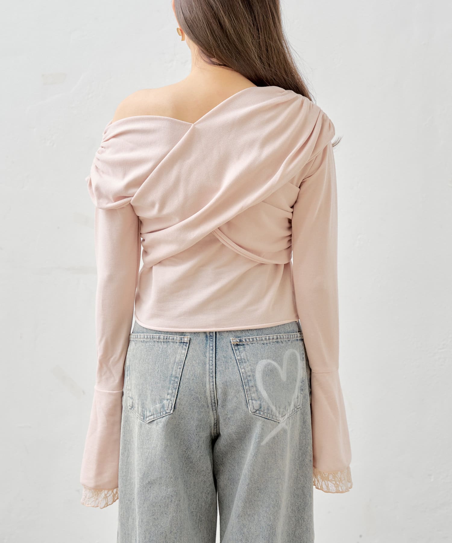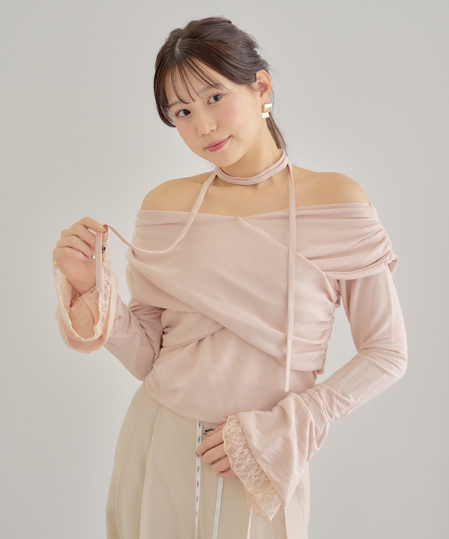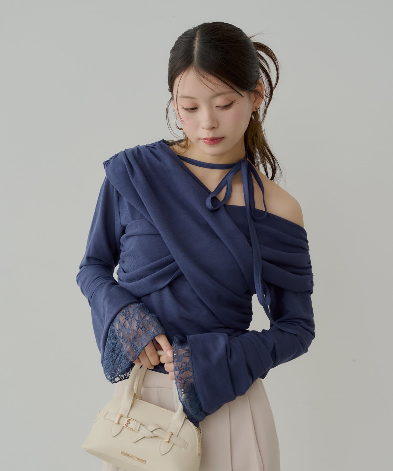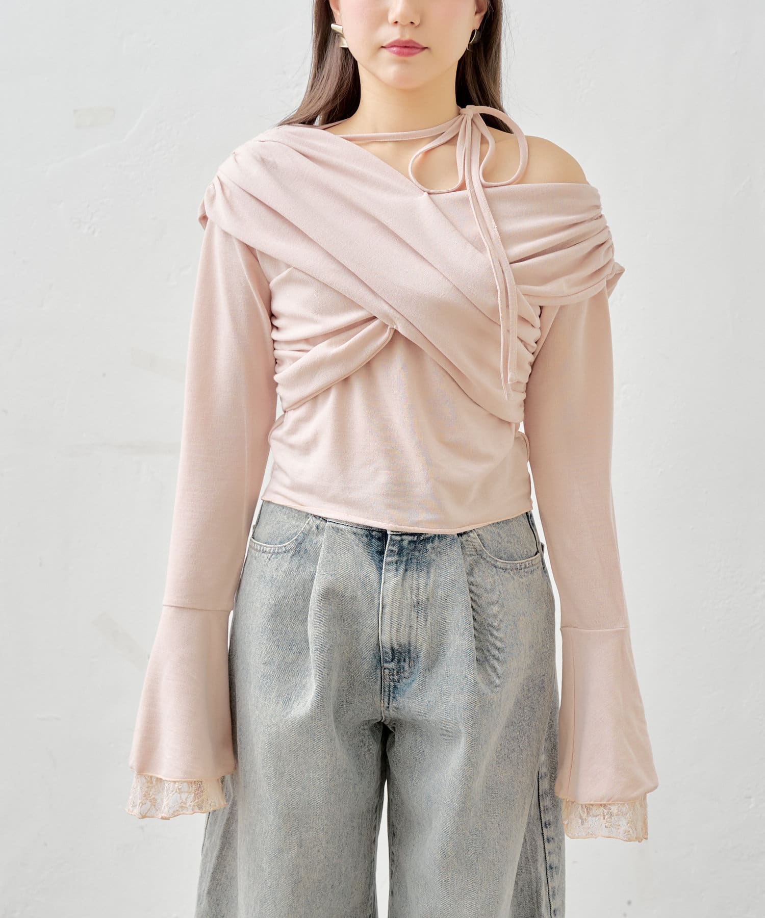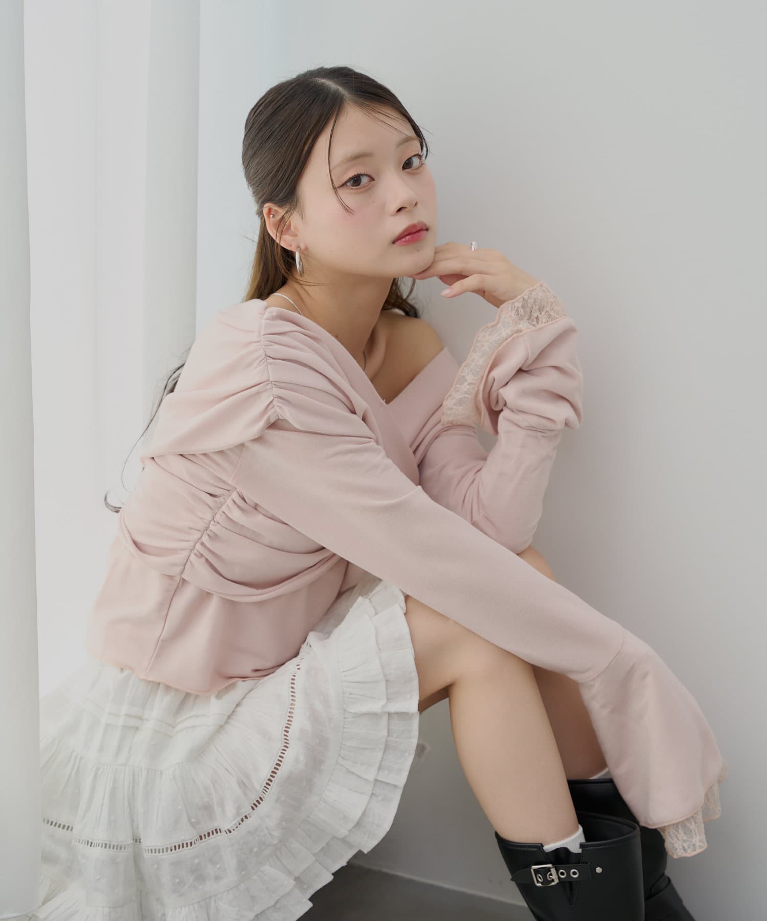 ・デコルテの肌見せやクロスデザイン、袖のフレアやレースなど女性らしさの詰まったトップスです。