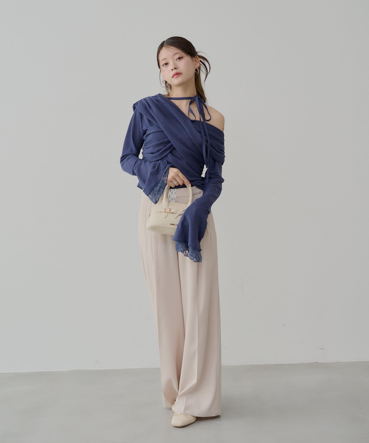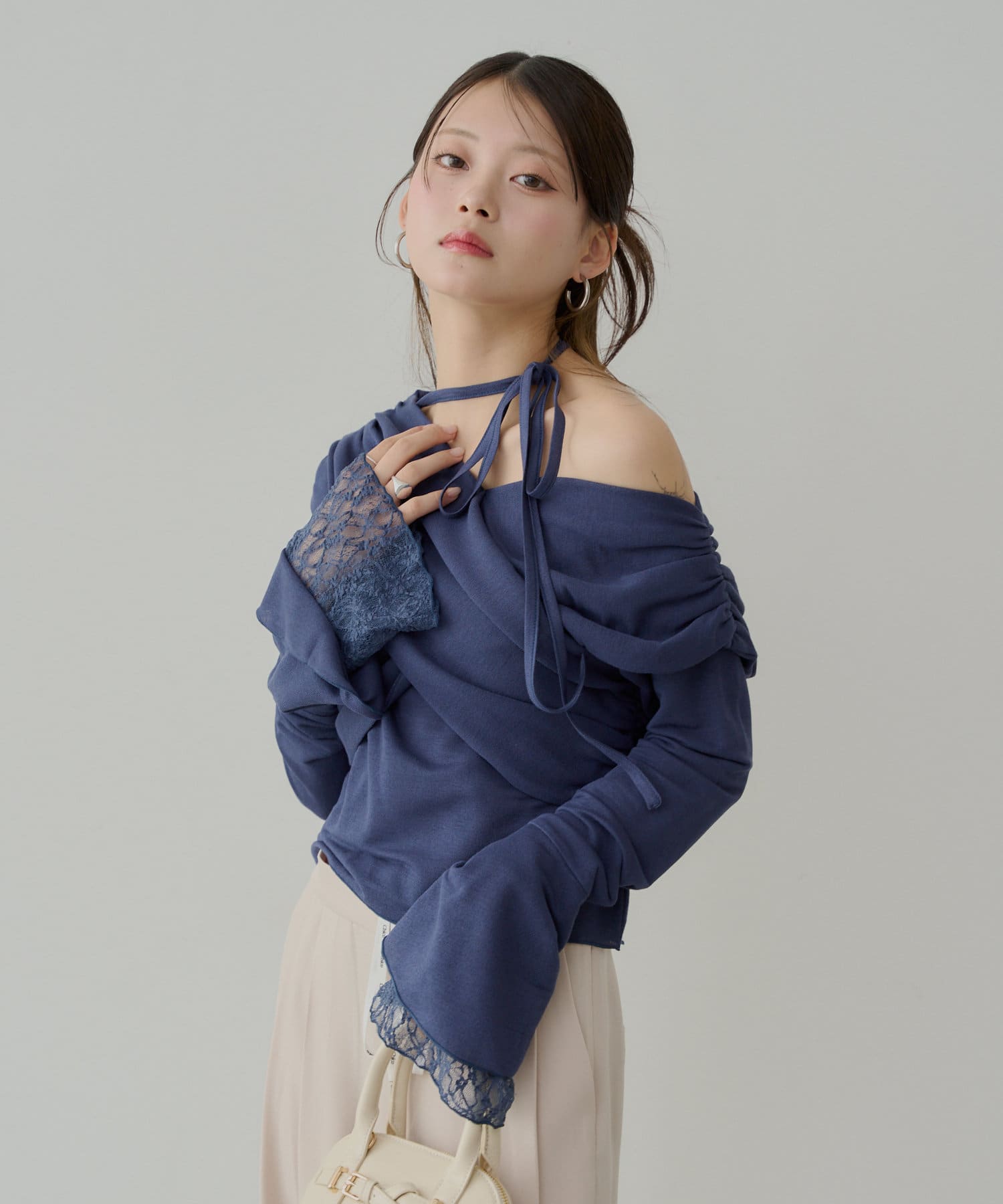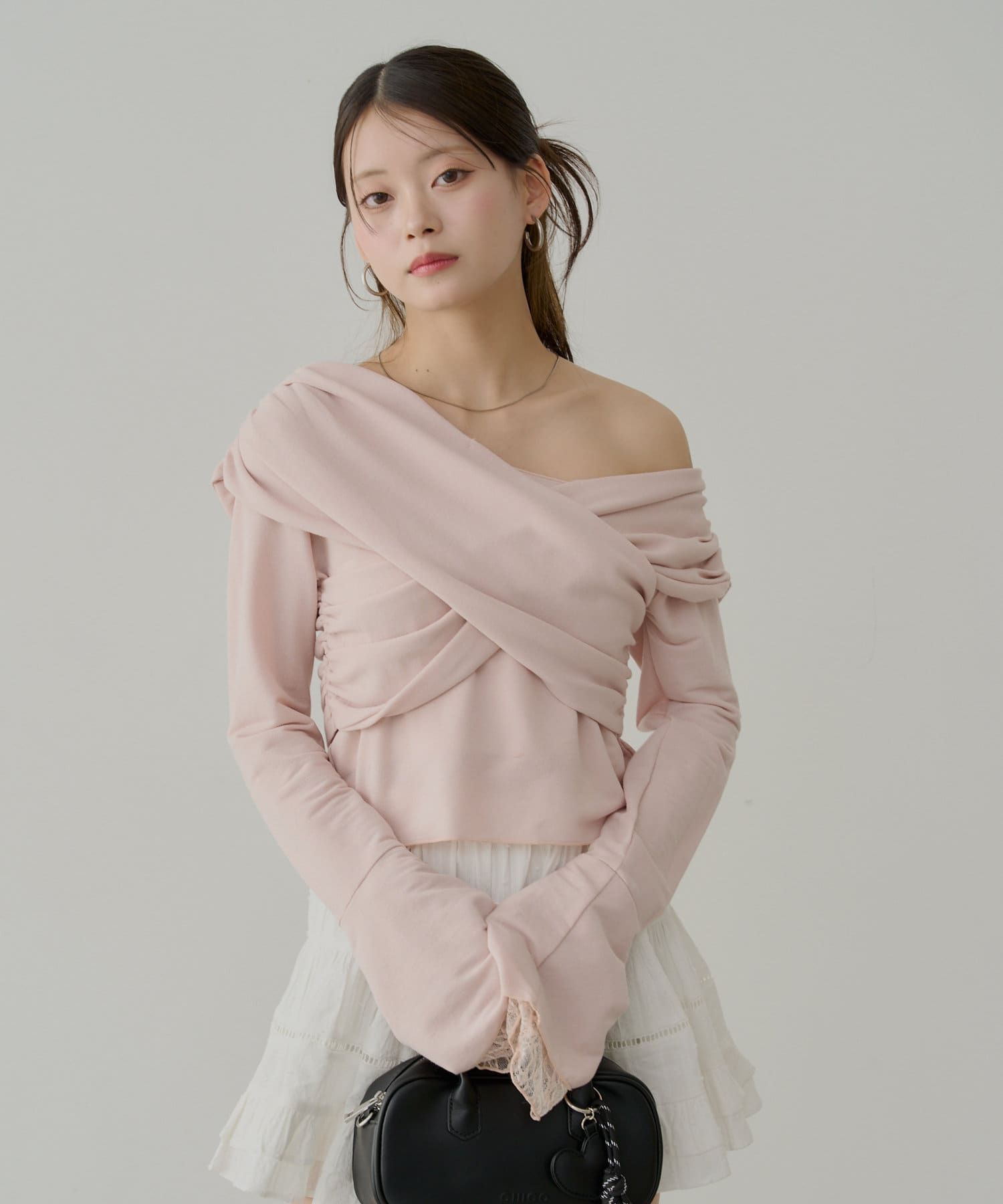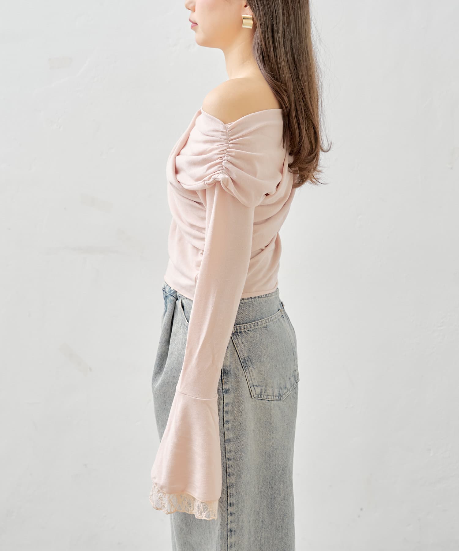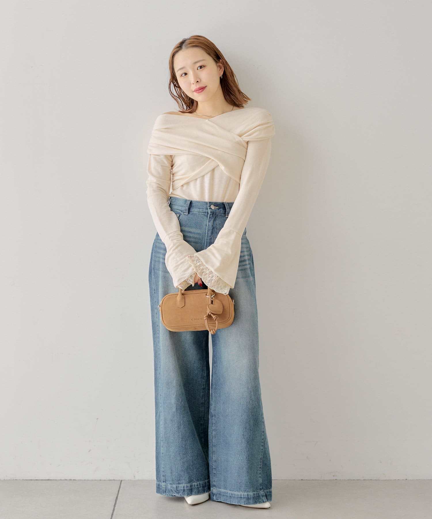 ・デコルテの肌見せやクロスデザイン、袖のフレアやレースなど女性らしさの詰まったトップスです。