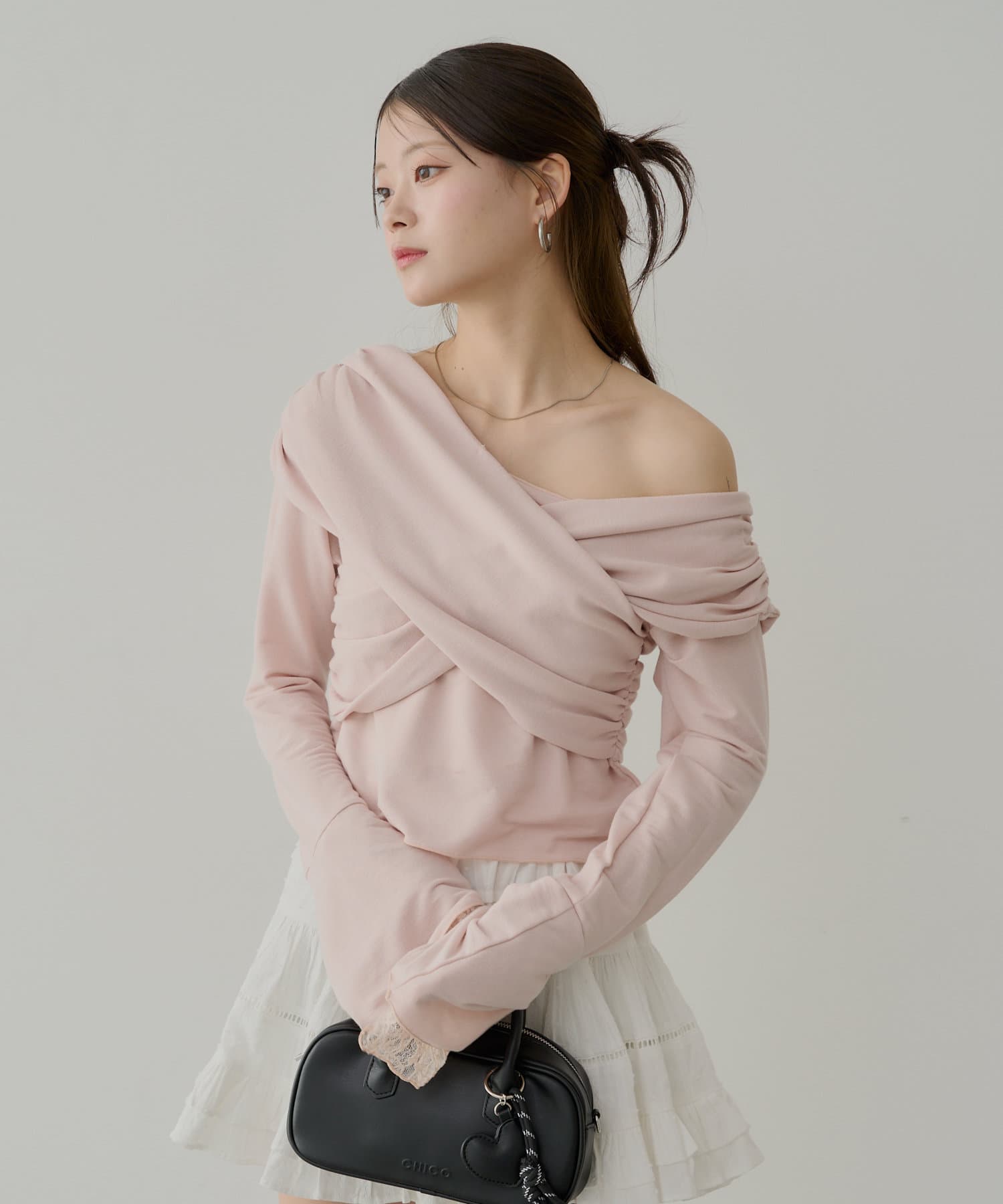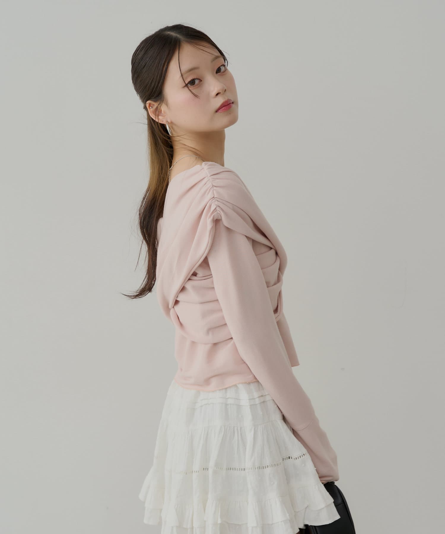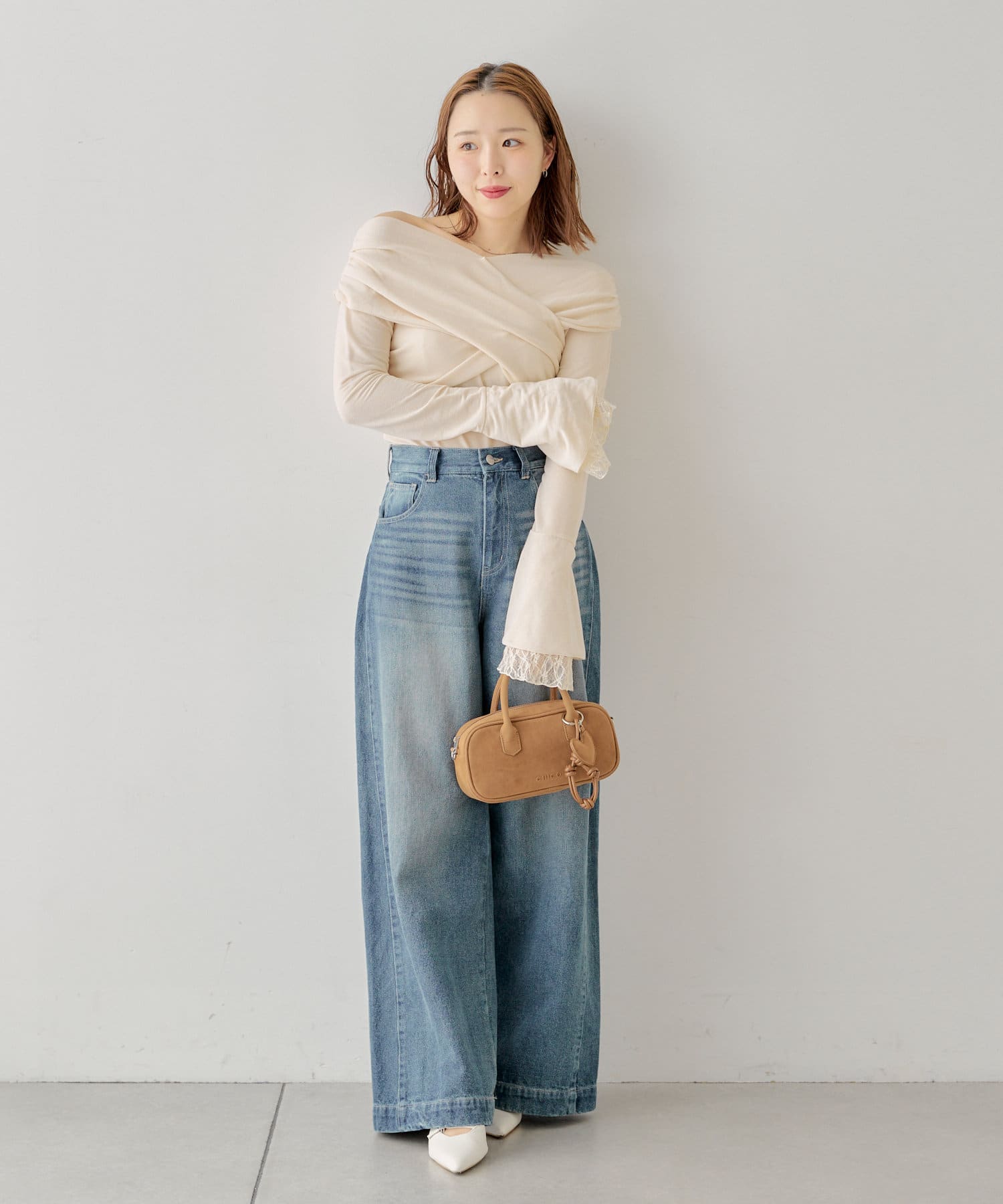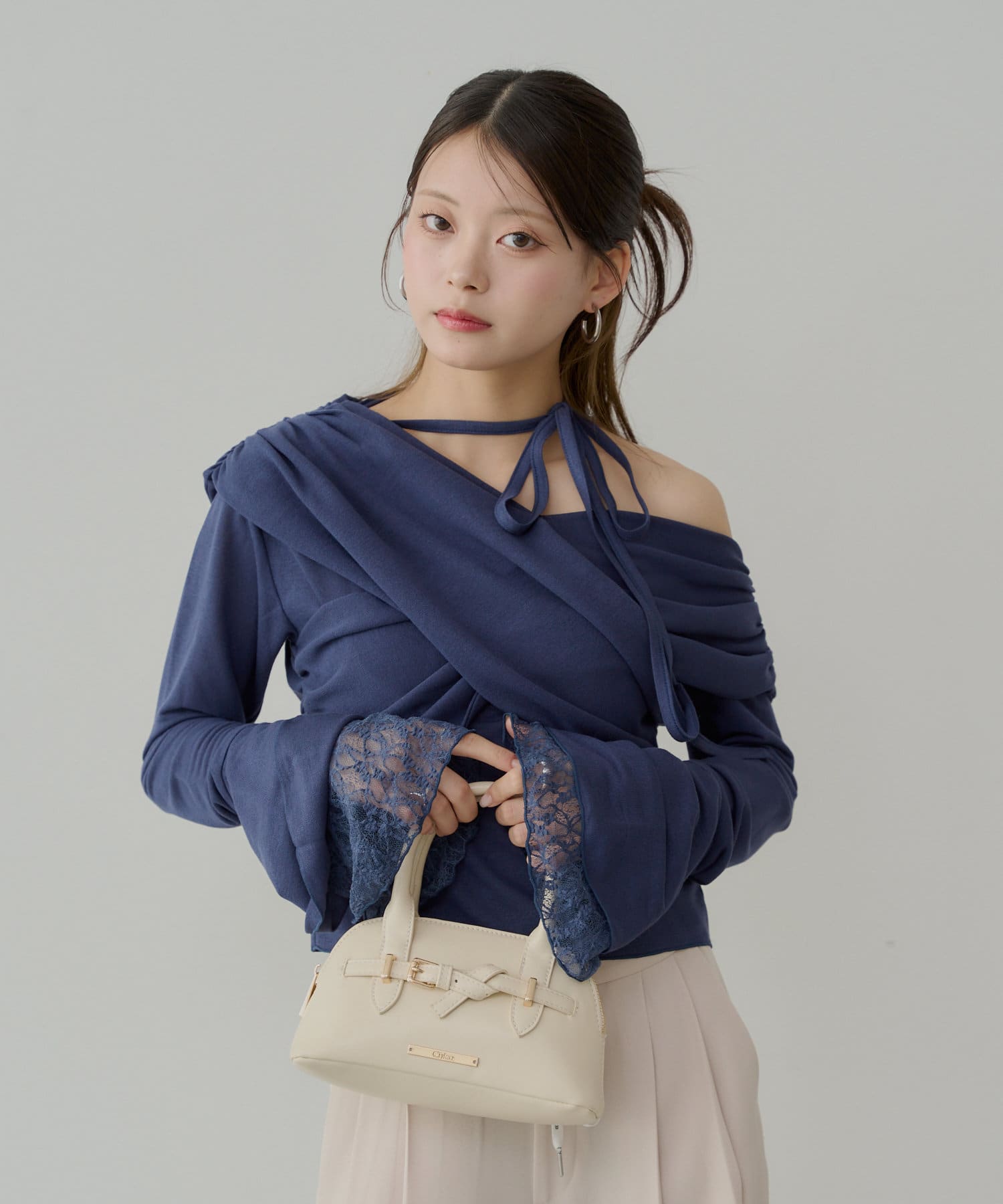 ・デコルテの肌見せやクロスデザイン、袖のフレアやレースなど女性らしさの詰まったトップスです。