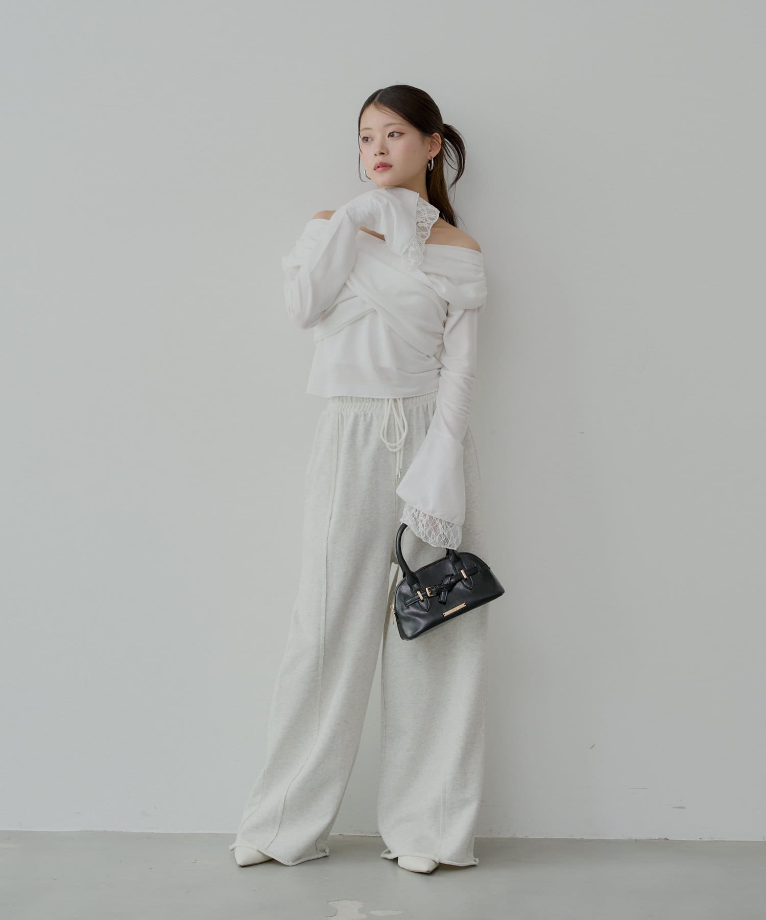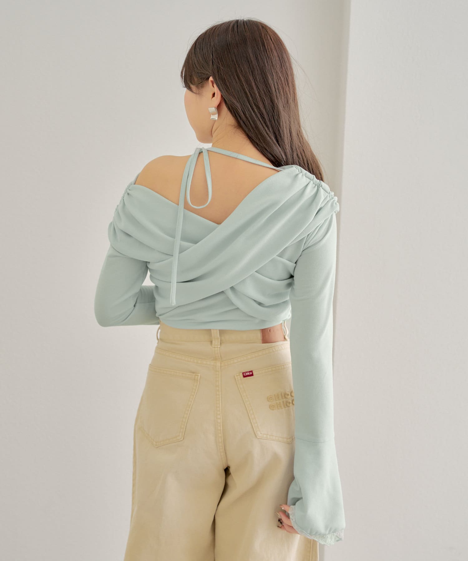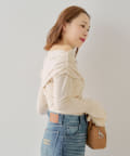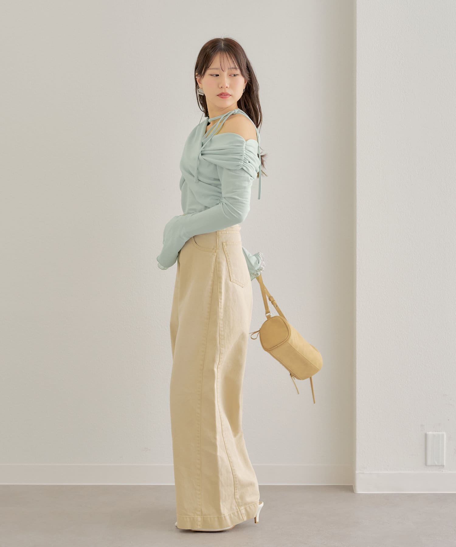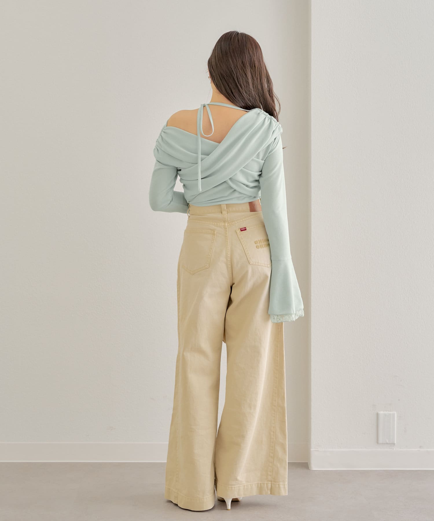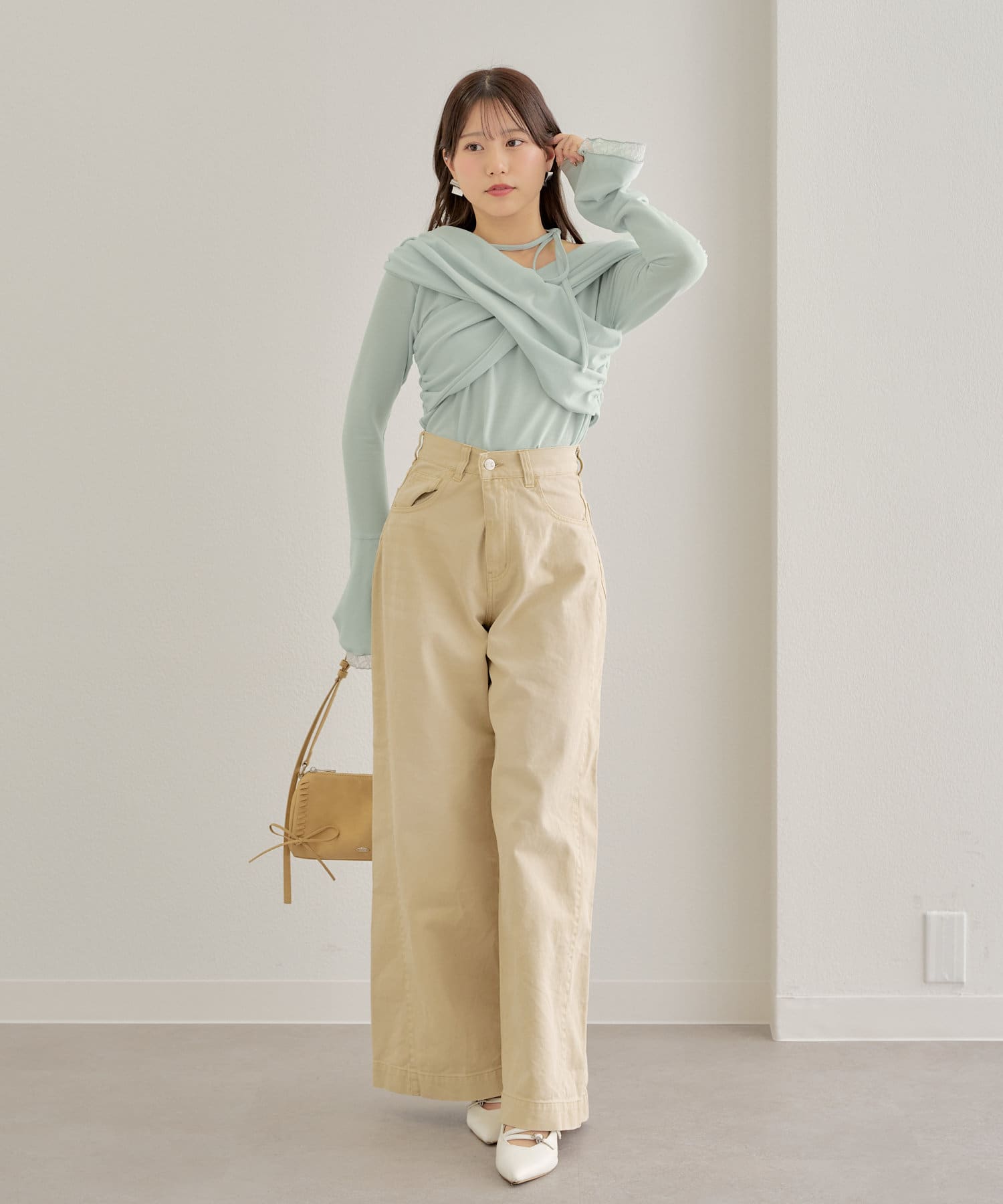 ・デコルテの肌見せやクロスデザイン、袖のフレアやレースなど女性らしさの詰まったトップスです。