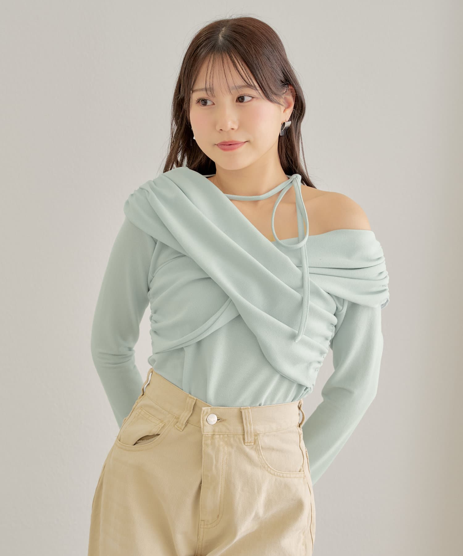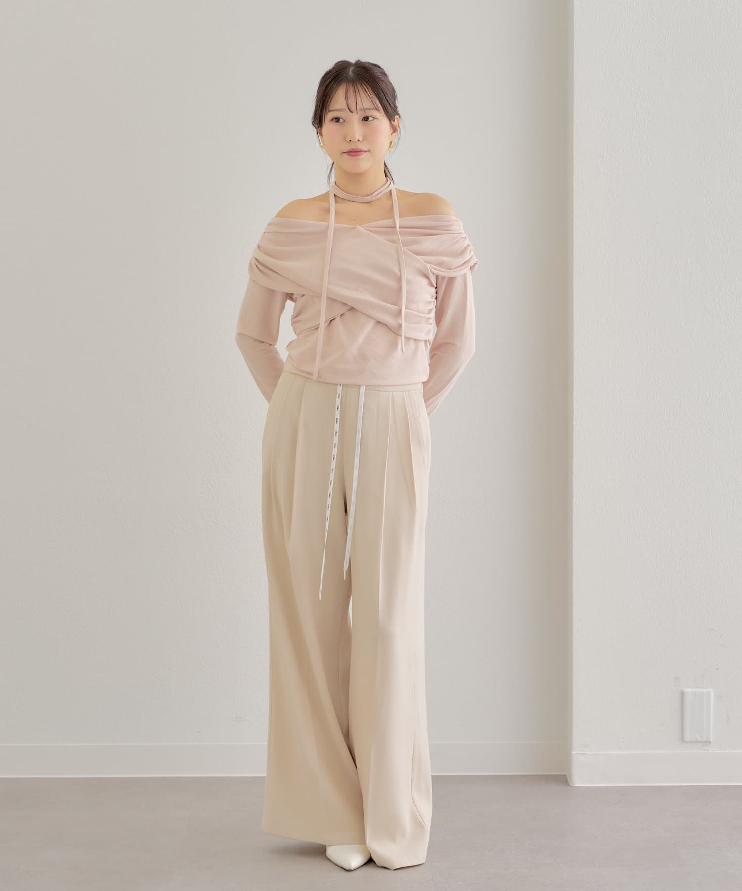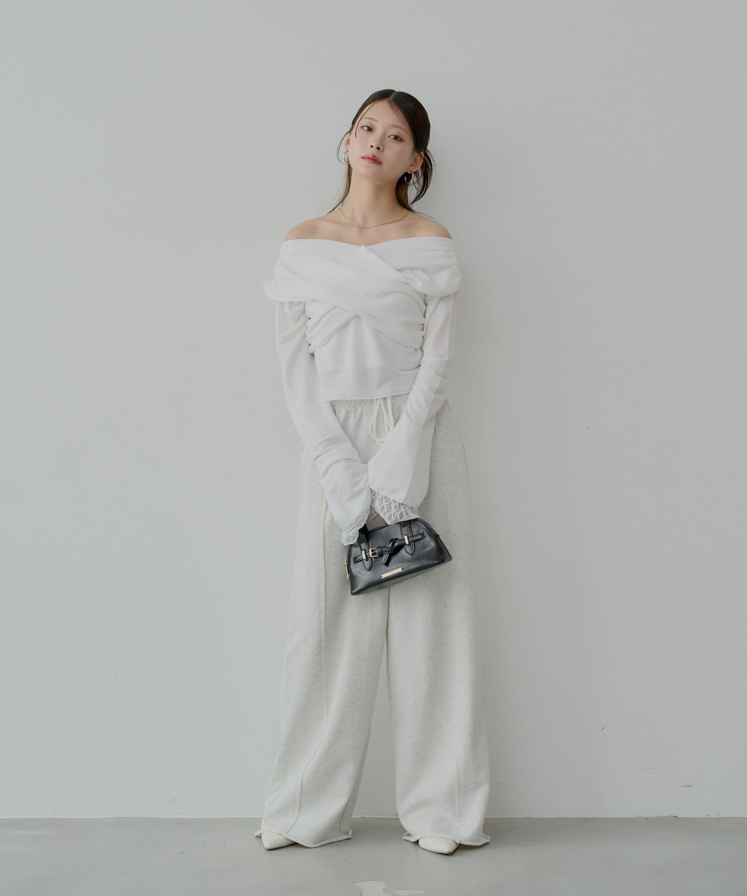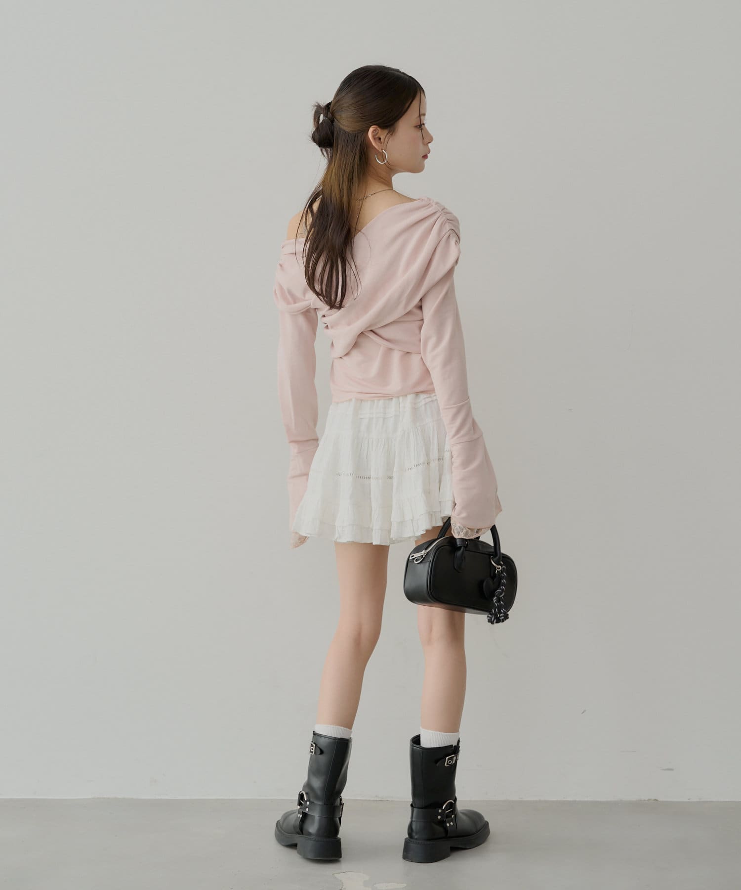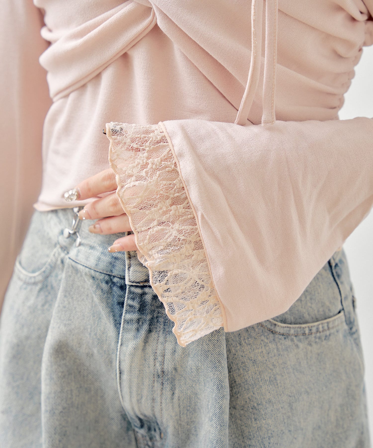 ・デコルテの肌見せやクロスデザイン、袖のフレアやレースなど女性らしさの詰まったトップスです。