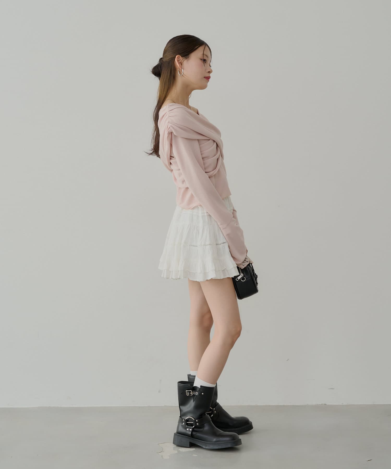 ・ミニスカートを合わせると韓国ライクなコーデに。