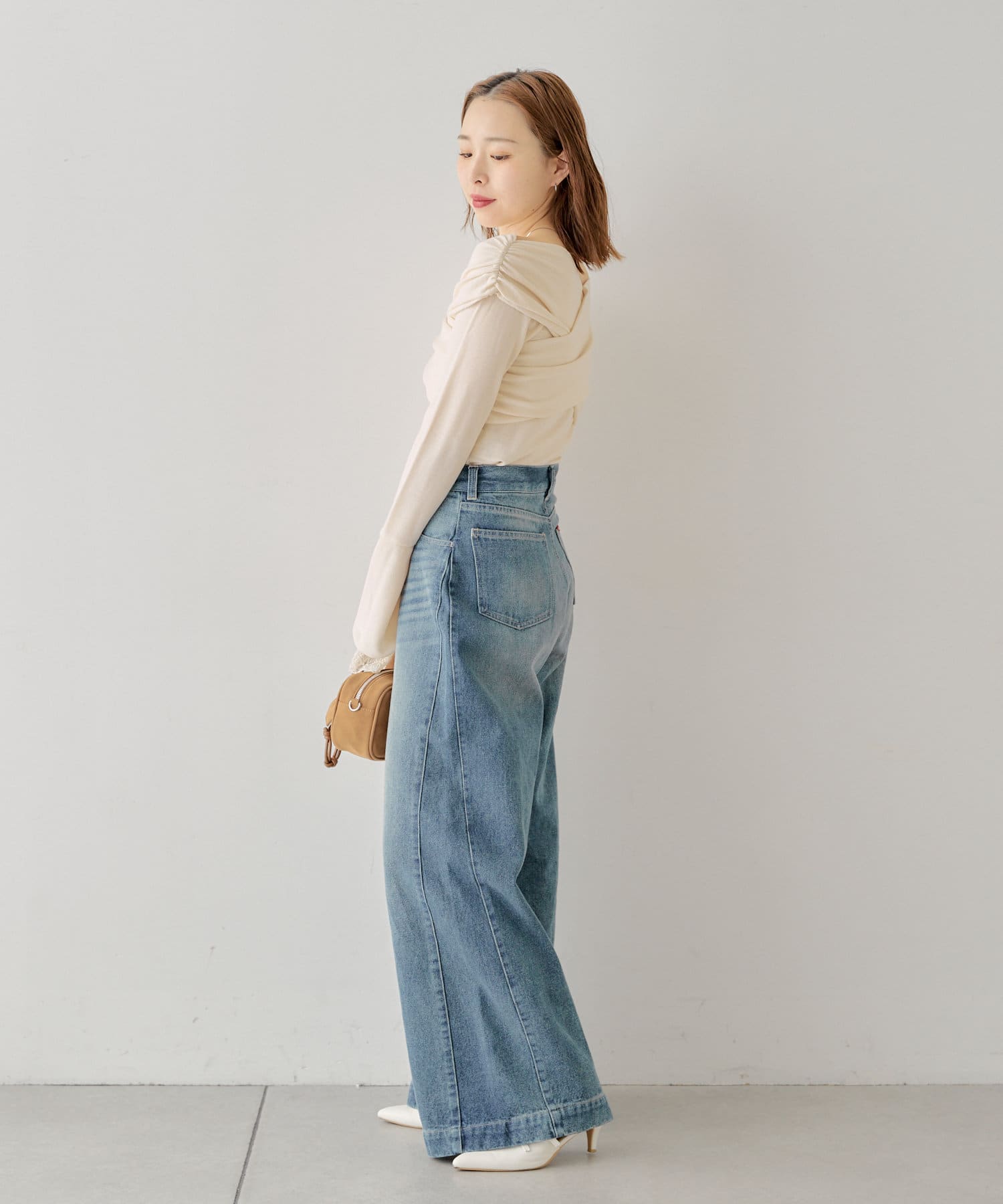 ・デニムやスラックスなどのロングボトム合わせがおすすめです。