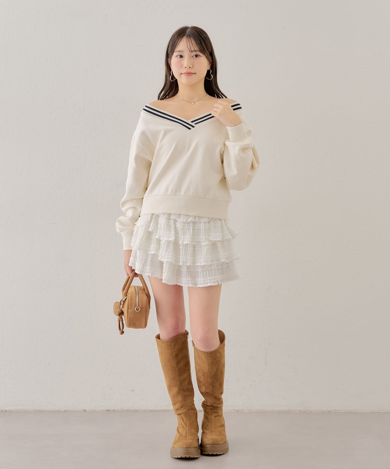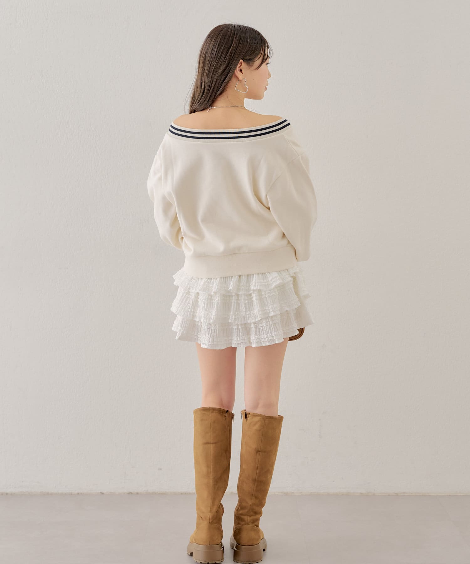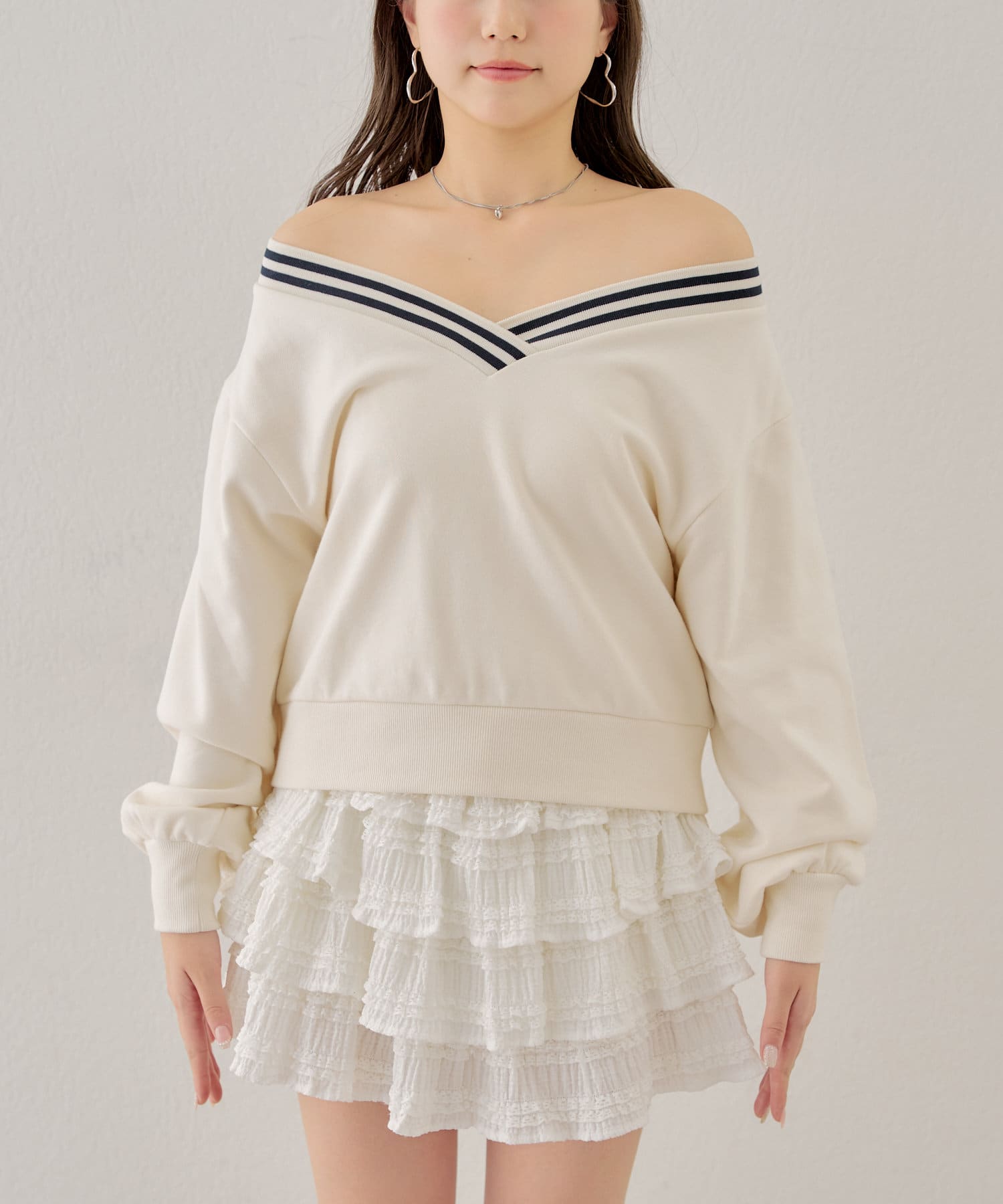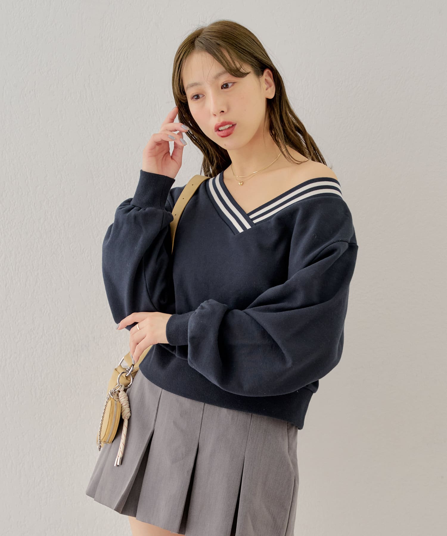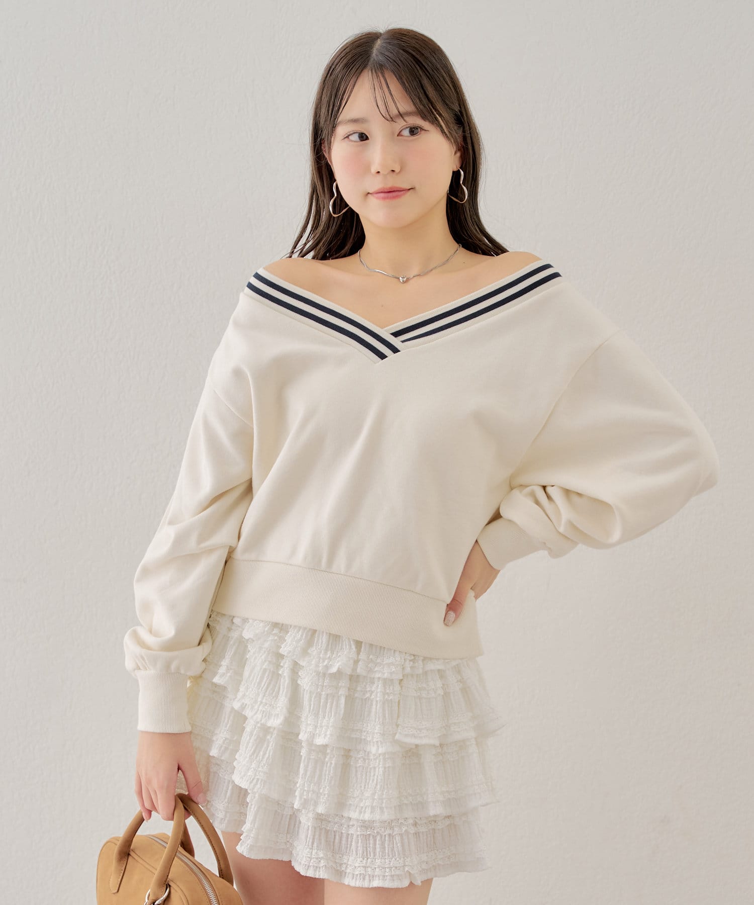 ・オフショルにして着ていただくと大人っぽく着ていただけます。