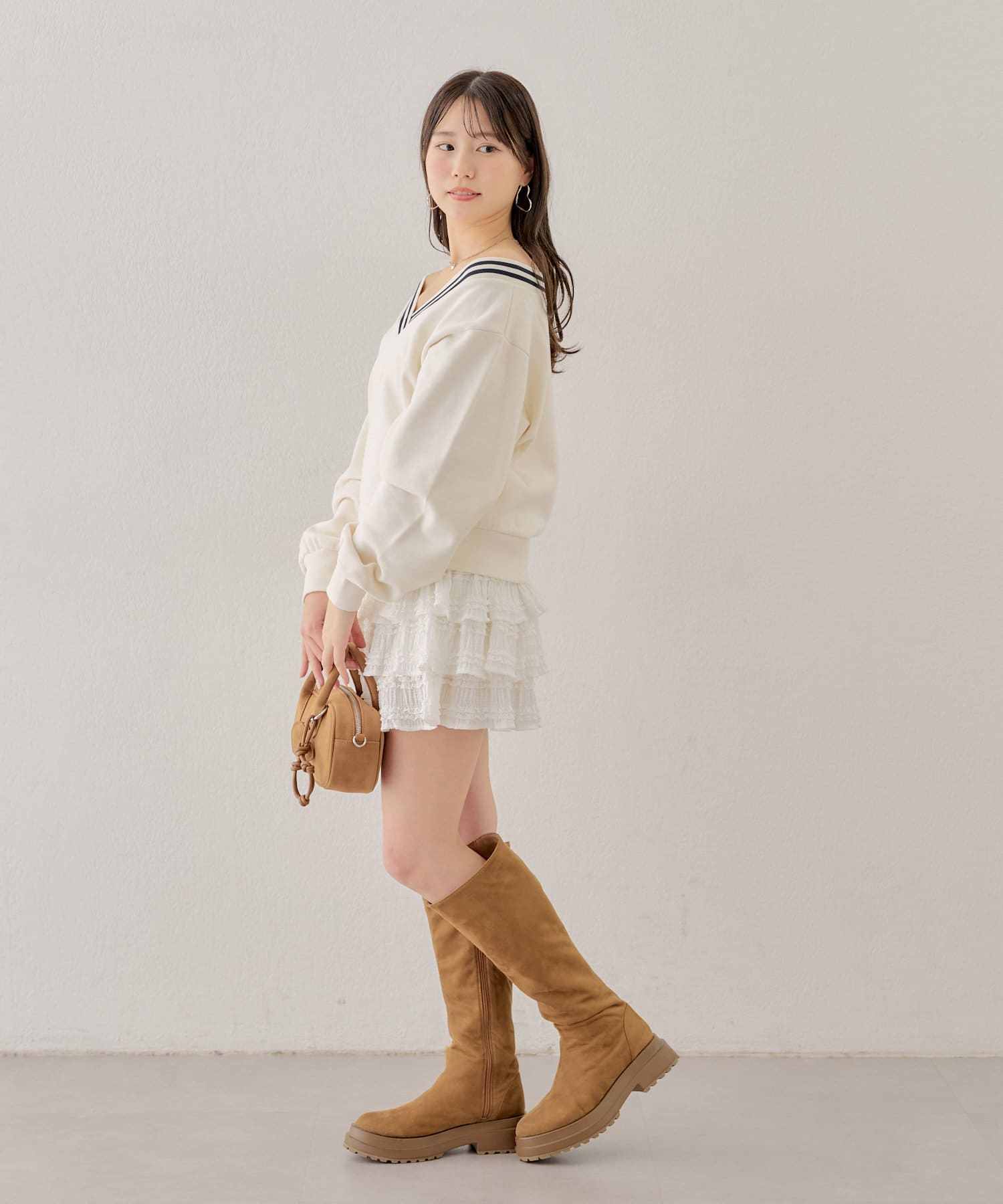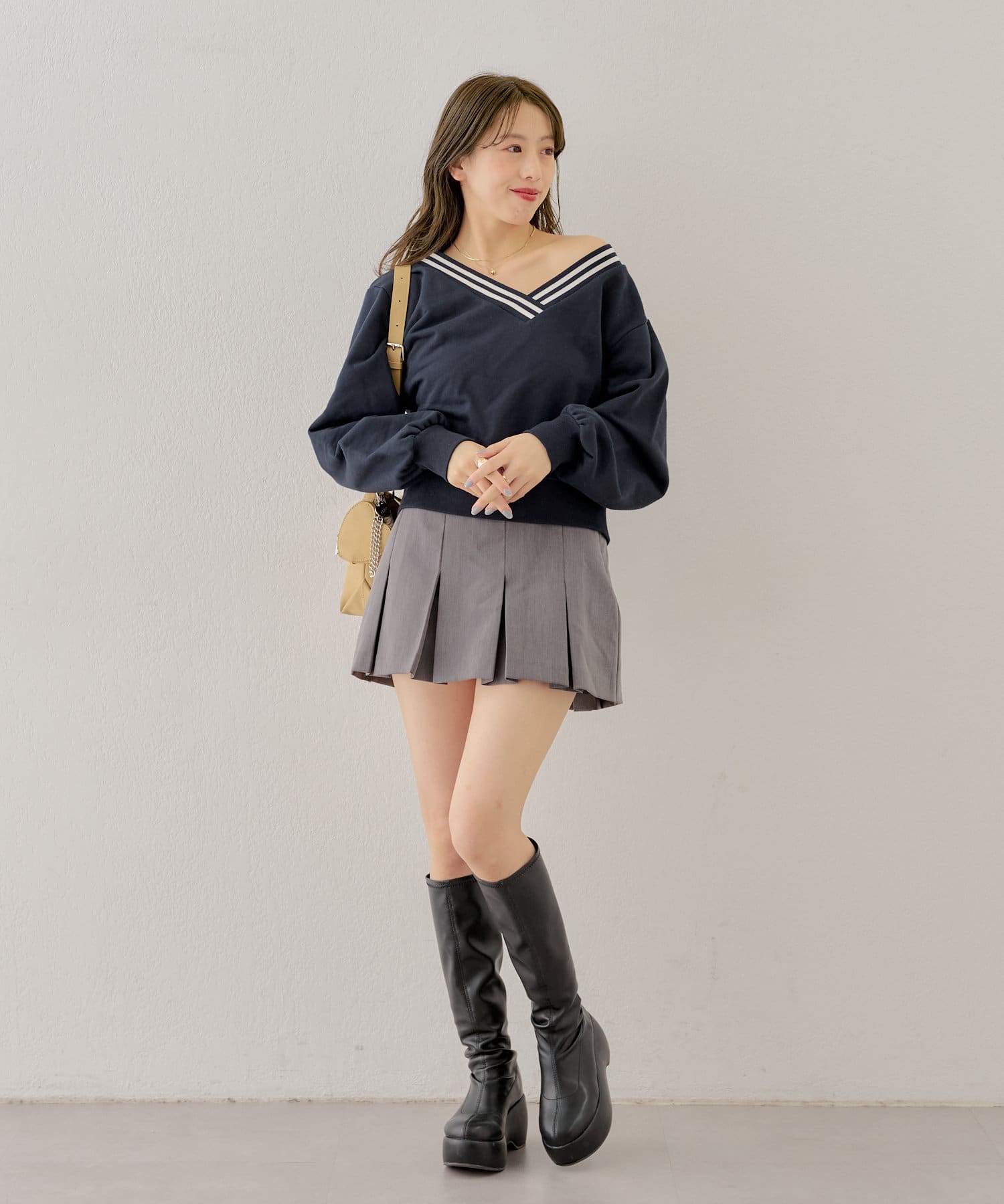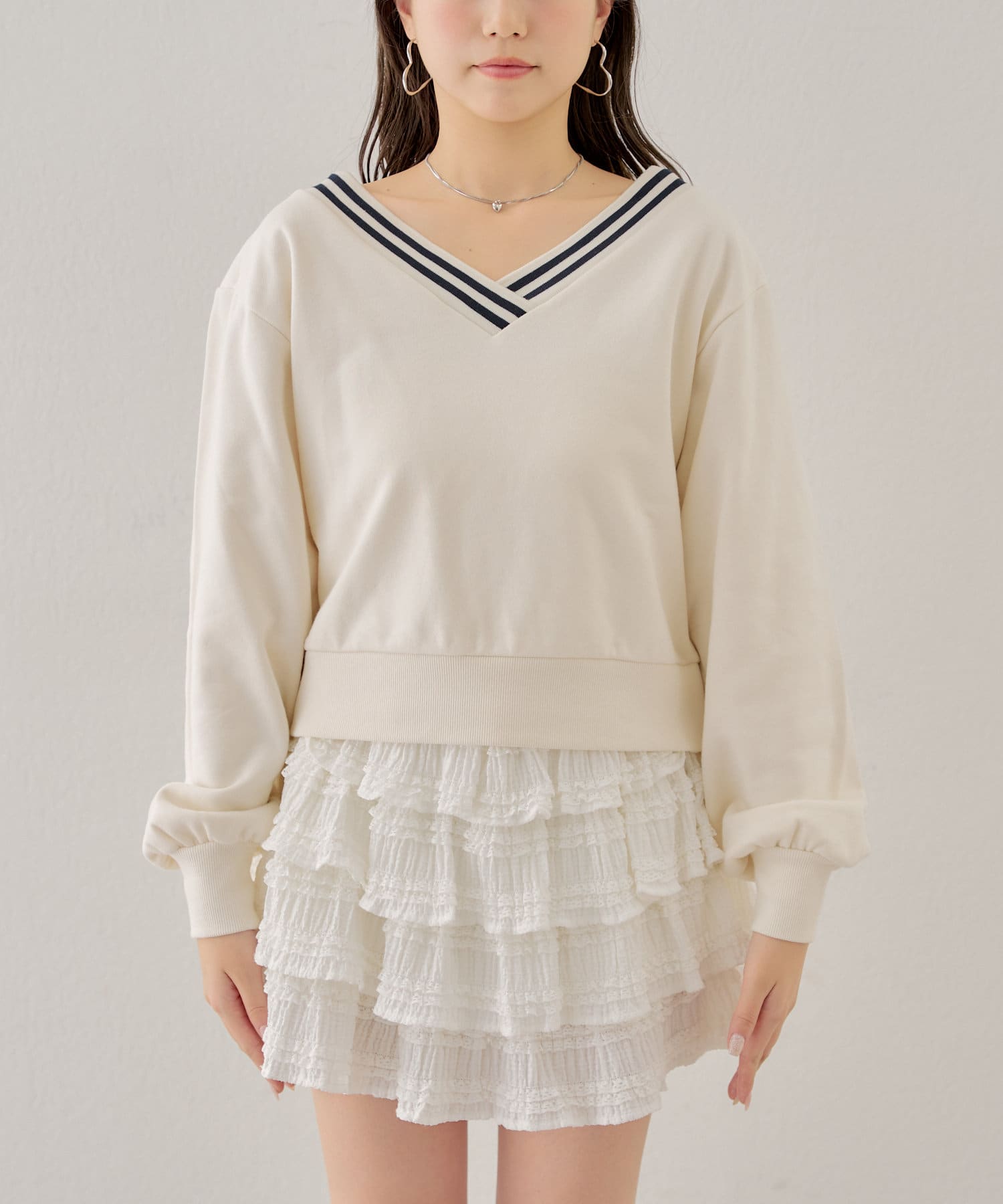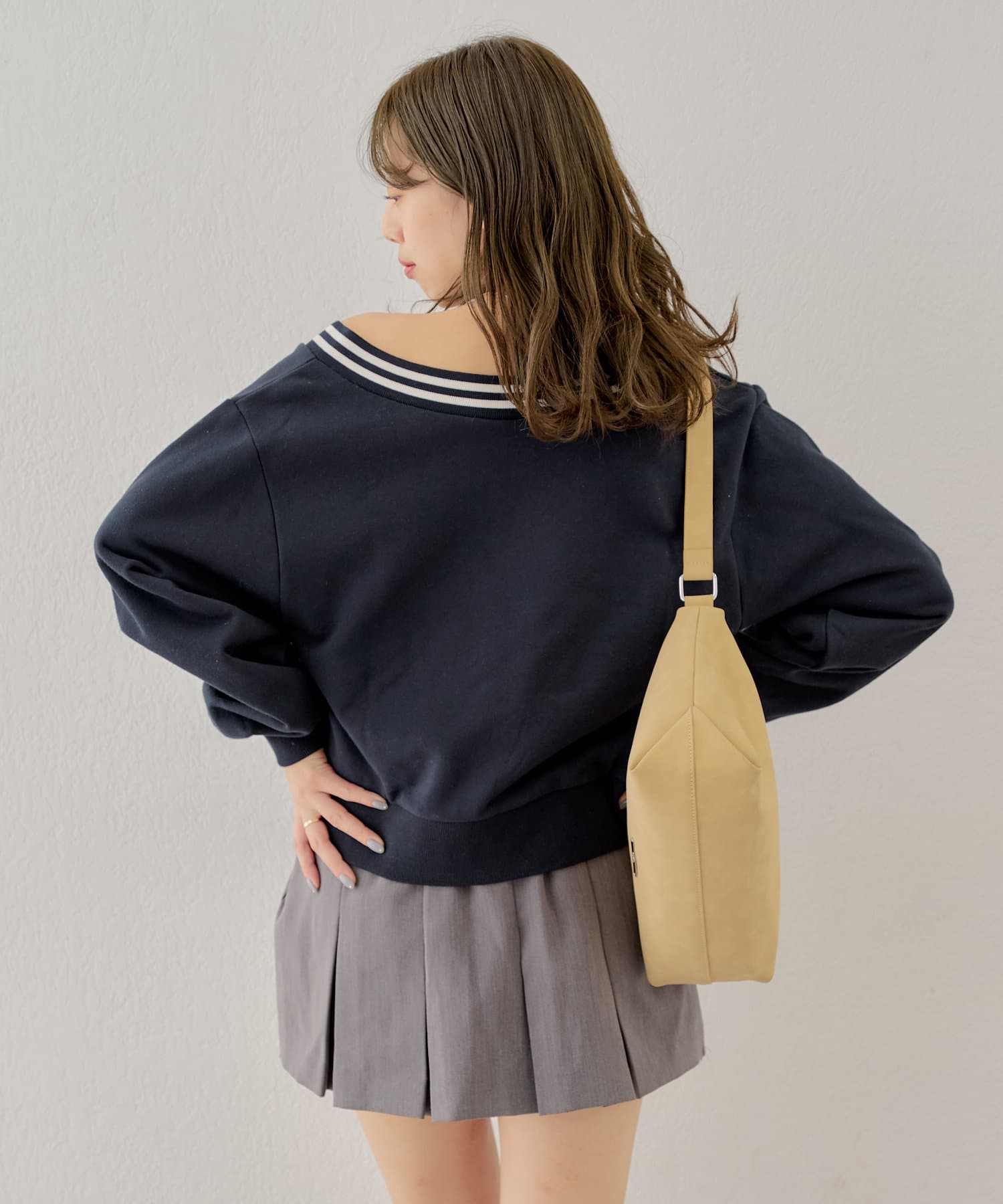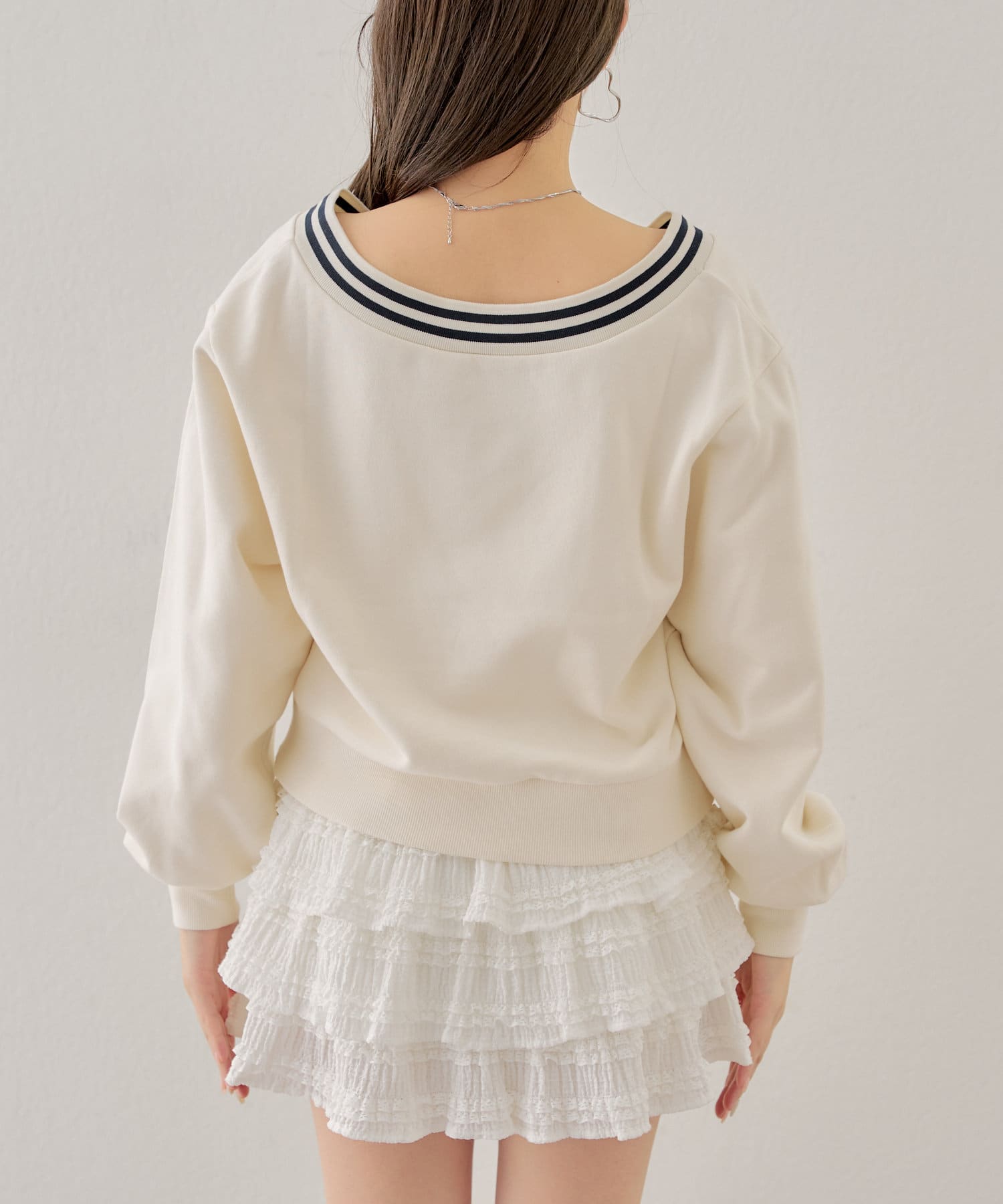 ・オフショルにして着ていただくと大人っぽく着ていただけます。