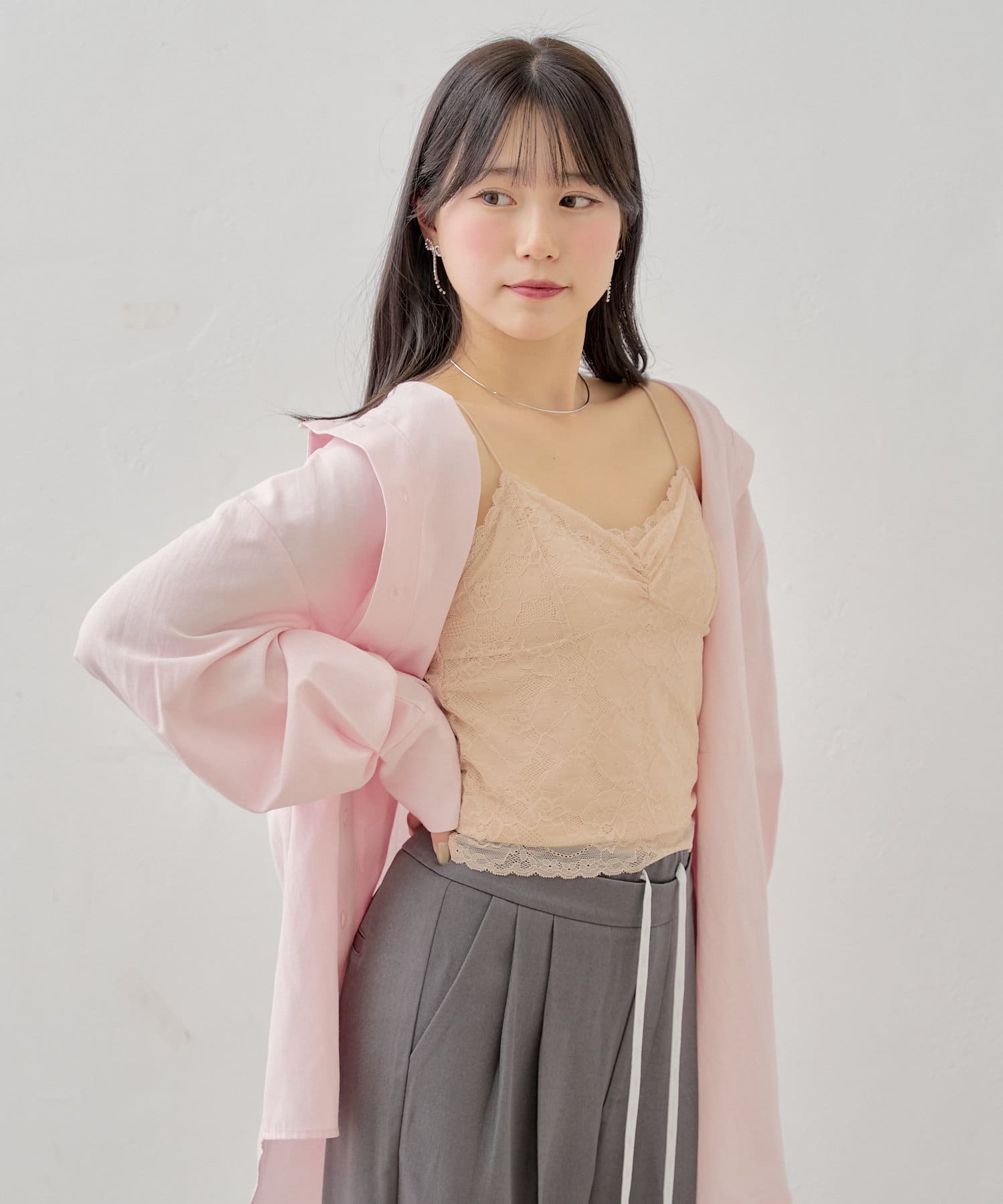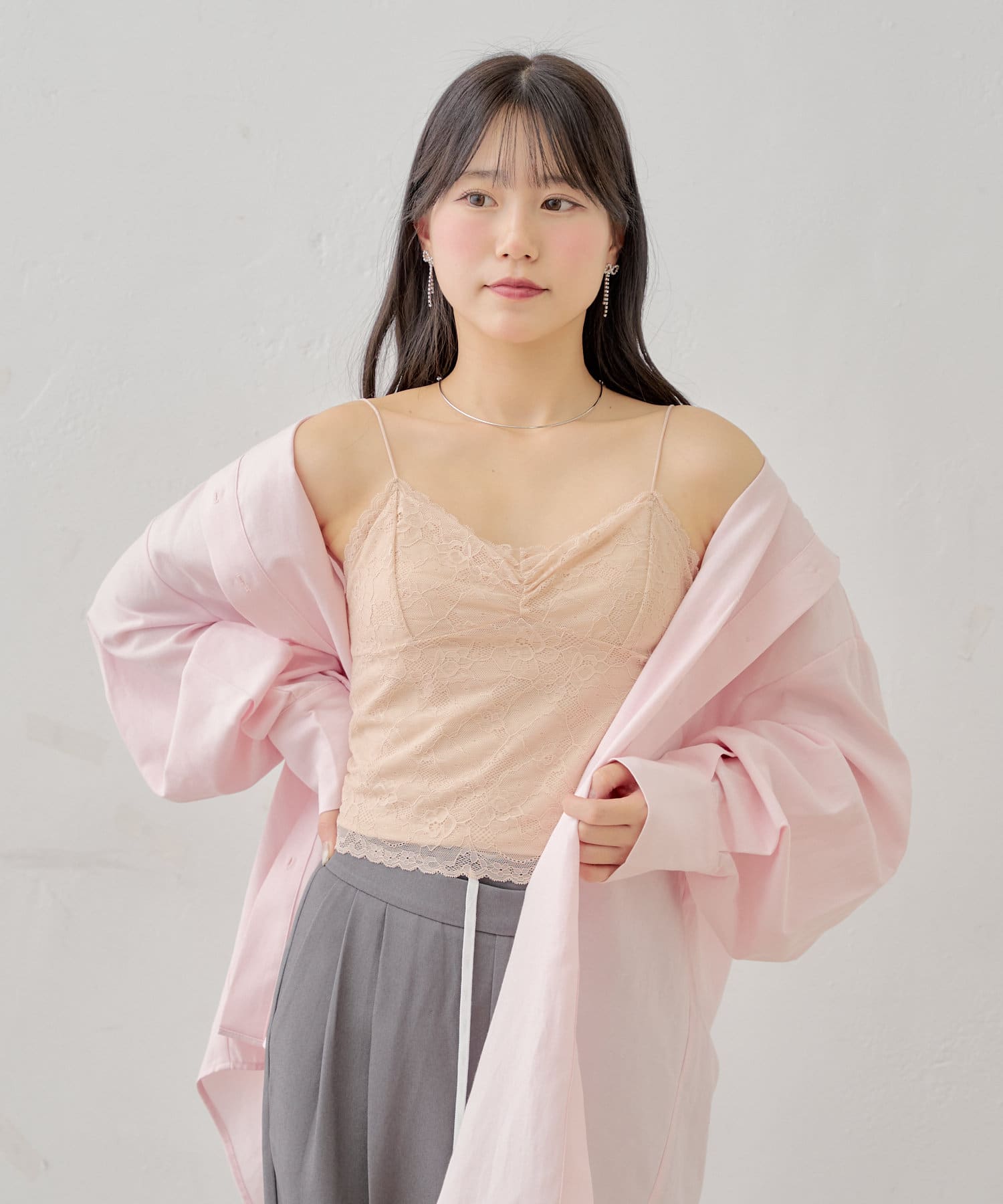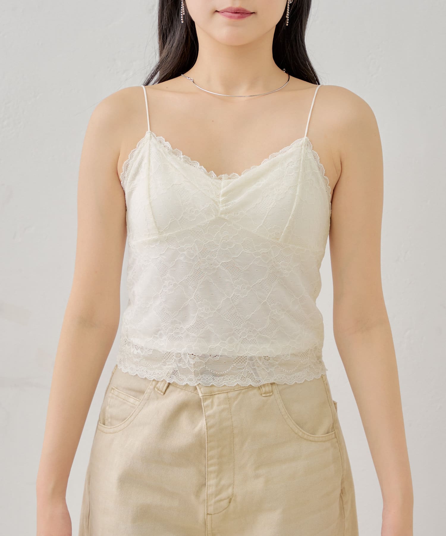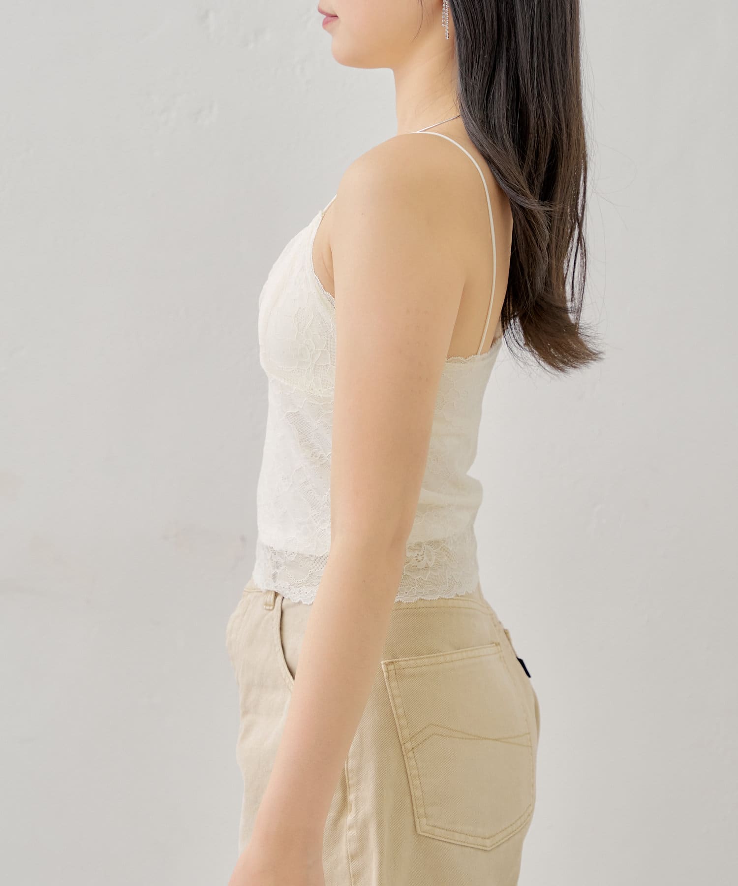・総レースデザインがシンプルながら甘く女性らしい印象に。