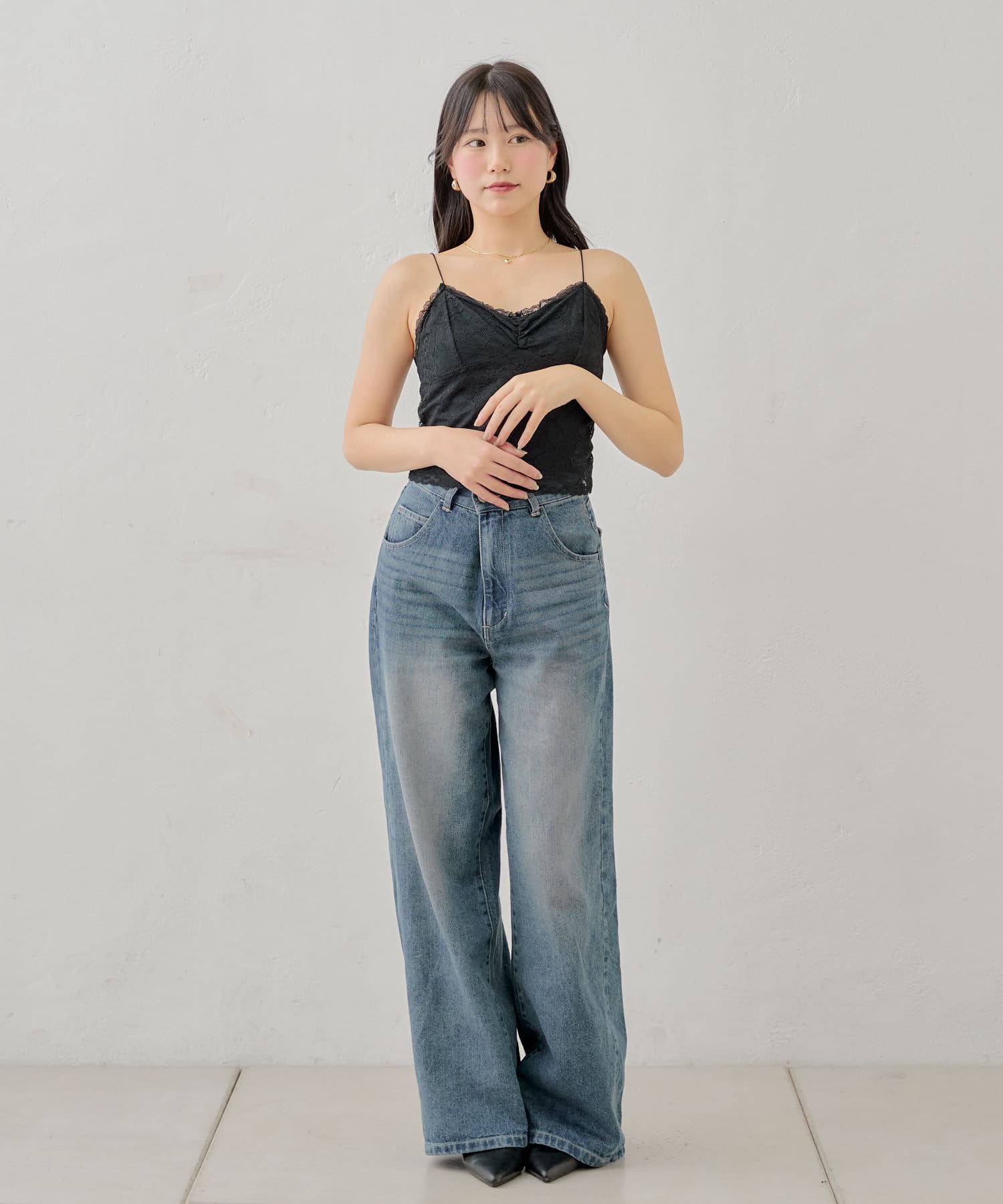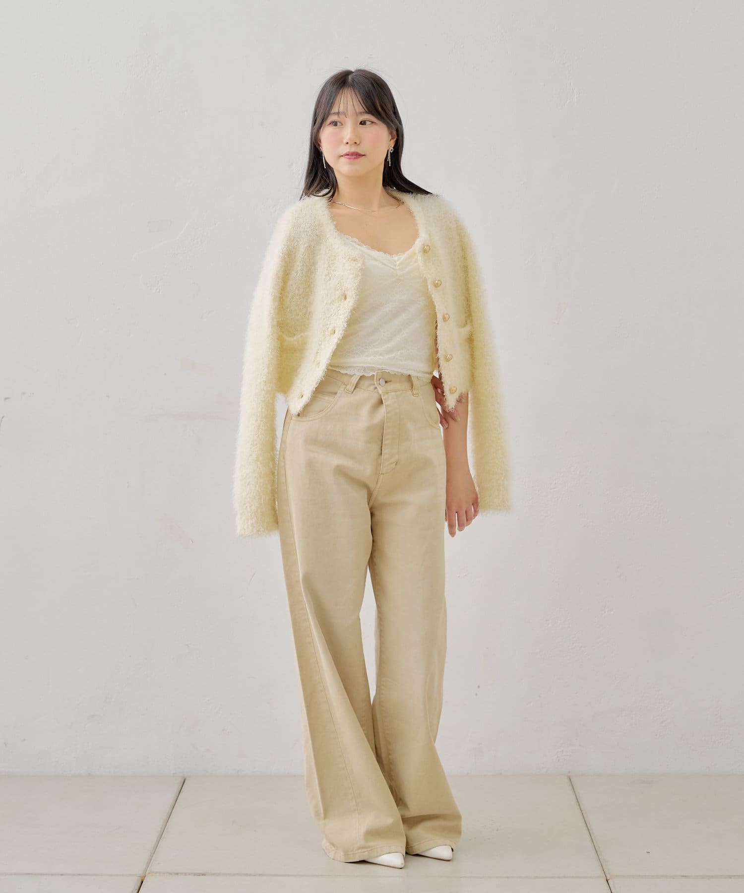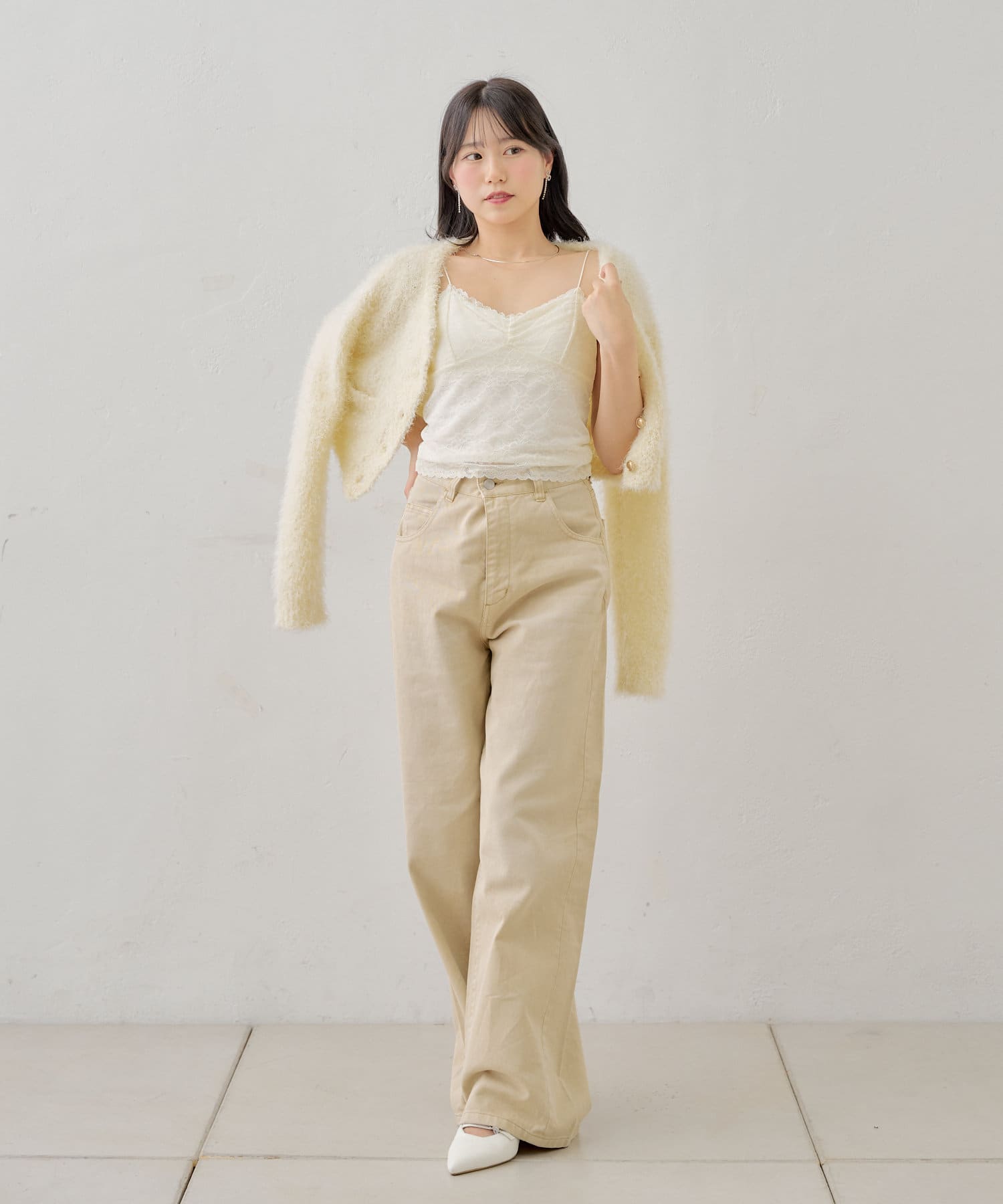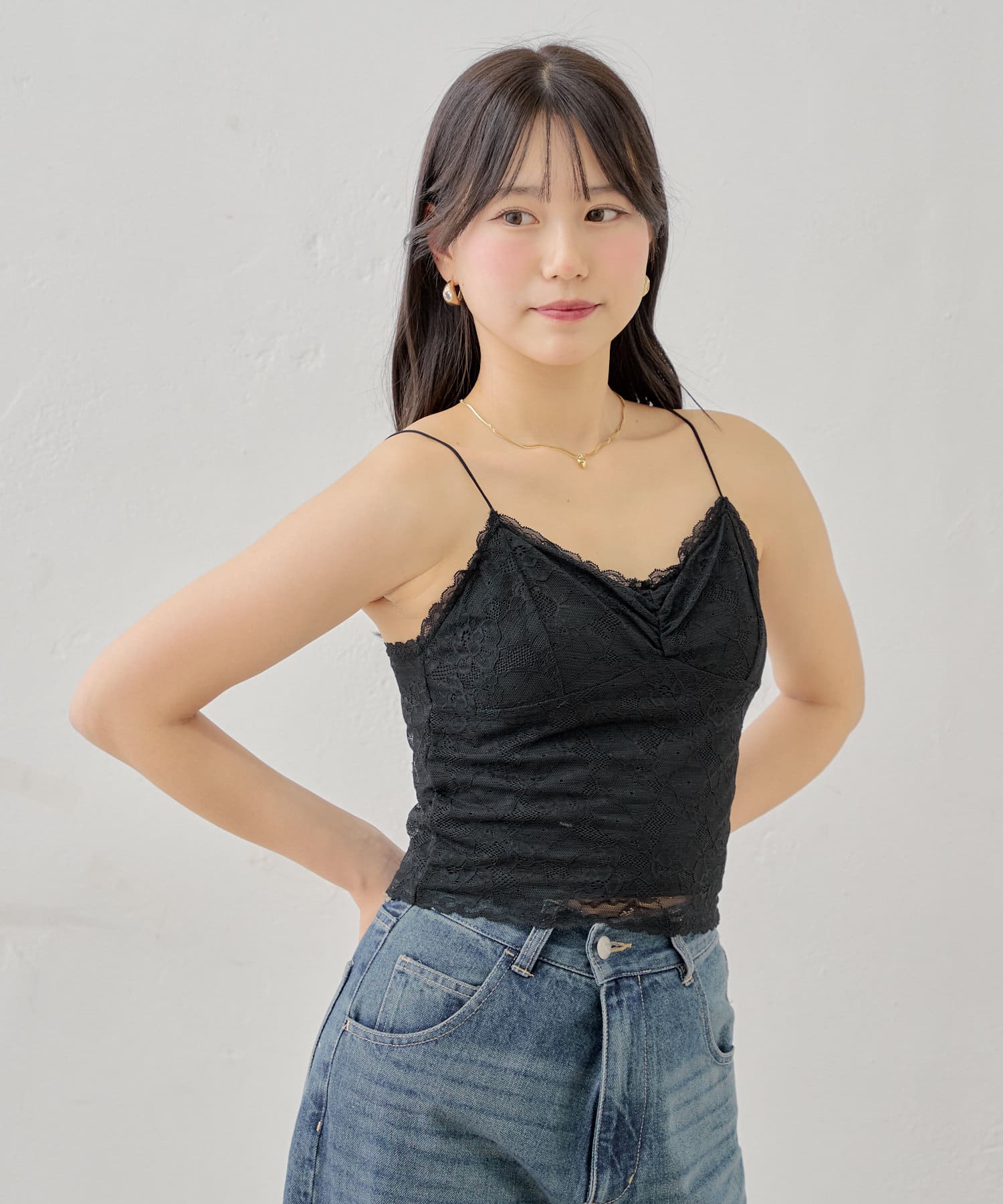 ・総レースデザインがシンプルながら甘く女性らしい印象に。