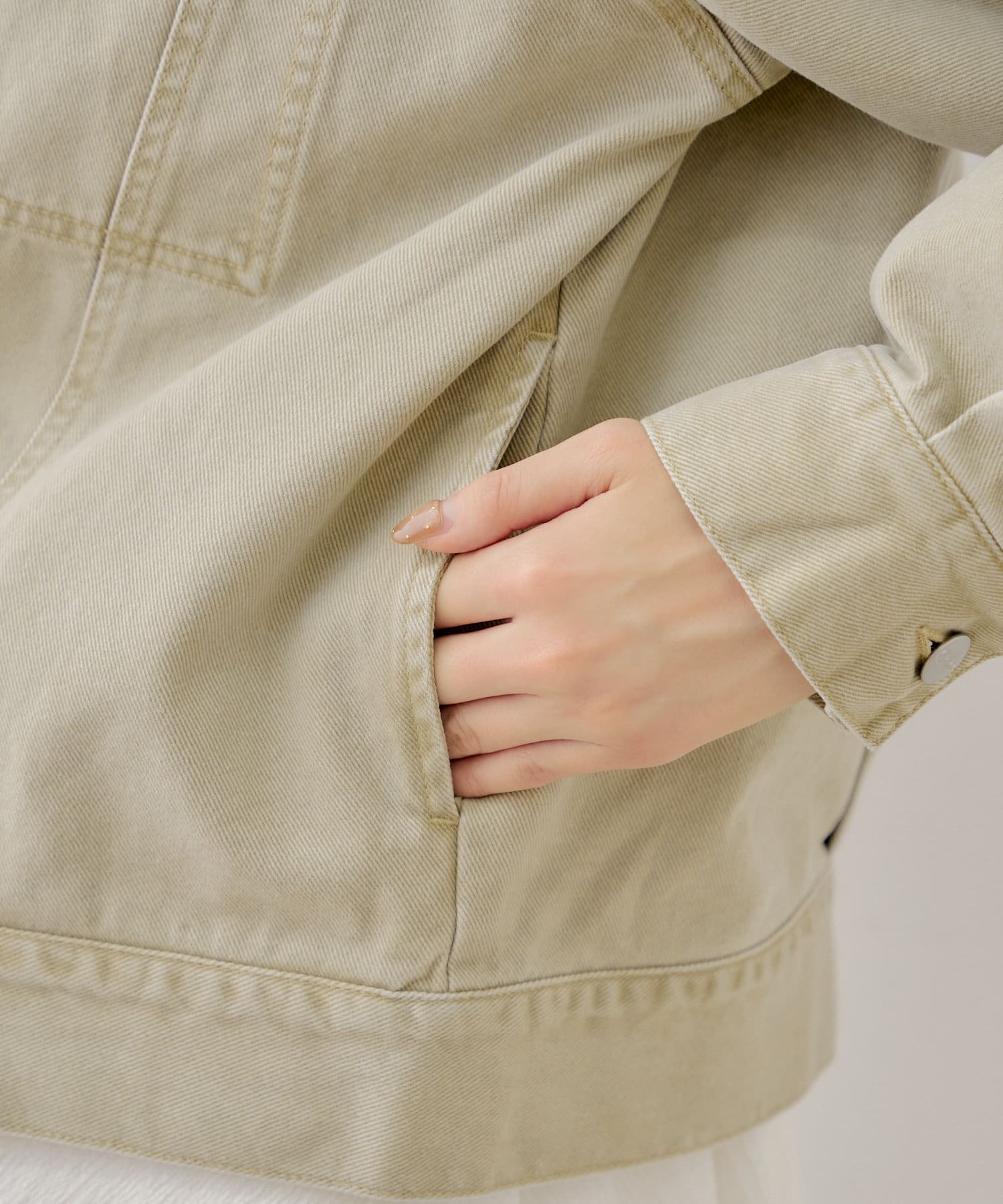 ・袖や裾が内に入るデザインは、カジュアルなGジャンも女性らしいシルエットが叶います。