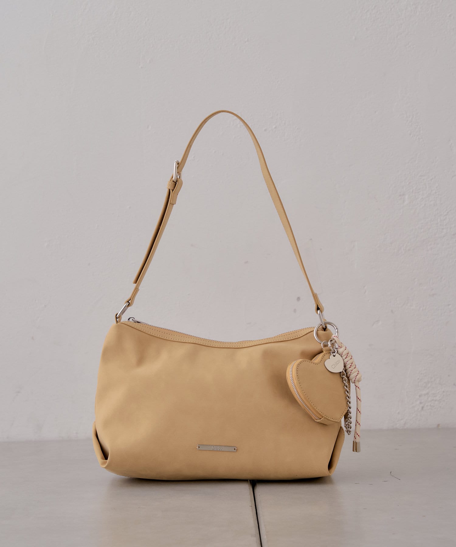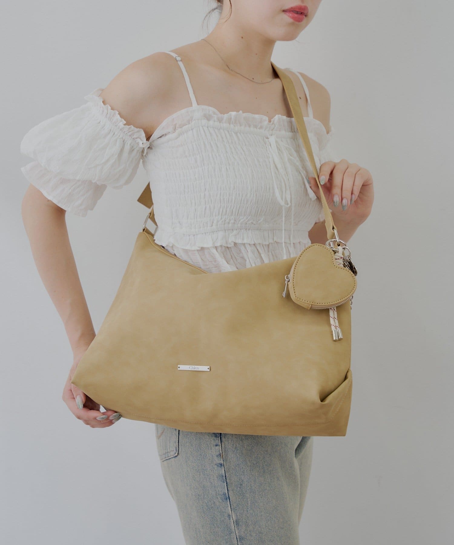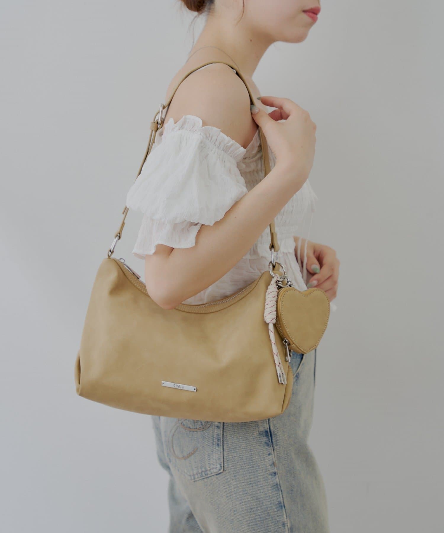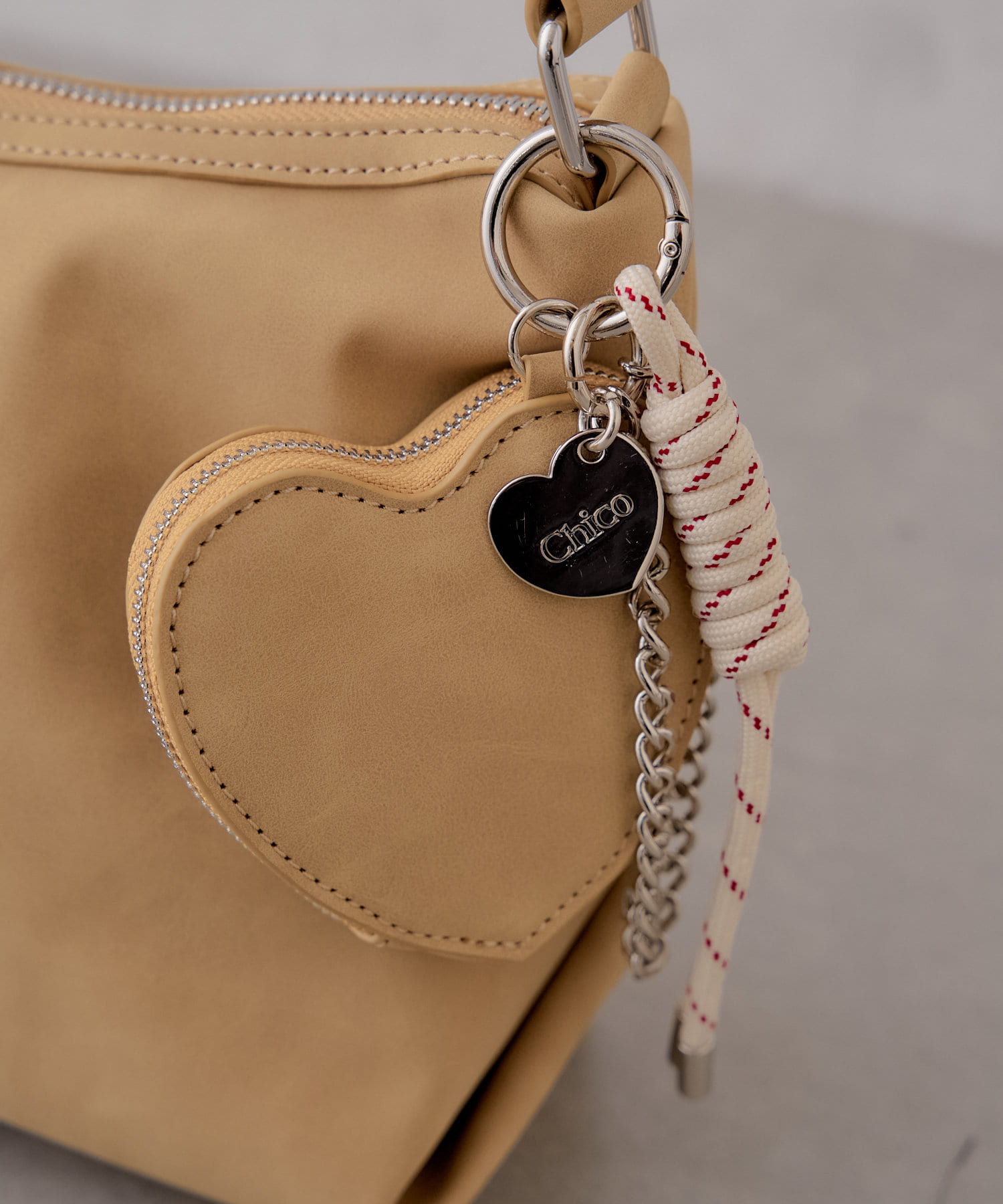 バッグの外側にハートの小さいポーチが着いているので、そこにアクセサリーなどを一時的に入れることが出来て可愛いだけでなく利便性もあり、ハートのポーチもお気に入りです!