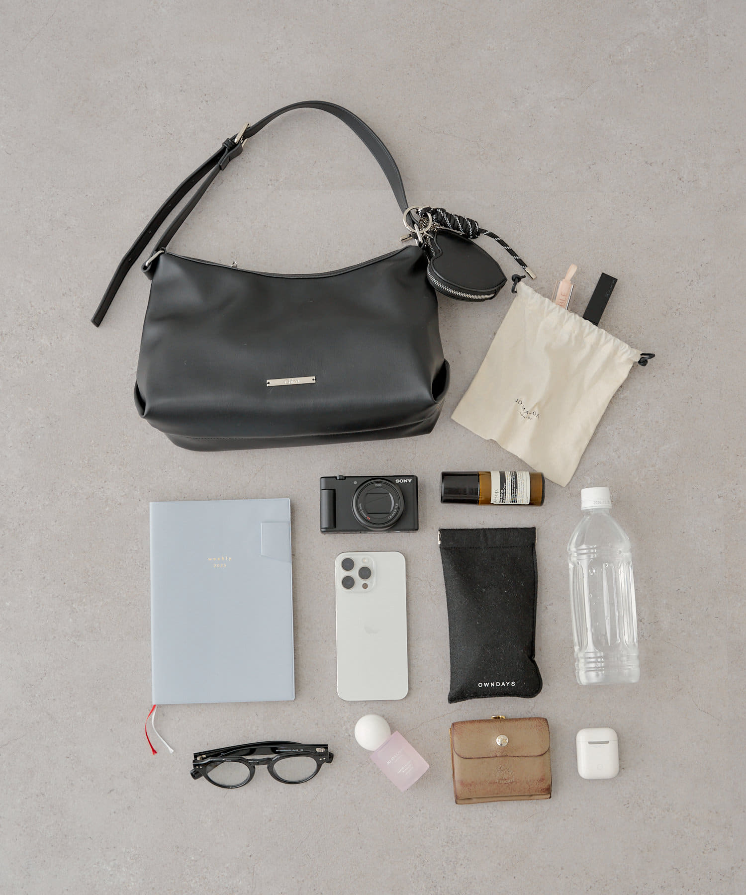 500mlのペットボトルを入れても、財布やポーチ、カメラまで入れても問題ないサイズ感でこれから大活躍する予感してます!