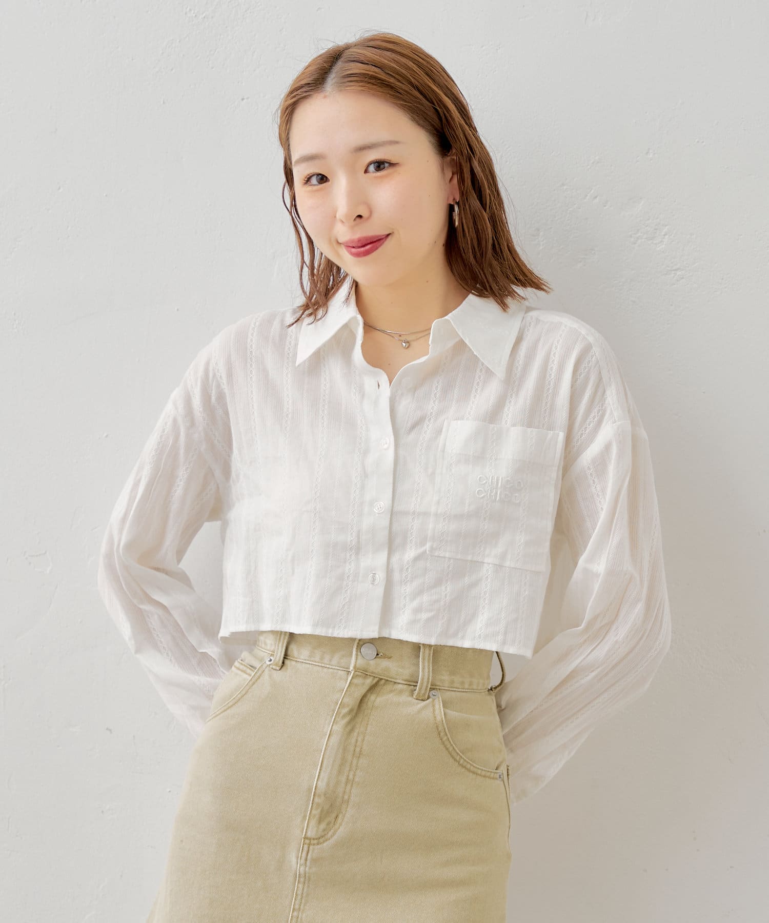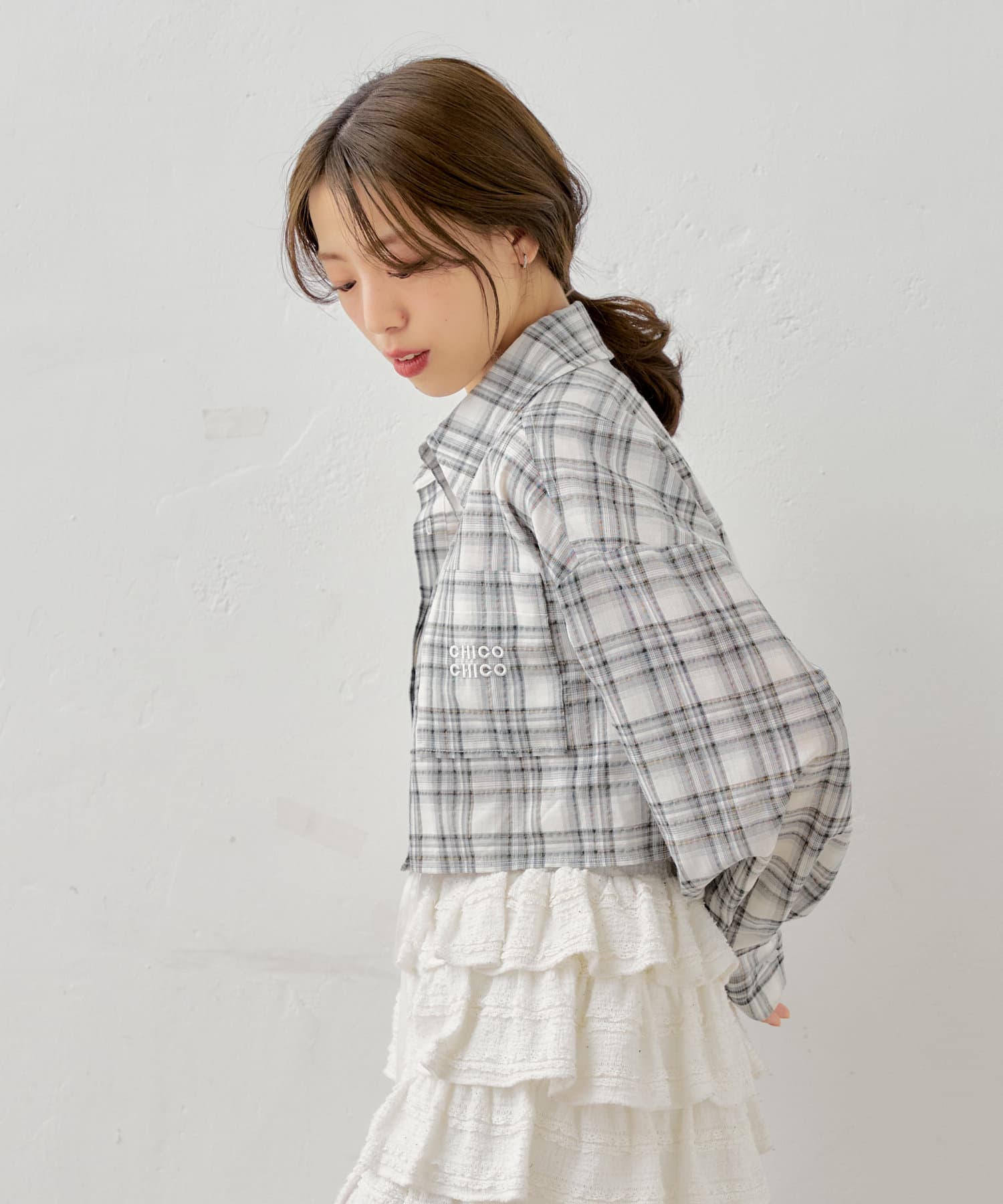 ・胸元のさりげないChicoロゴが可愛いポイント。