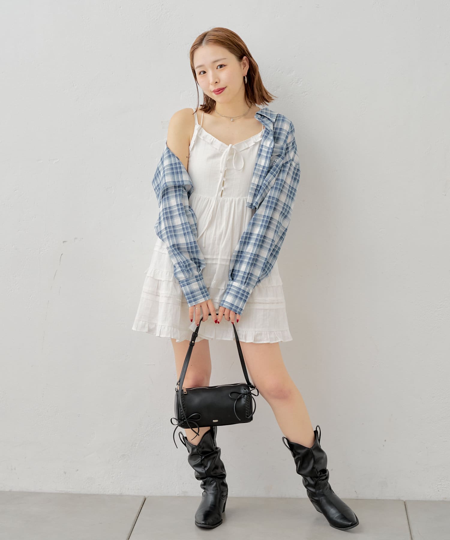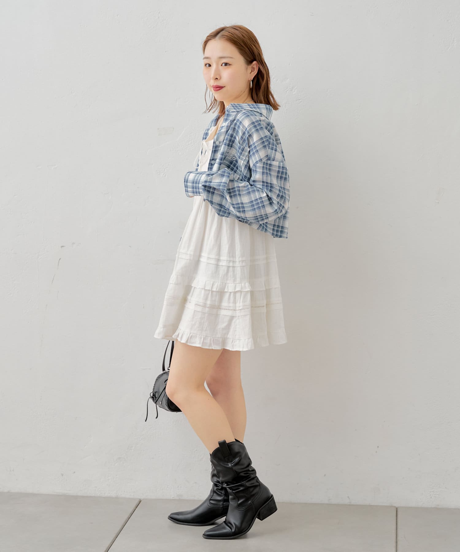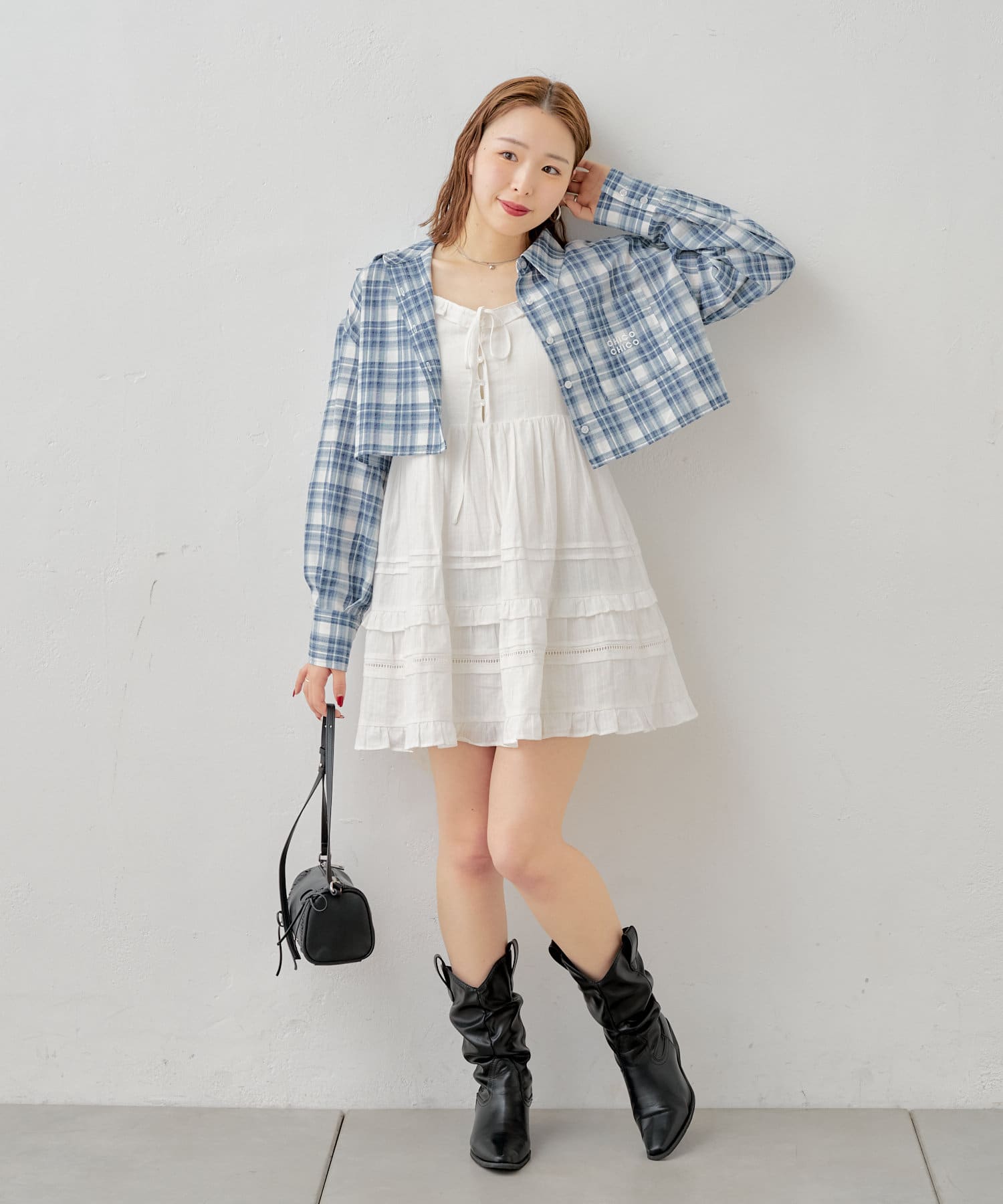 ・ボタンを閉めて一枚で着てもボタンを開けてワンピースなどの羽織としても可愛くておすすめ。