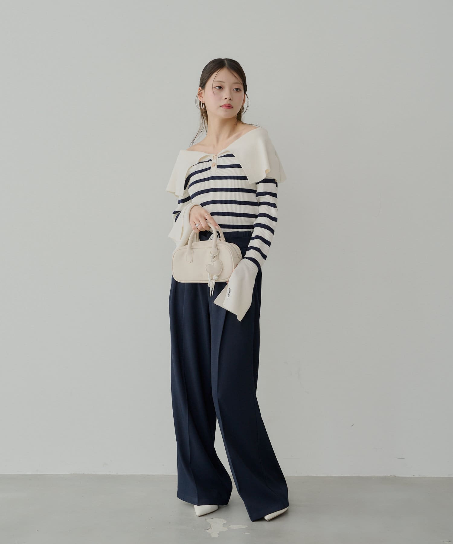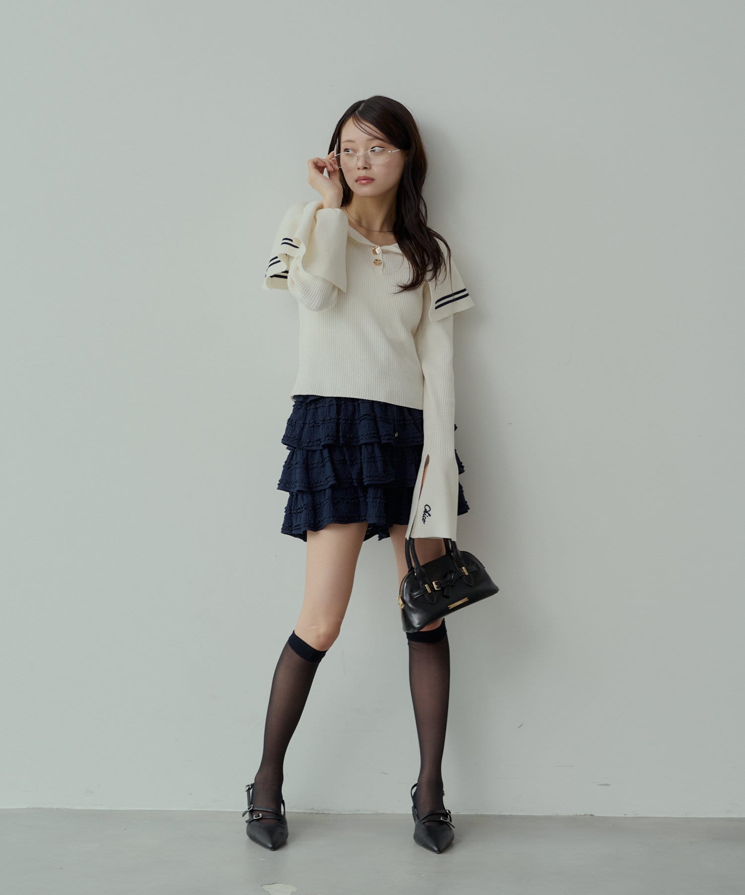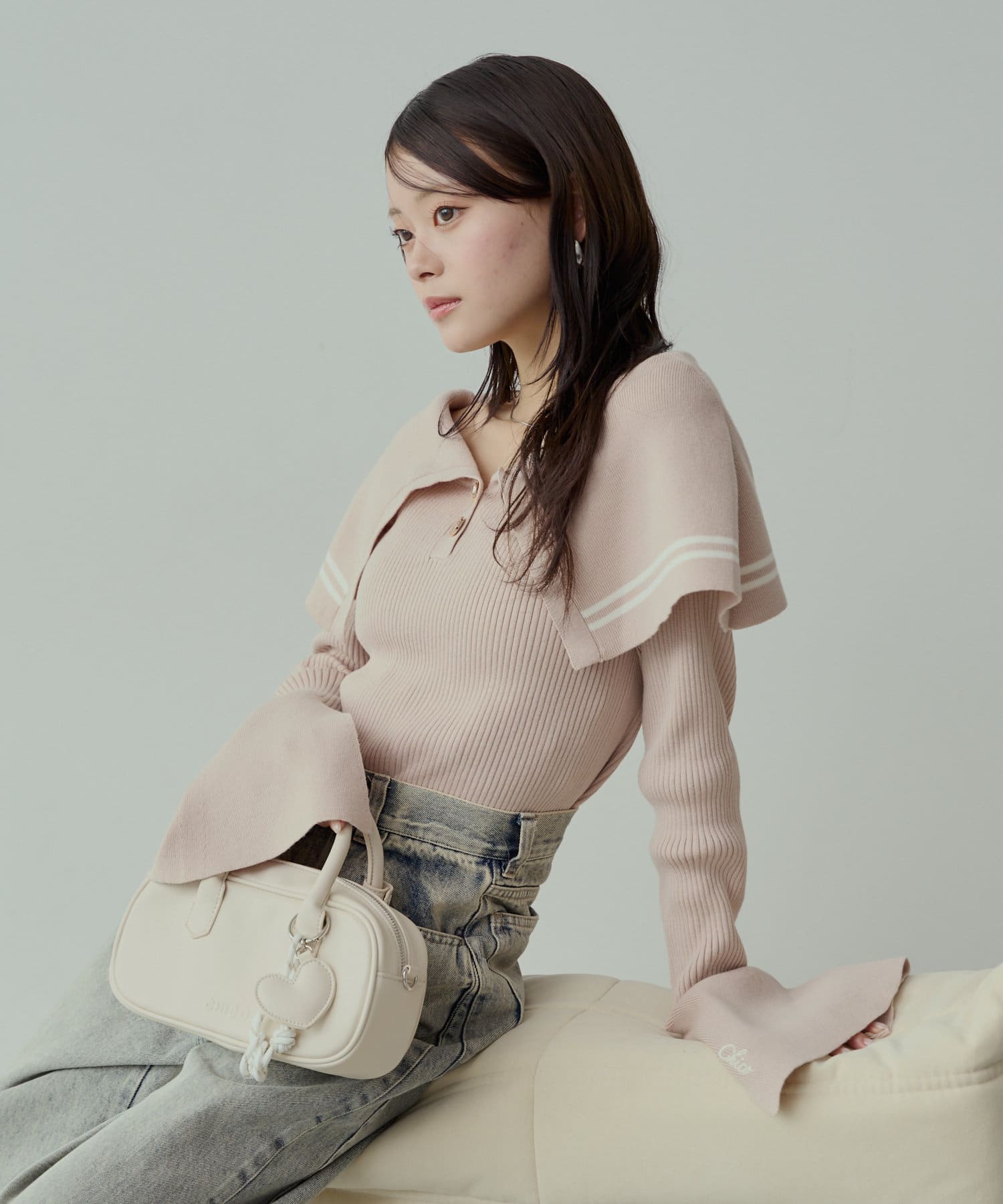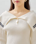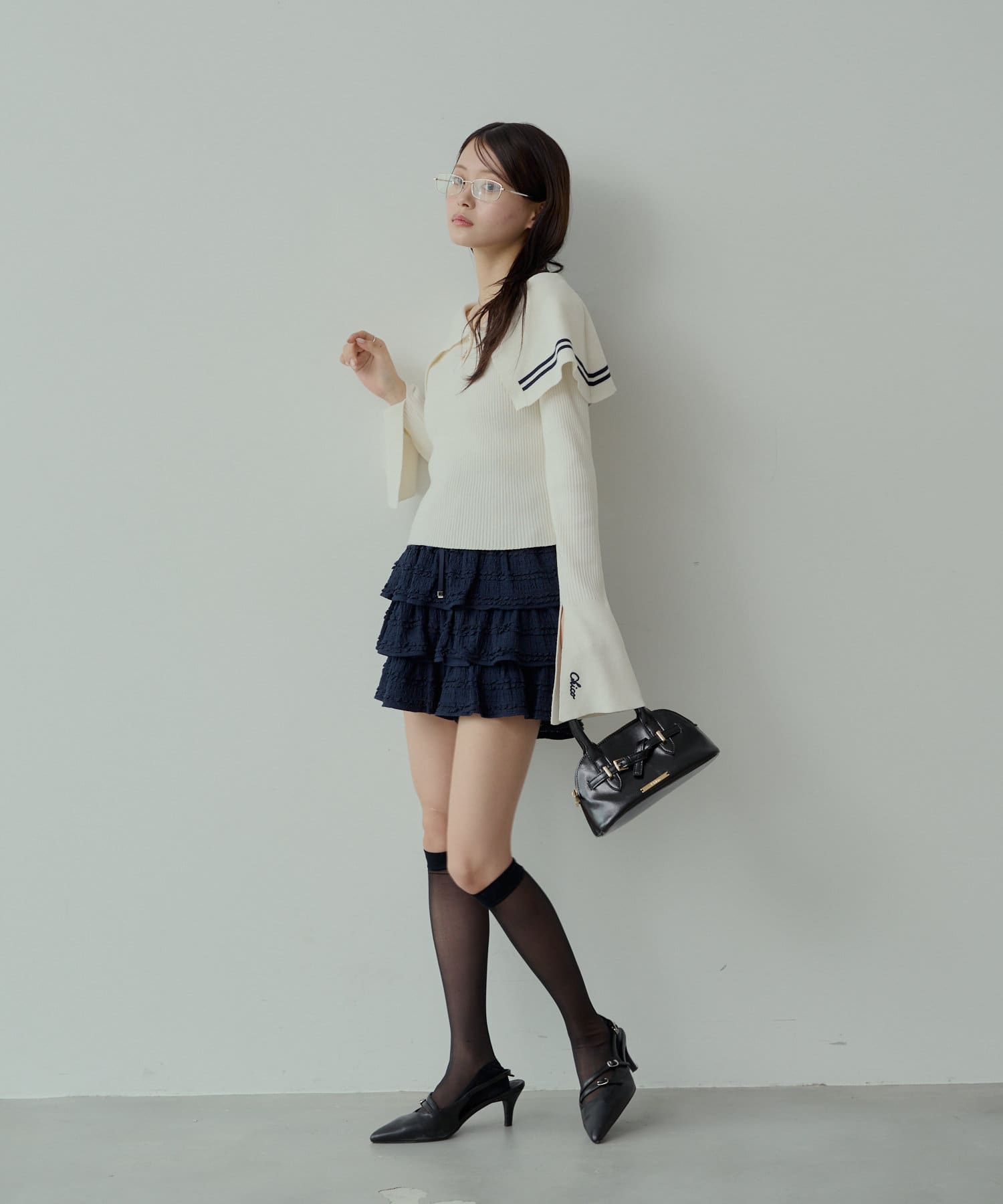 袖口のフレアとビックカラーデザインが目を惹くリブニット