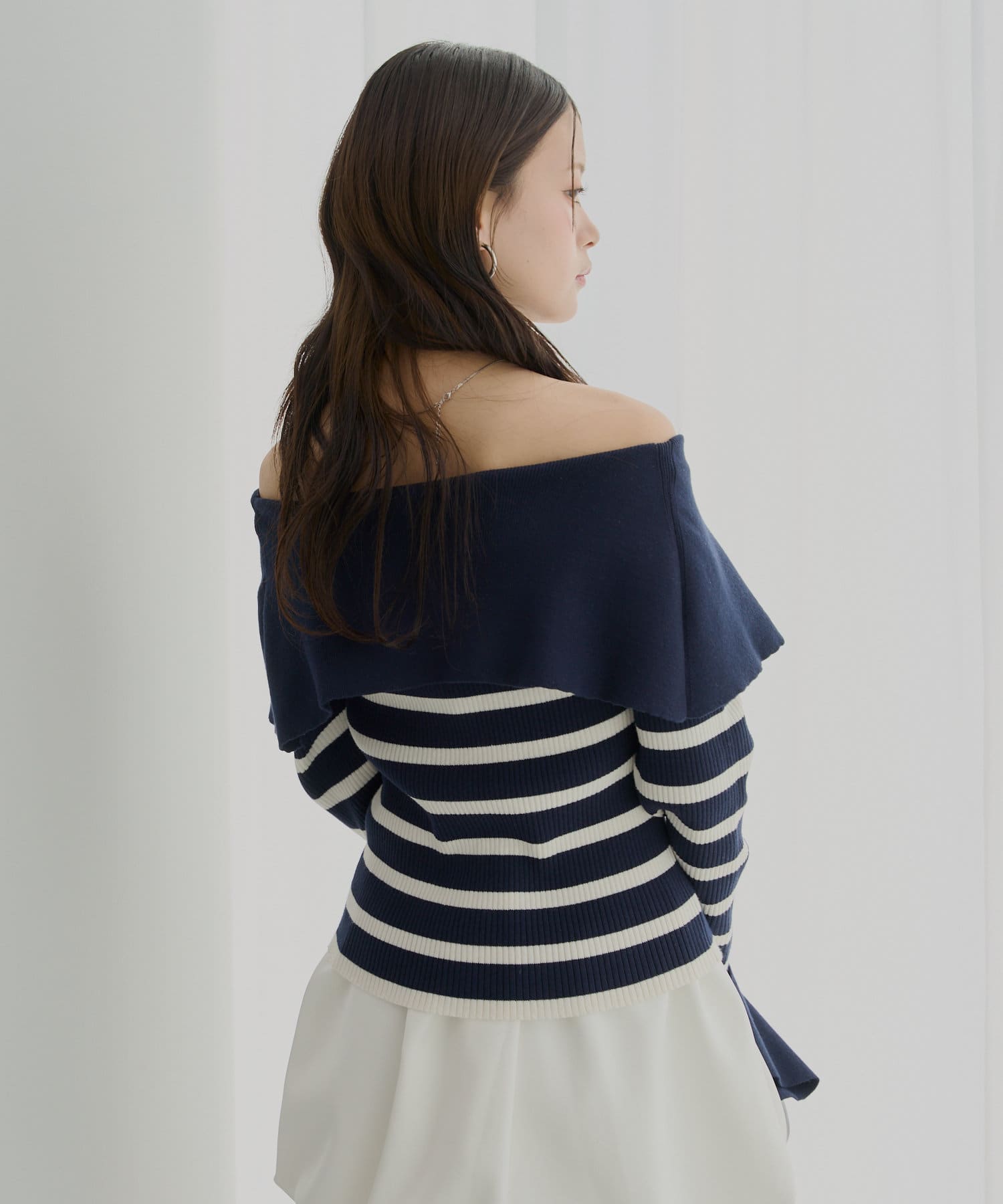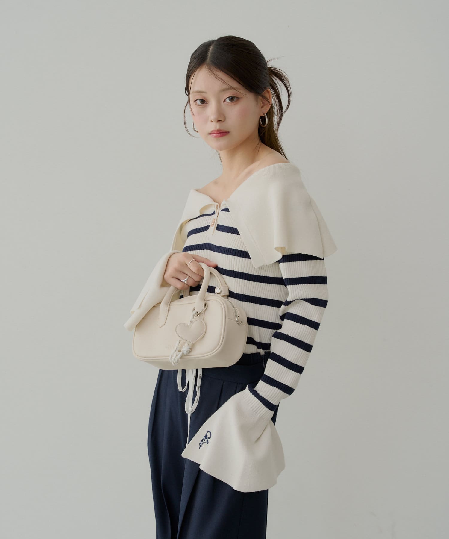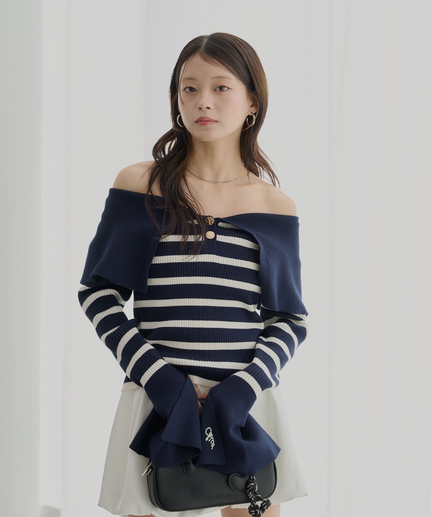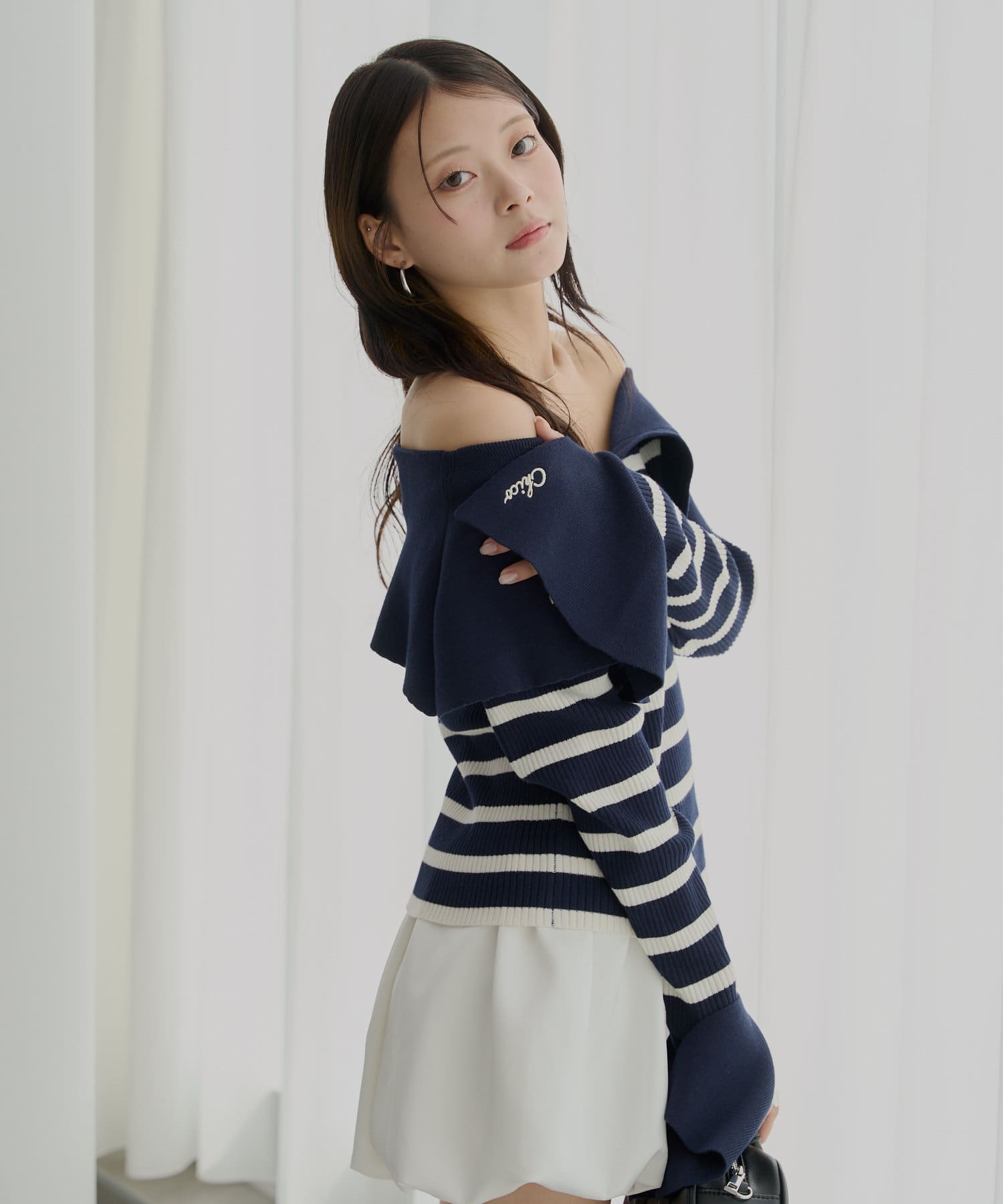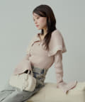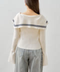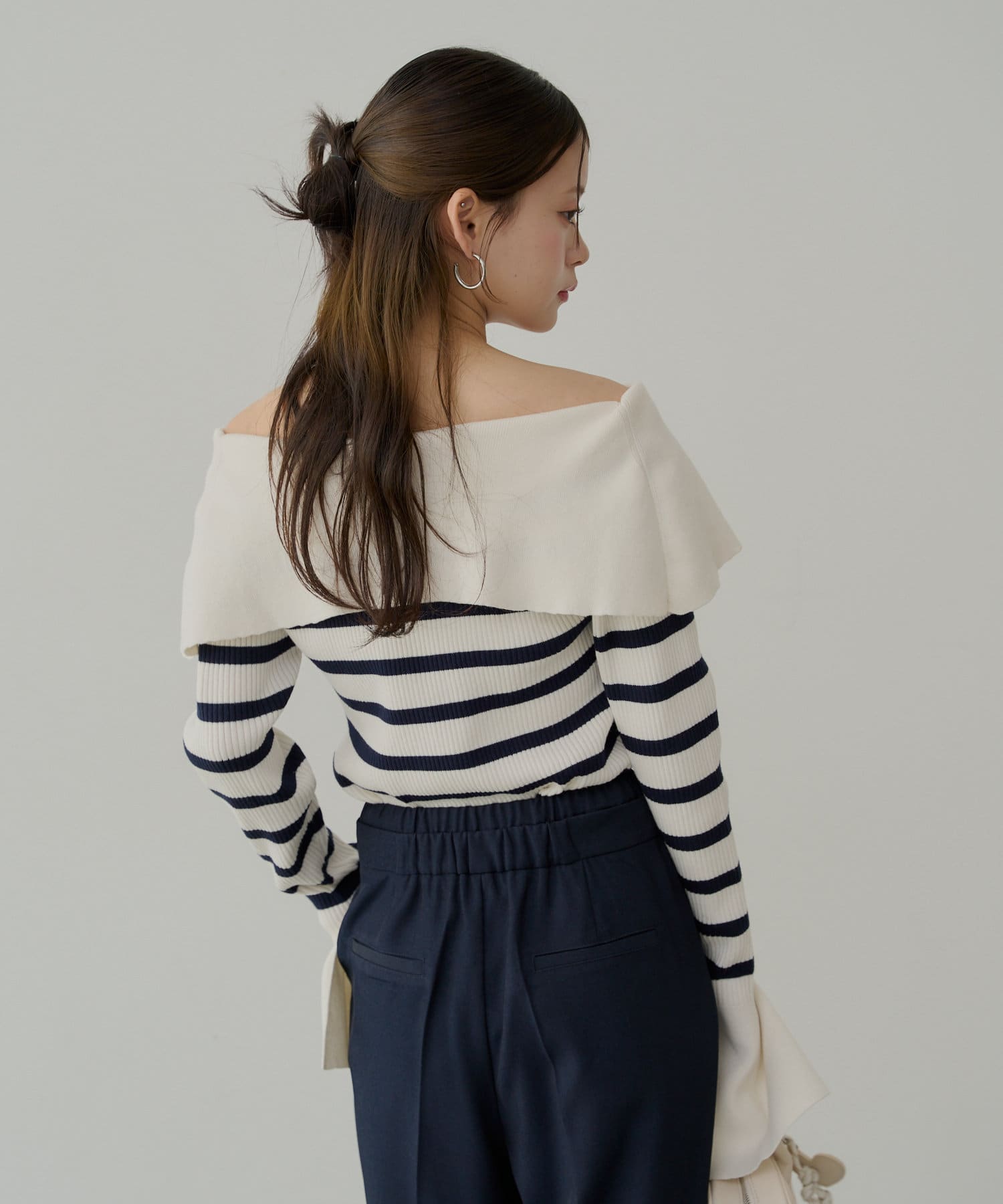 袖口のフレアとビックカラーデザインが目を惹くリブニット
