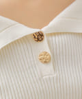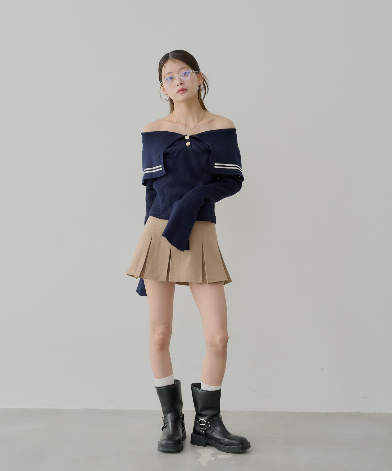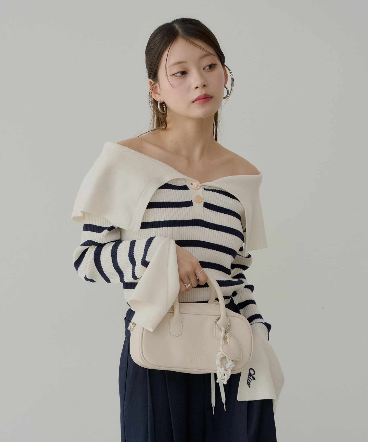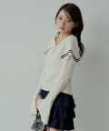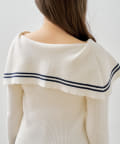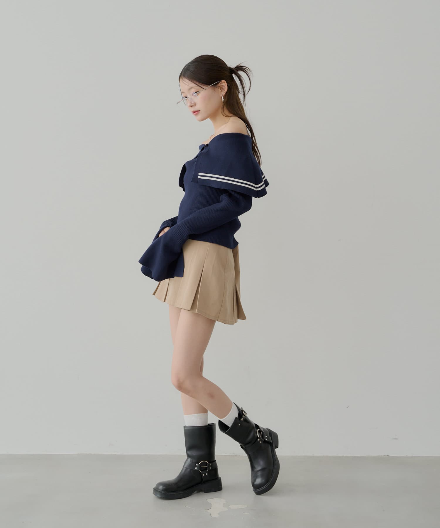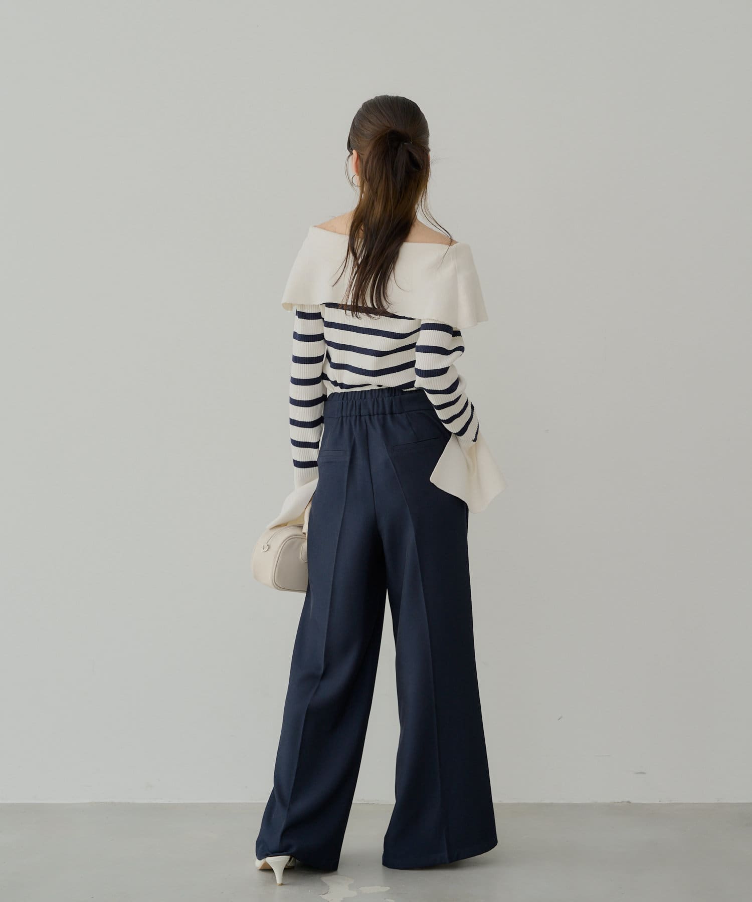 袖口のフレアとビックカラーデザインが目を惹くリブニット