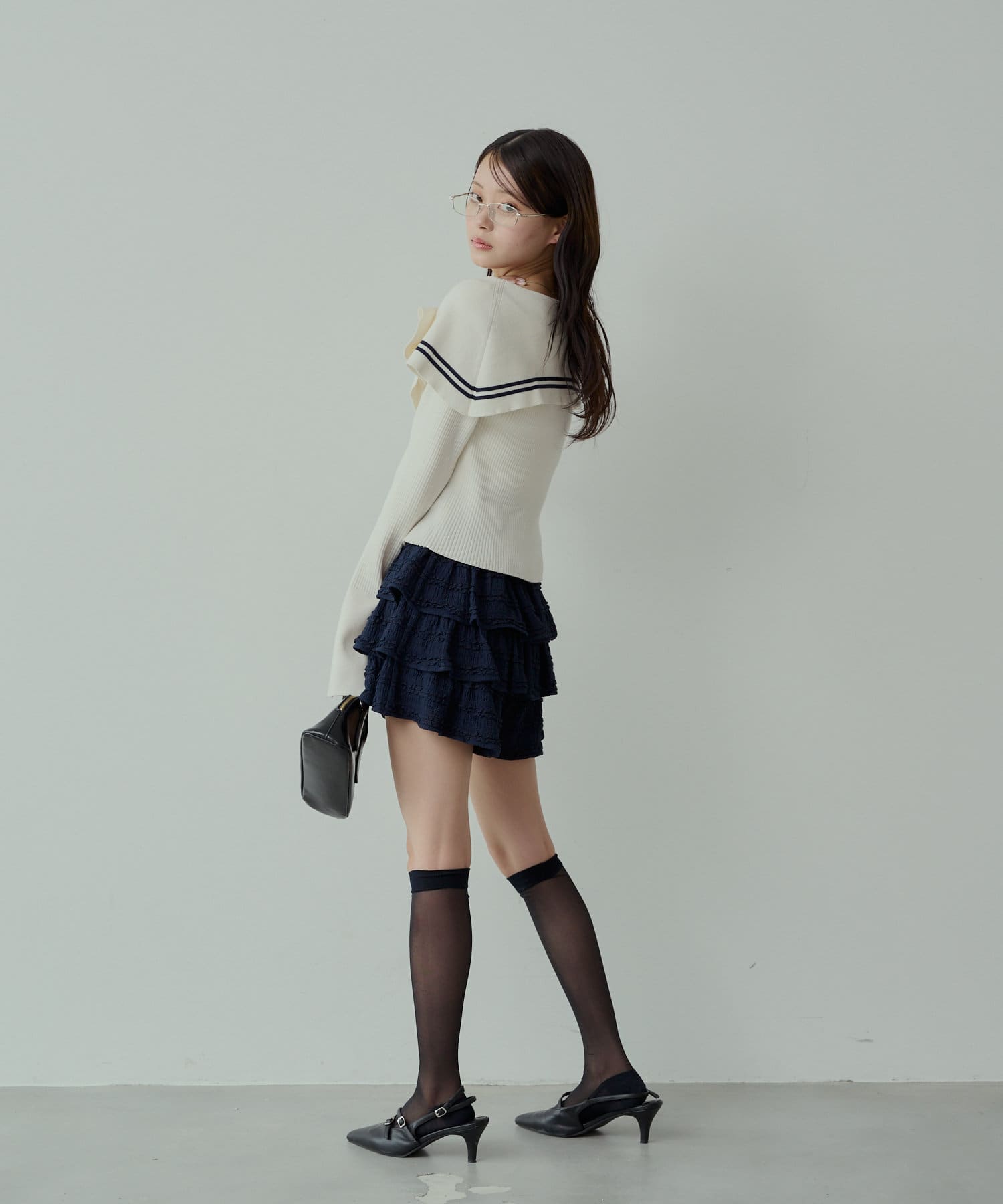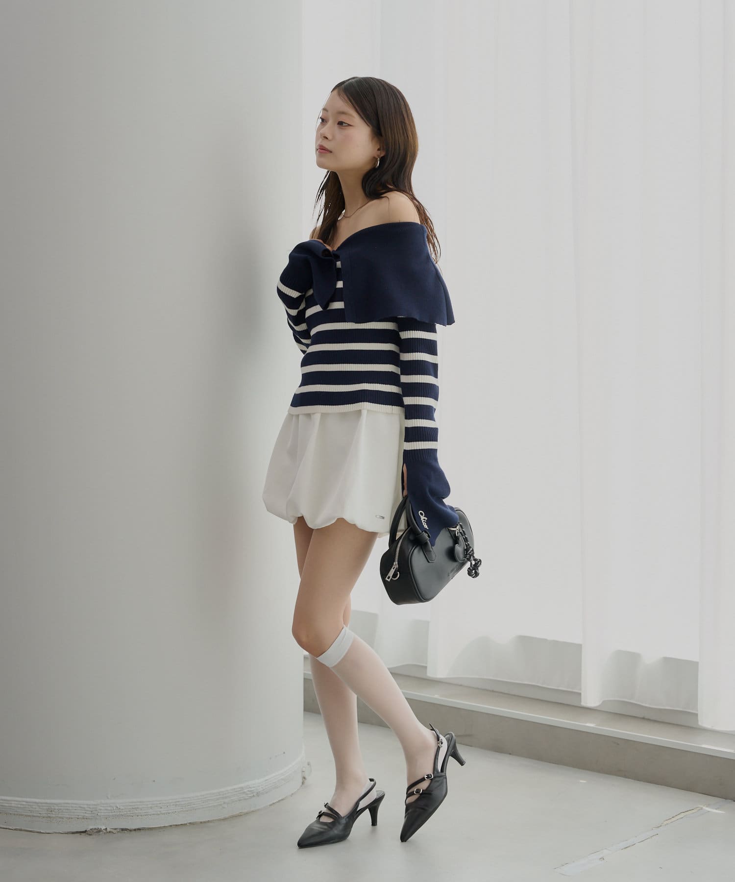 ・スカートやミニボトムと合わせるとより女性らしさの際立つコーデに◎