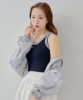 ・デザイン性のあるタンクトップなのでシンプルな羽織を合わせるだけでお洒落見えが叶います。