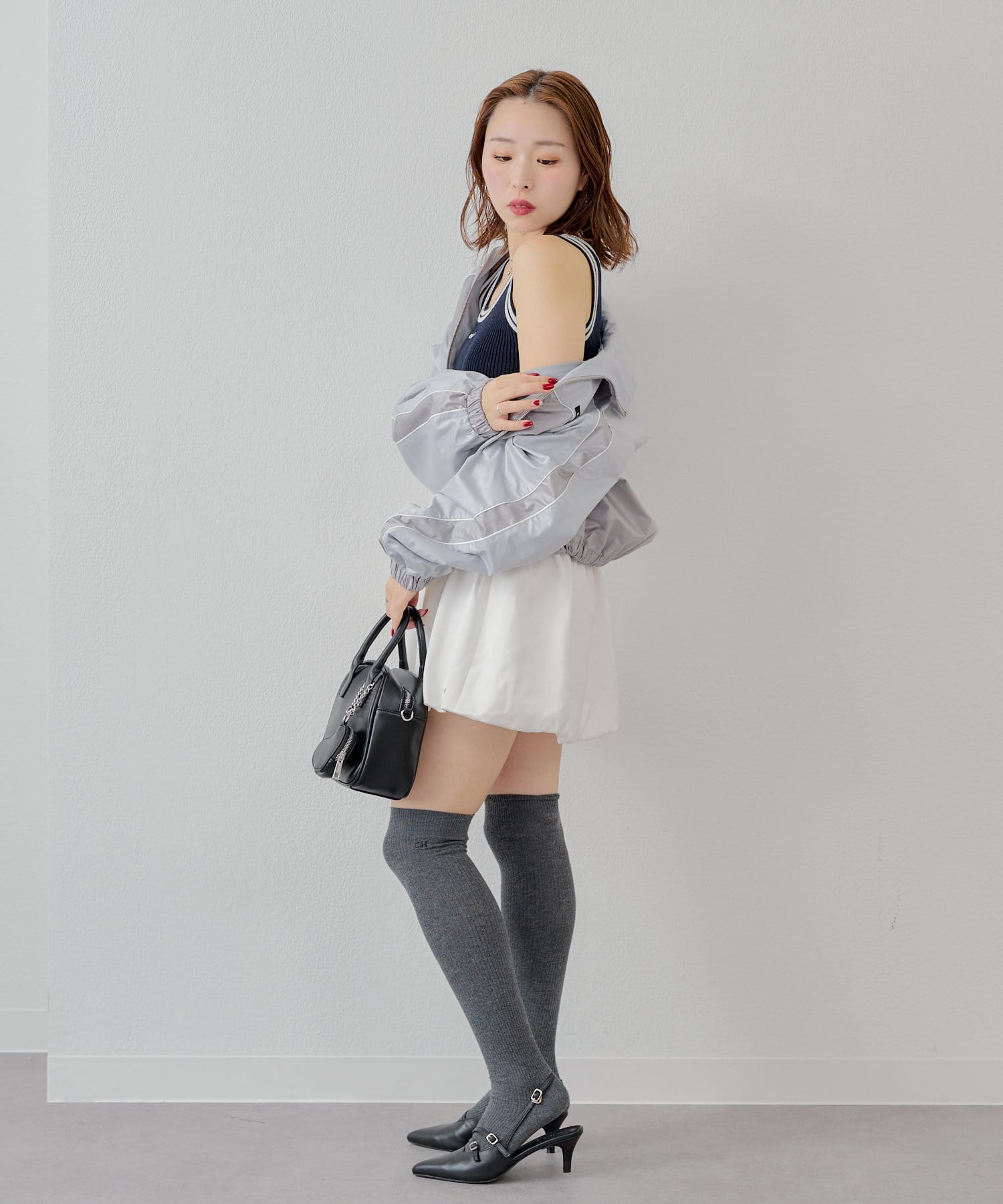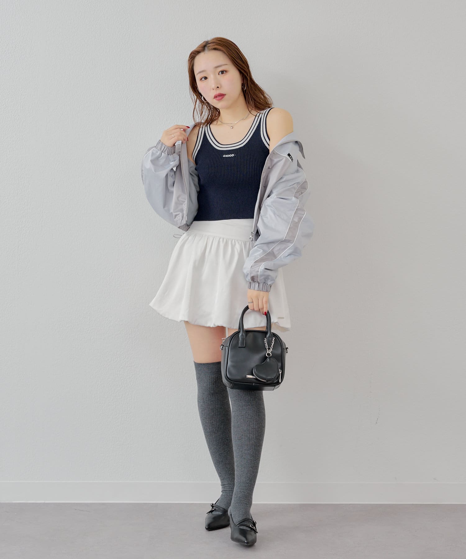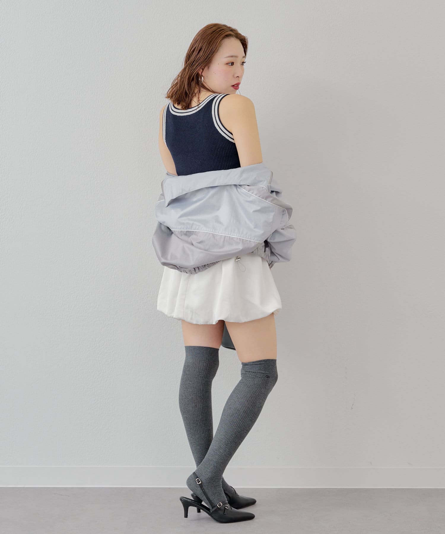 ・カジュアルなラインが入っているので甘め要素のスカートを合わせるとバランスの取れたコーデに。