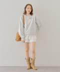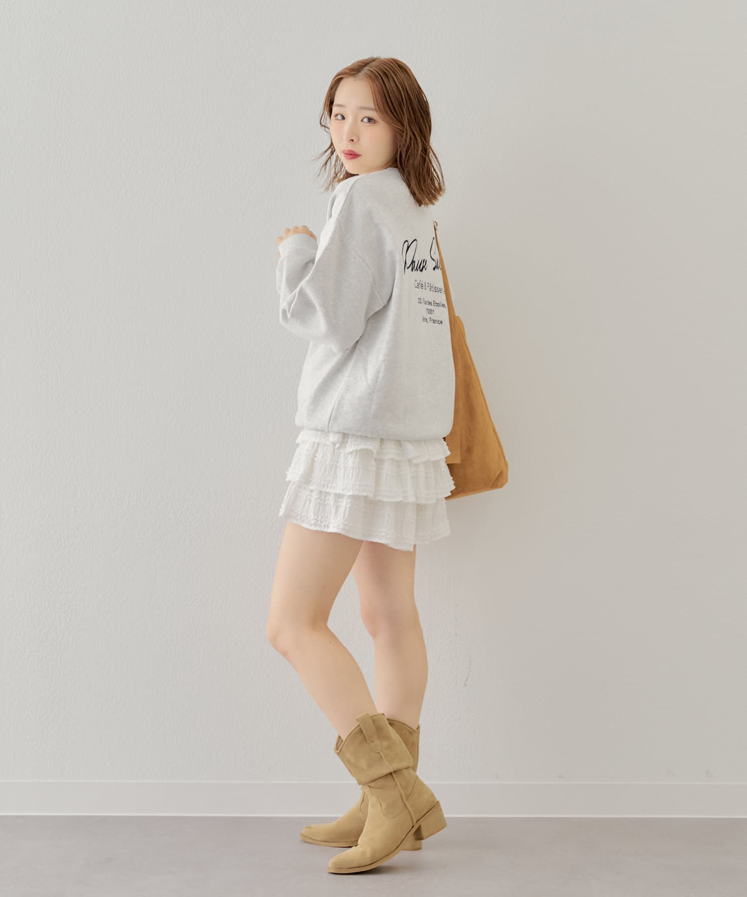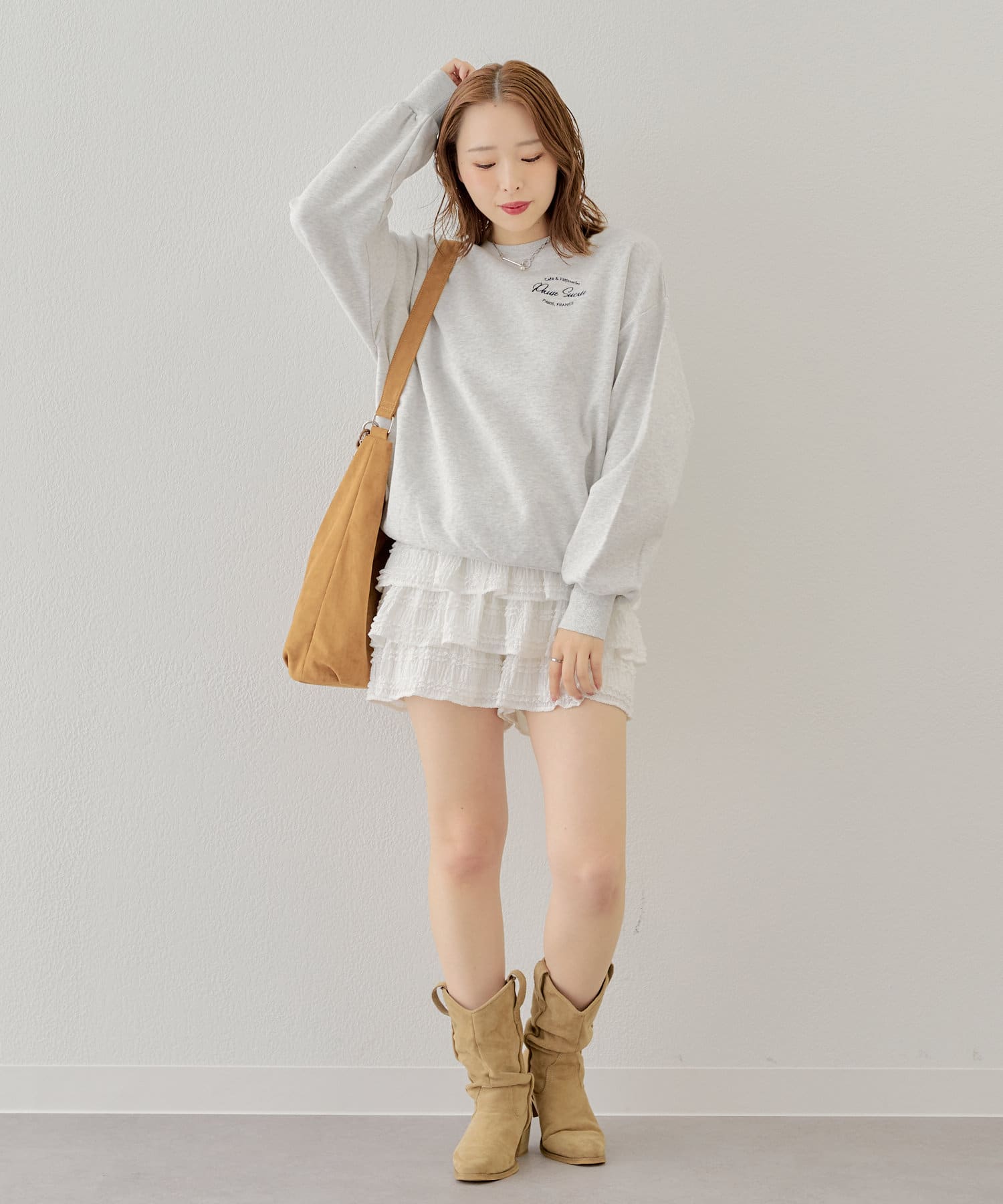・ミニ丈のボトムスと合わせていただくとトレンドライクなスタイルに。