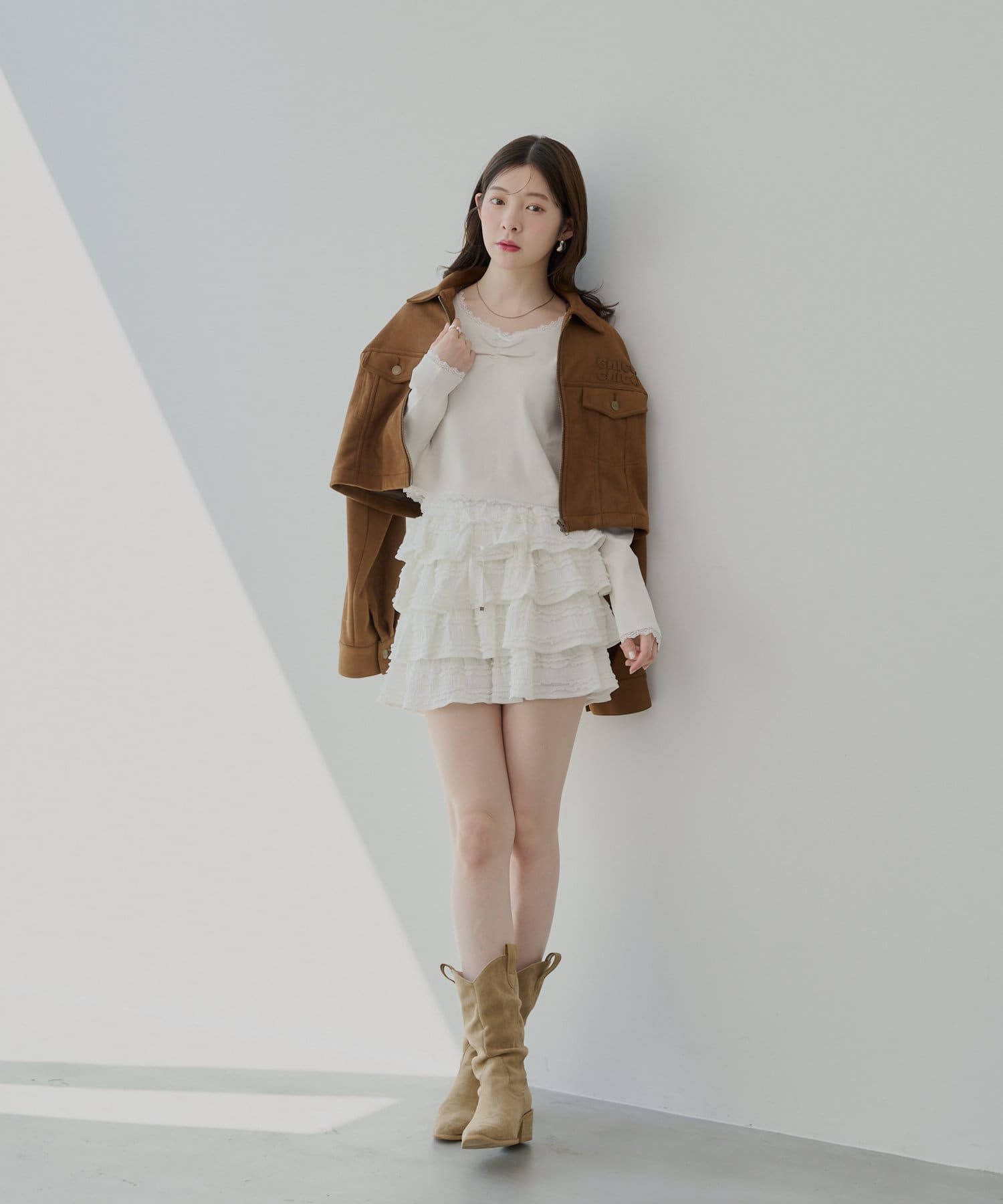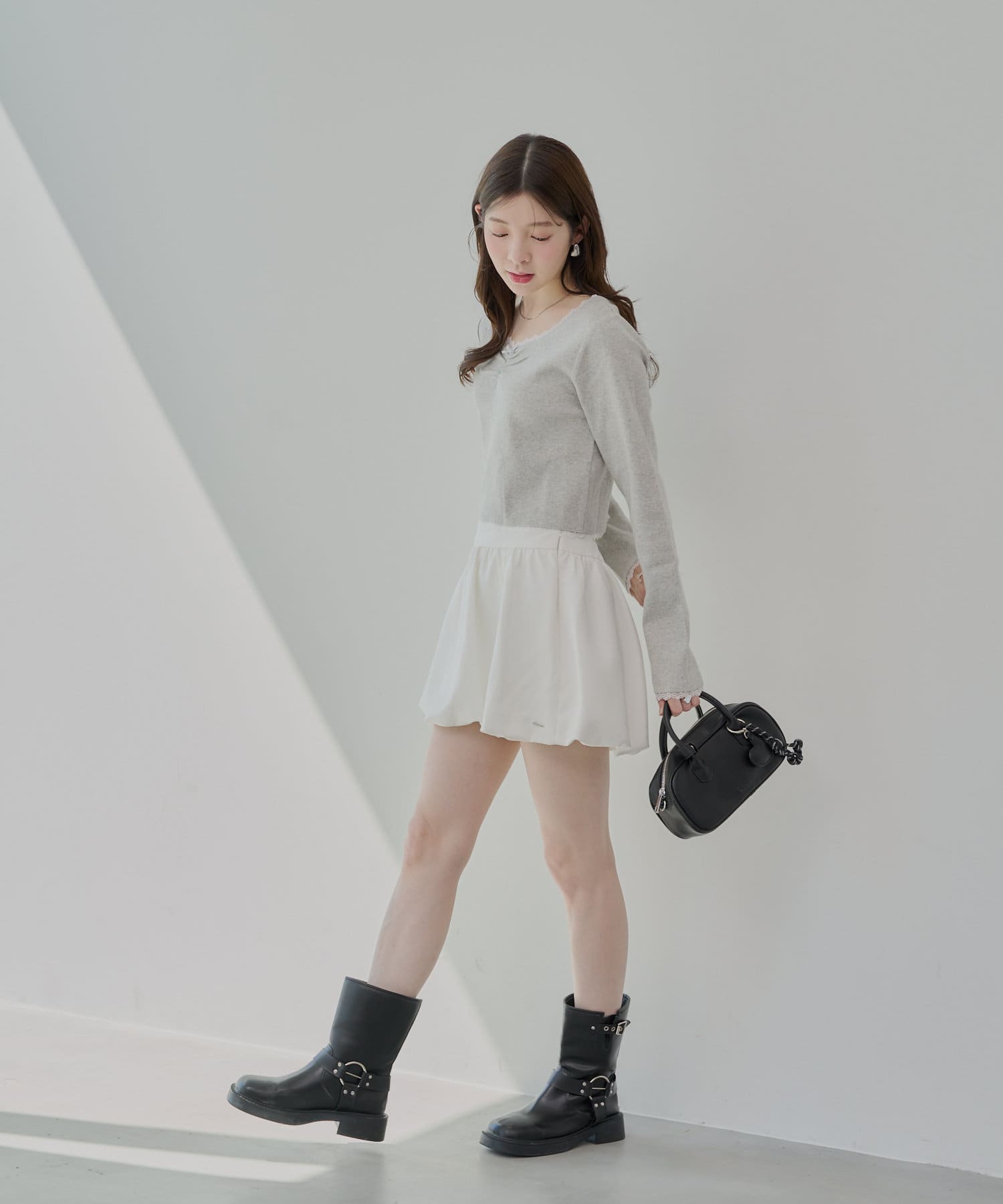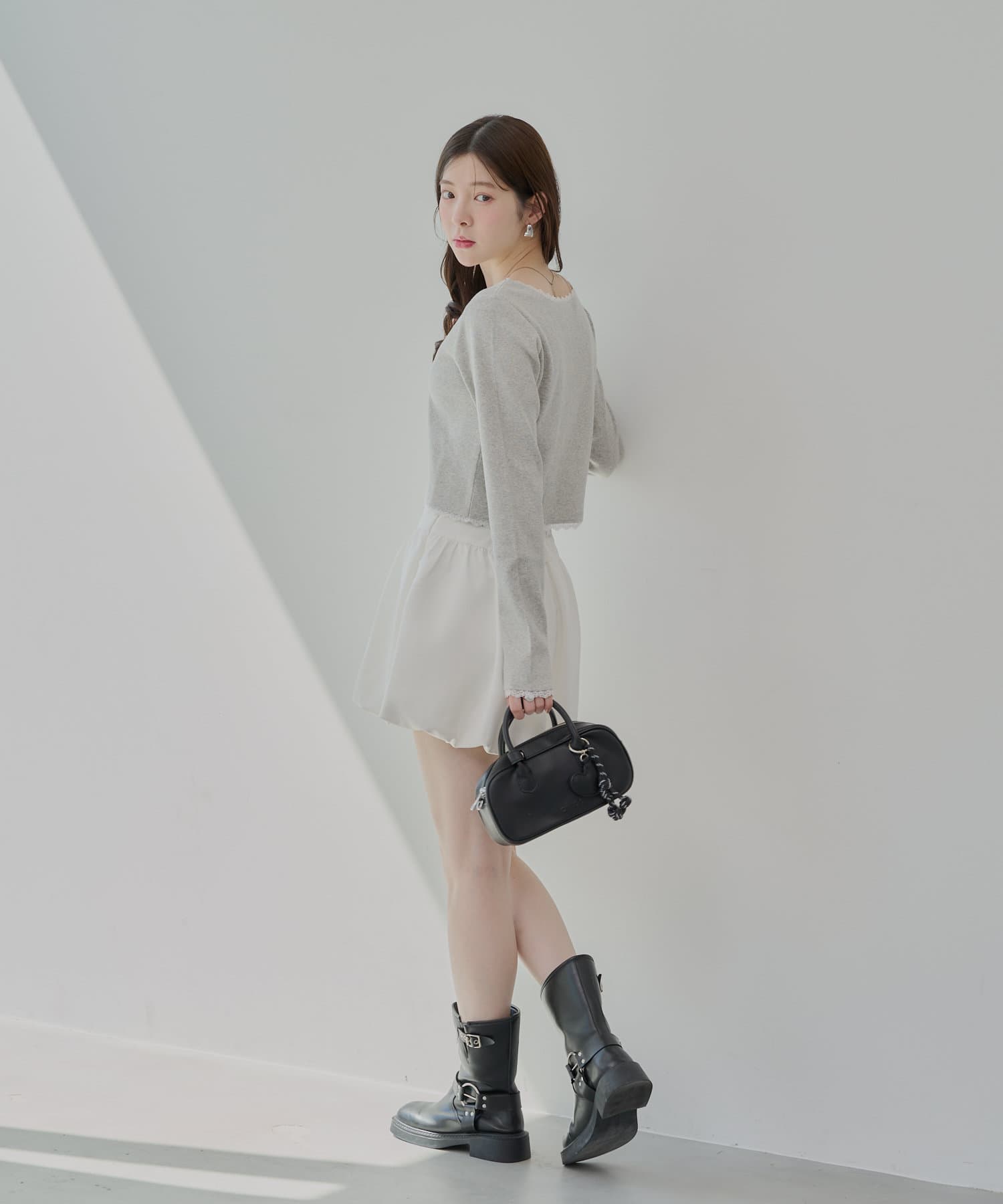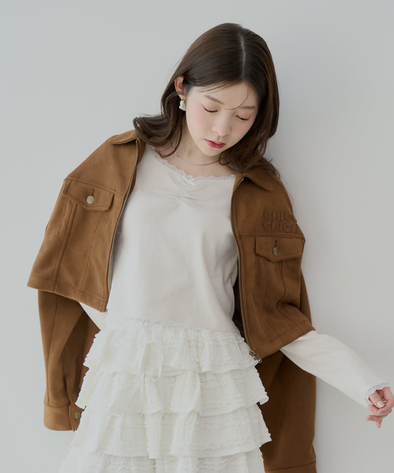 ・胸元の小さなリボンは、さりげないアクセントとなり、着こなしに華やかさを添えてくれます。